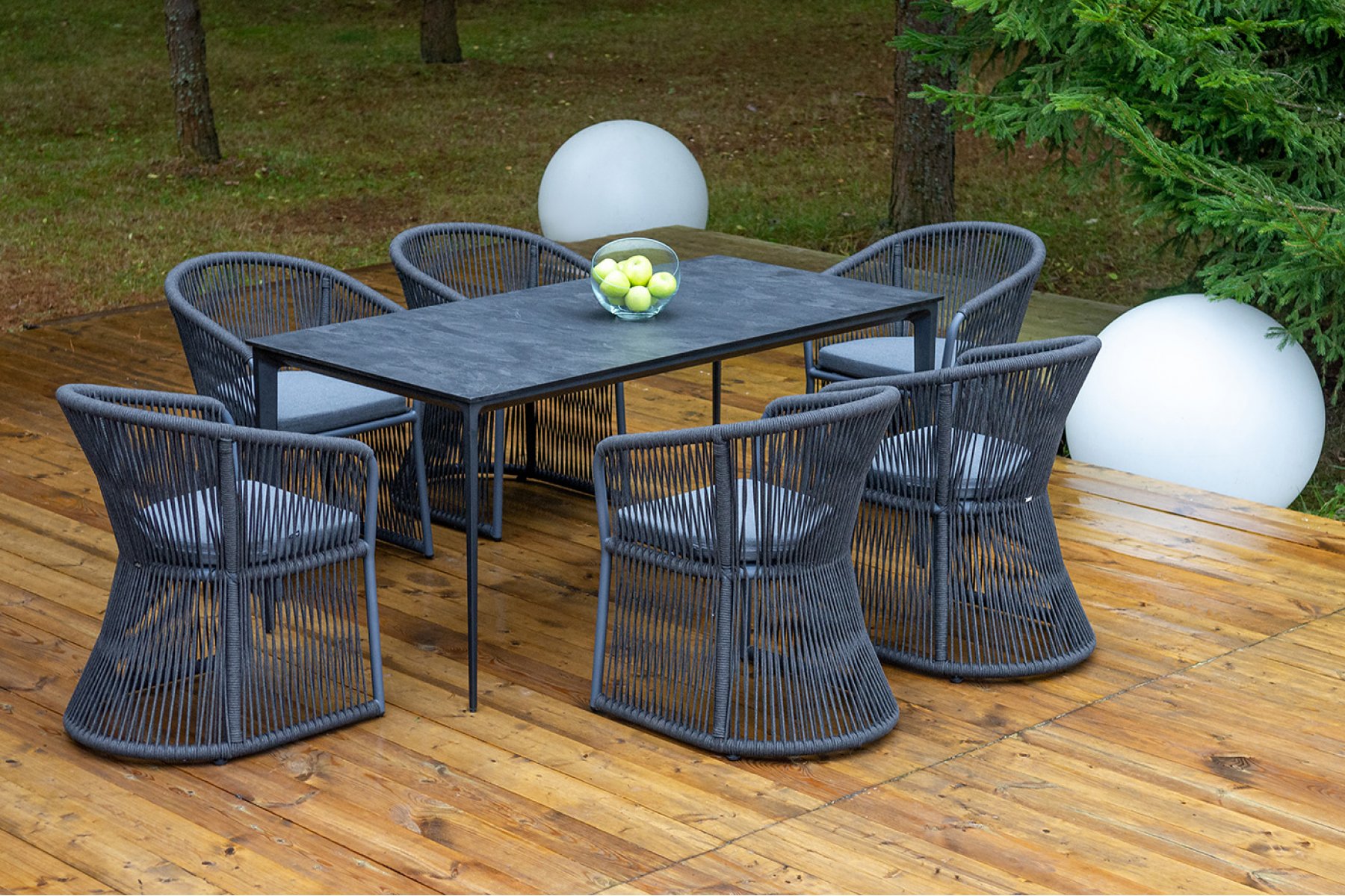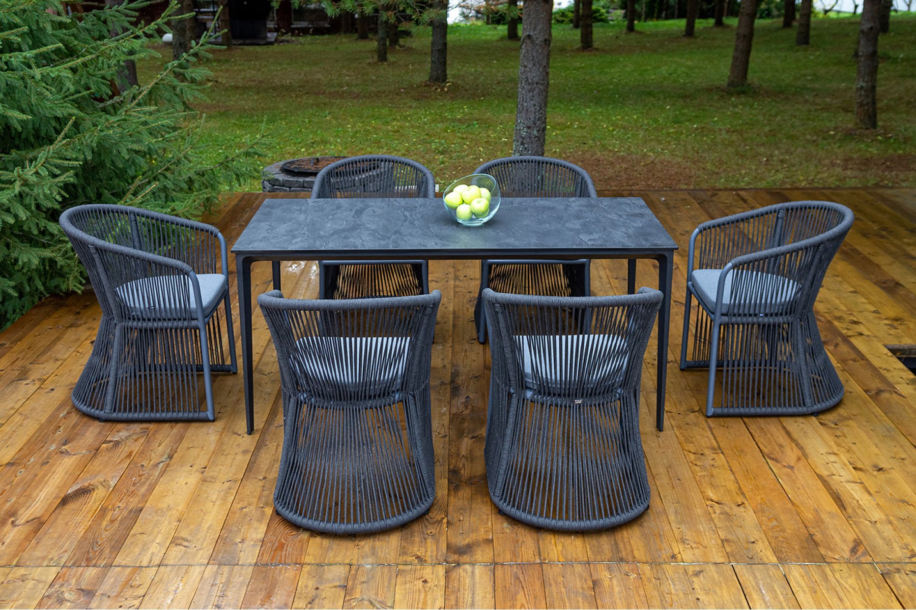"Романо" обеденная группа на 6 персон, каркас темно-серый, роуп темно-серый