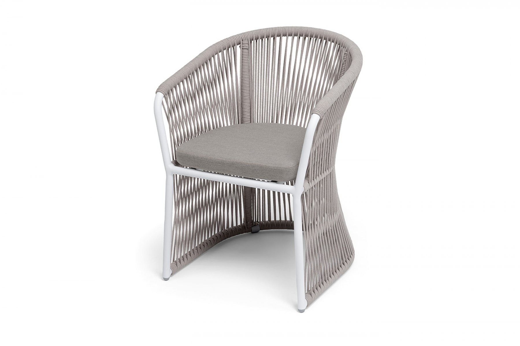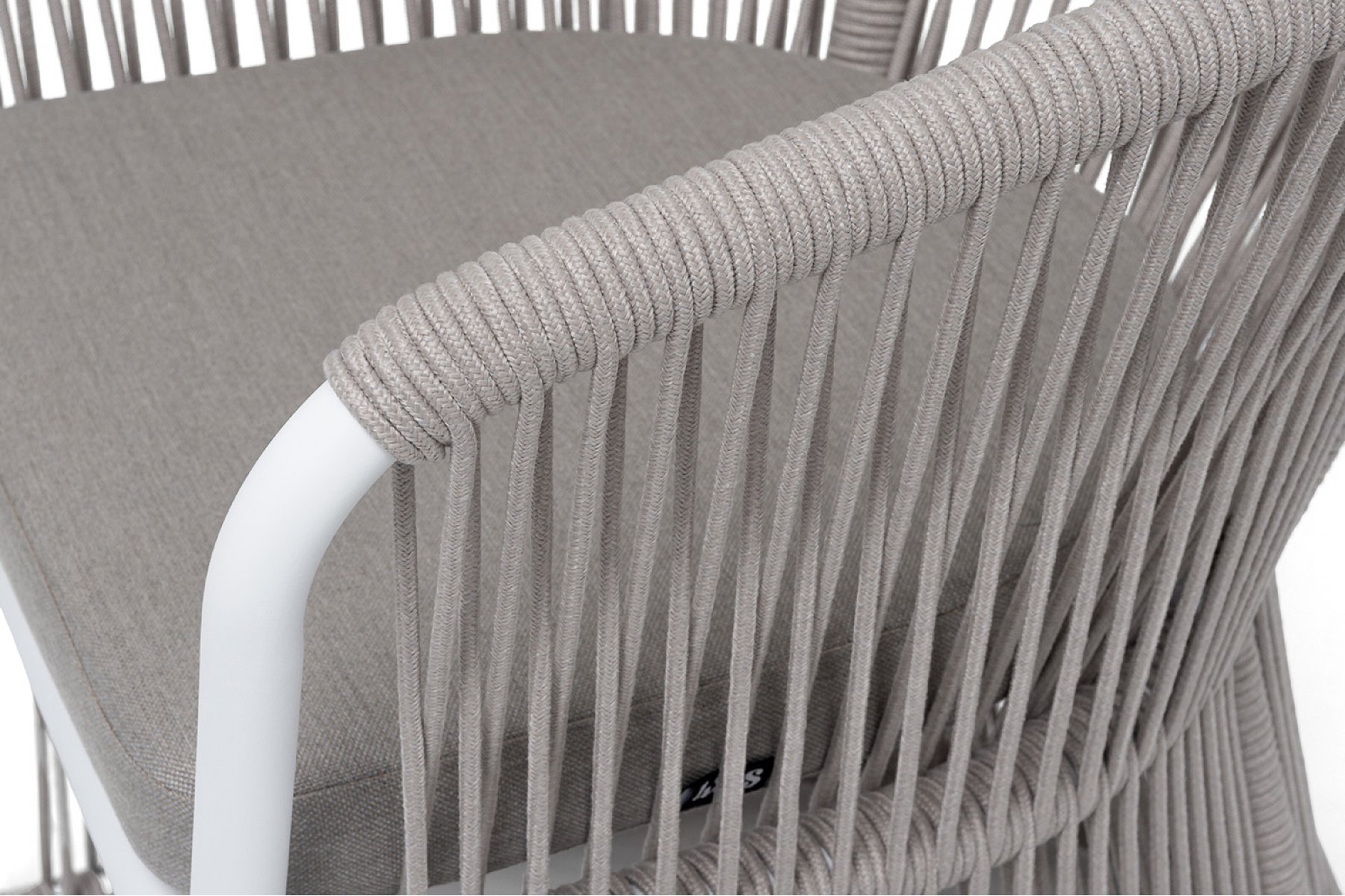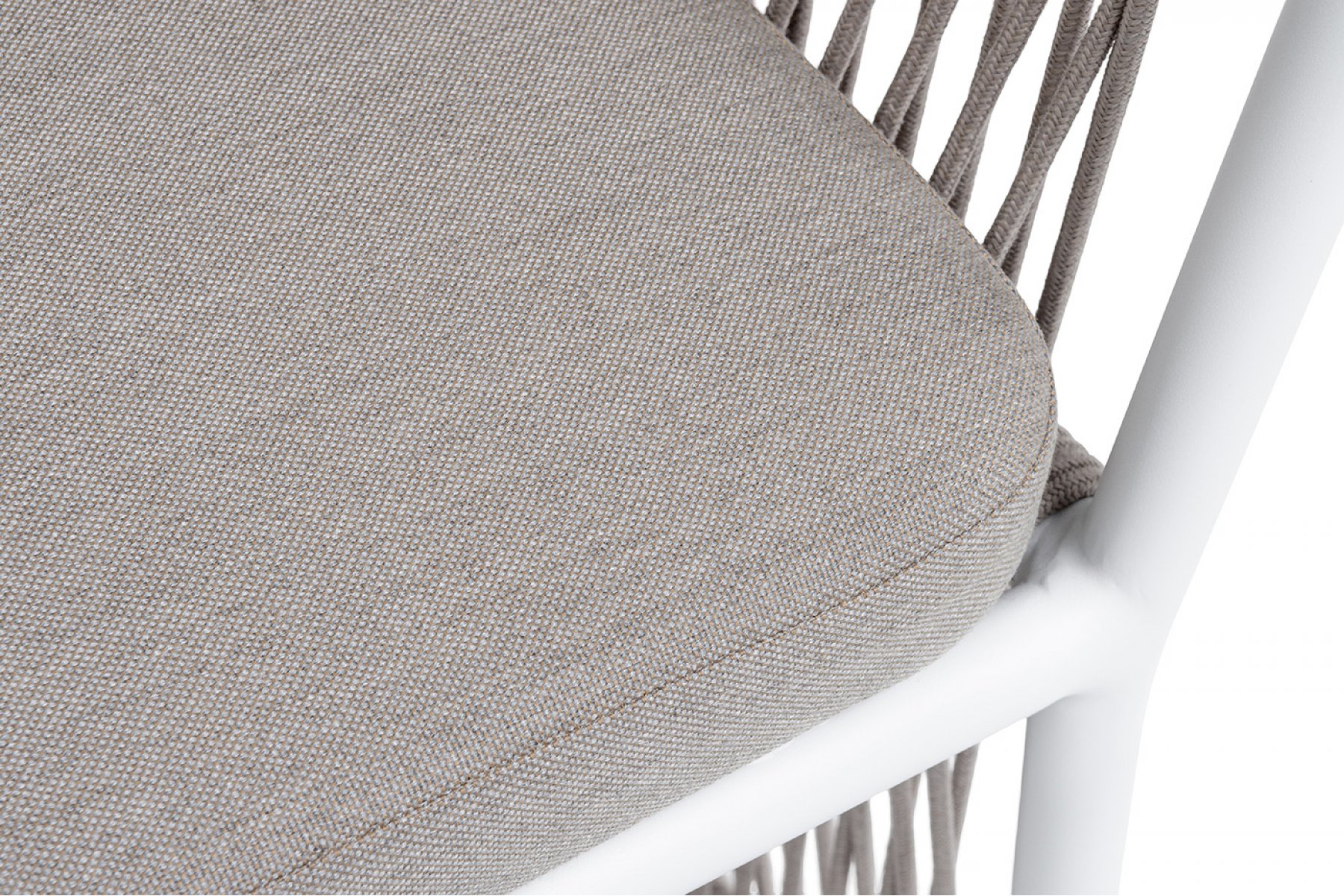 "Романо" стул плетеный из роупа, каркас алюминий белый муар, роуп бежевый круглый, ткань бежевая 15052