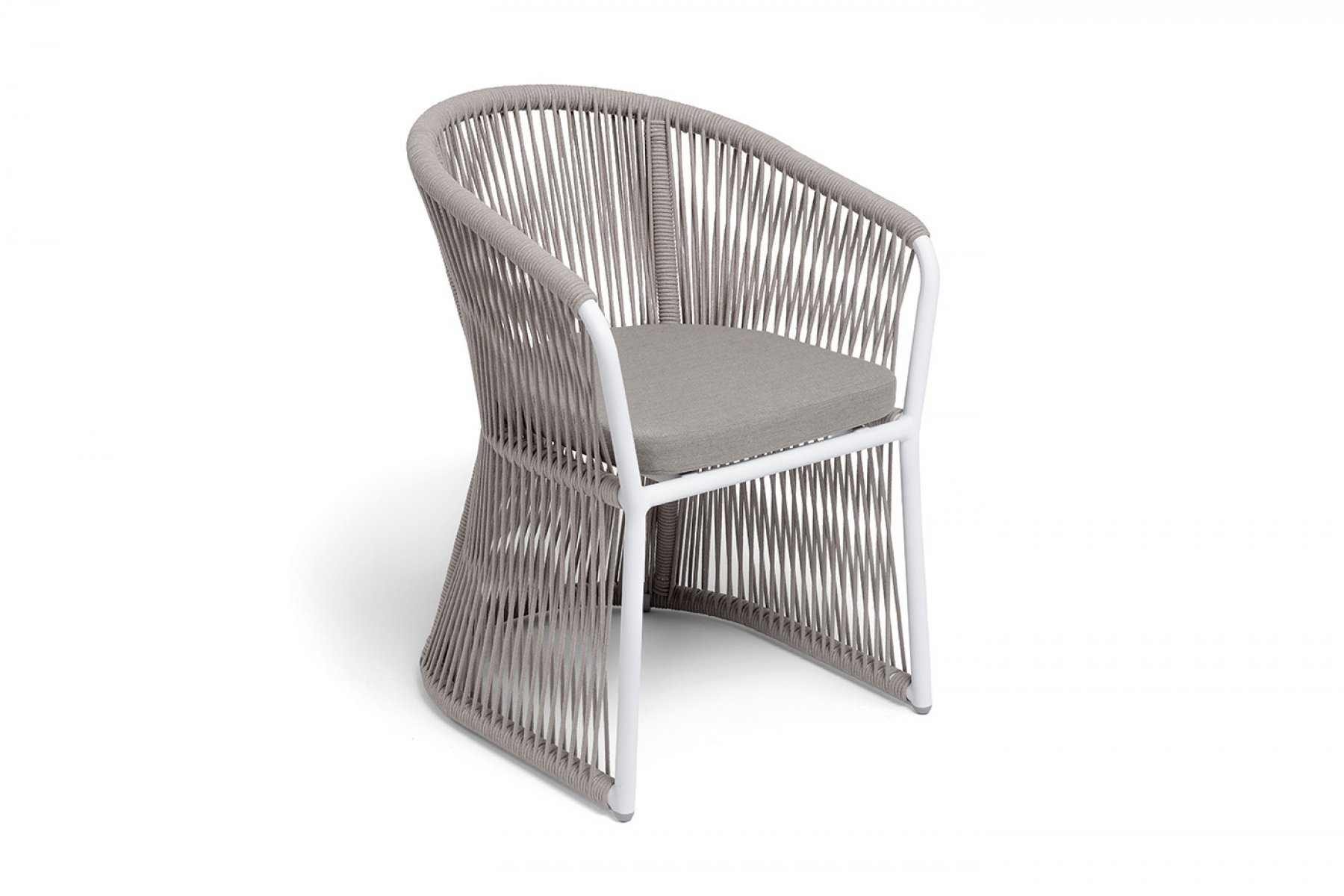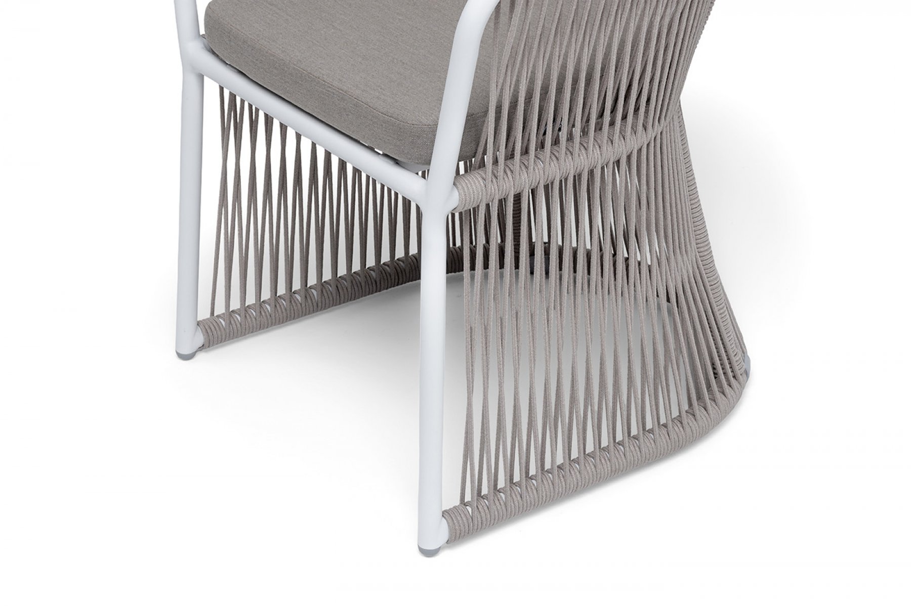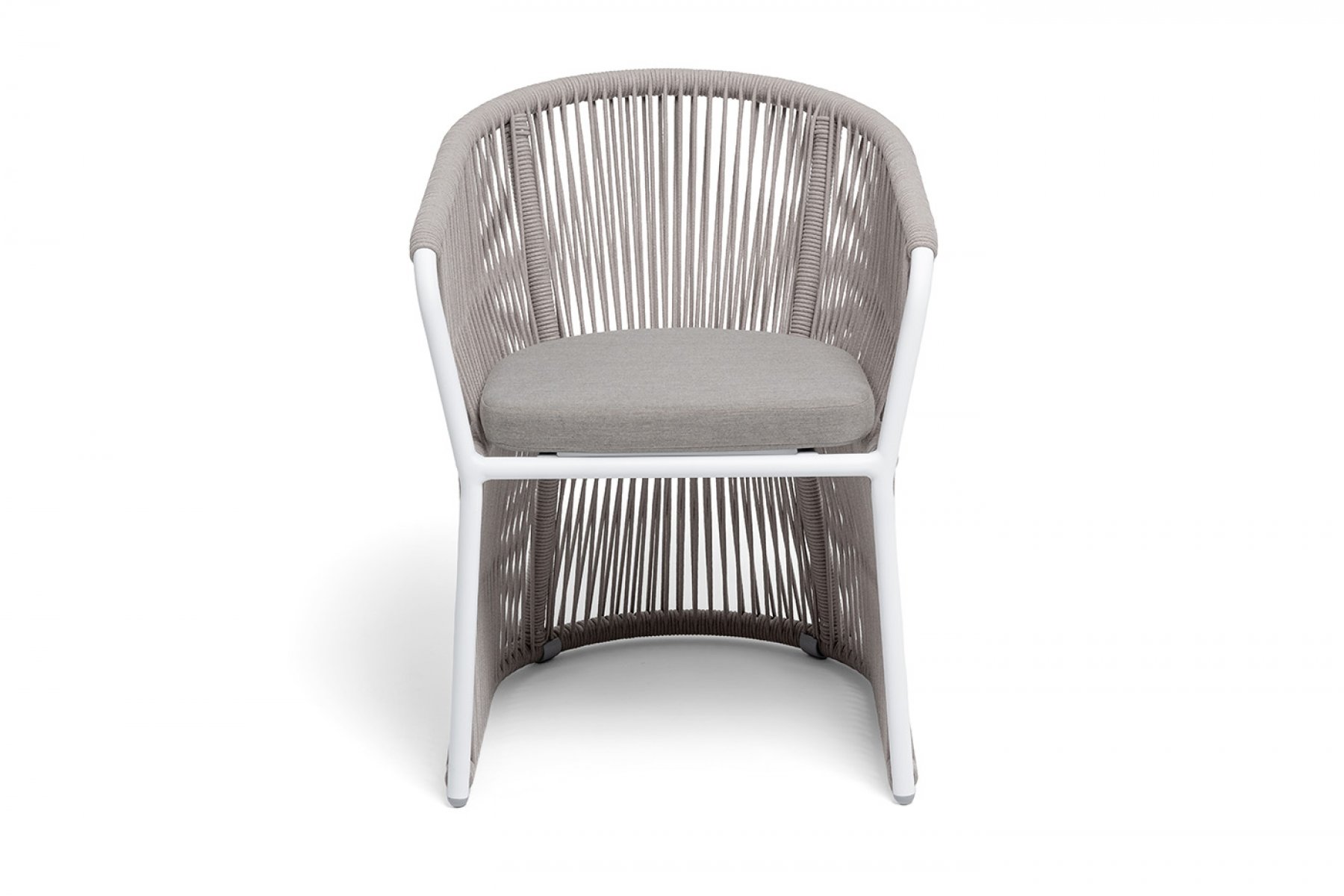 "Романо" стул плетеный из роупа, каркас алюминий белый муар, роуп бежевый круглый, ткань бежевая 15052