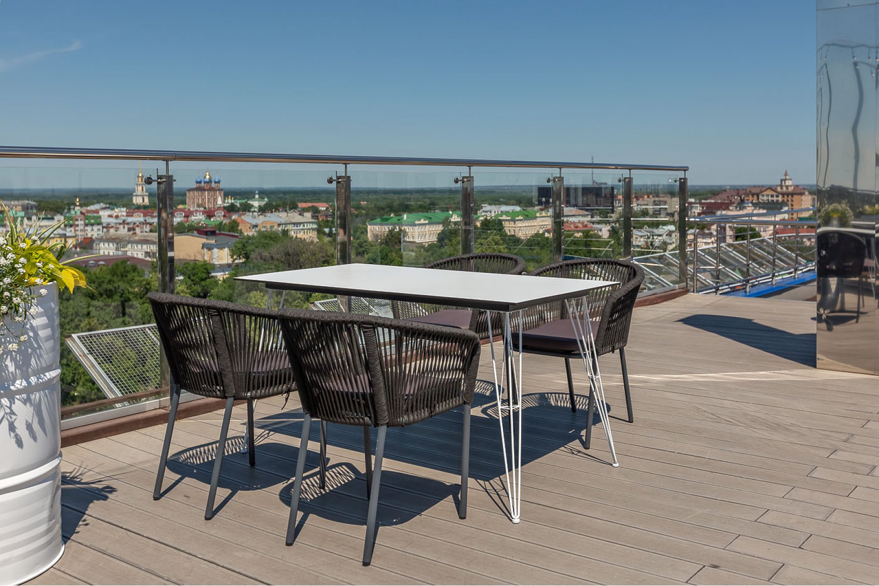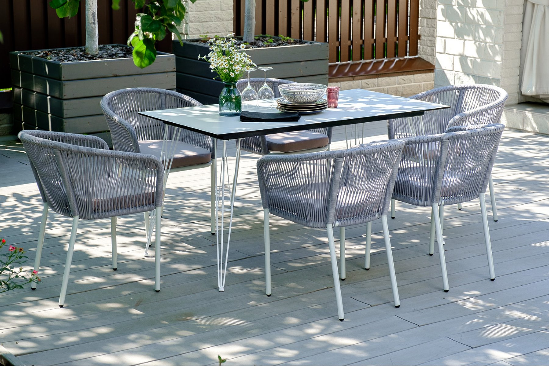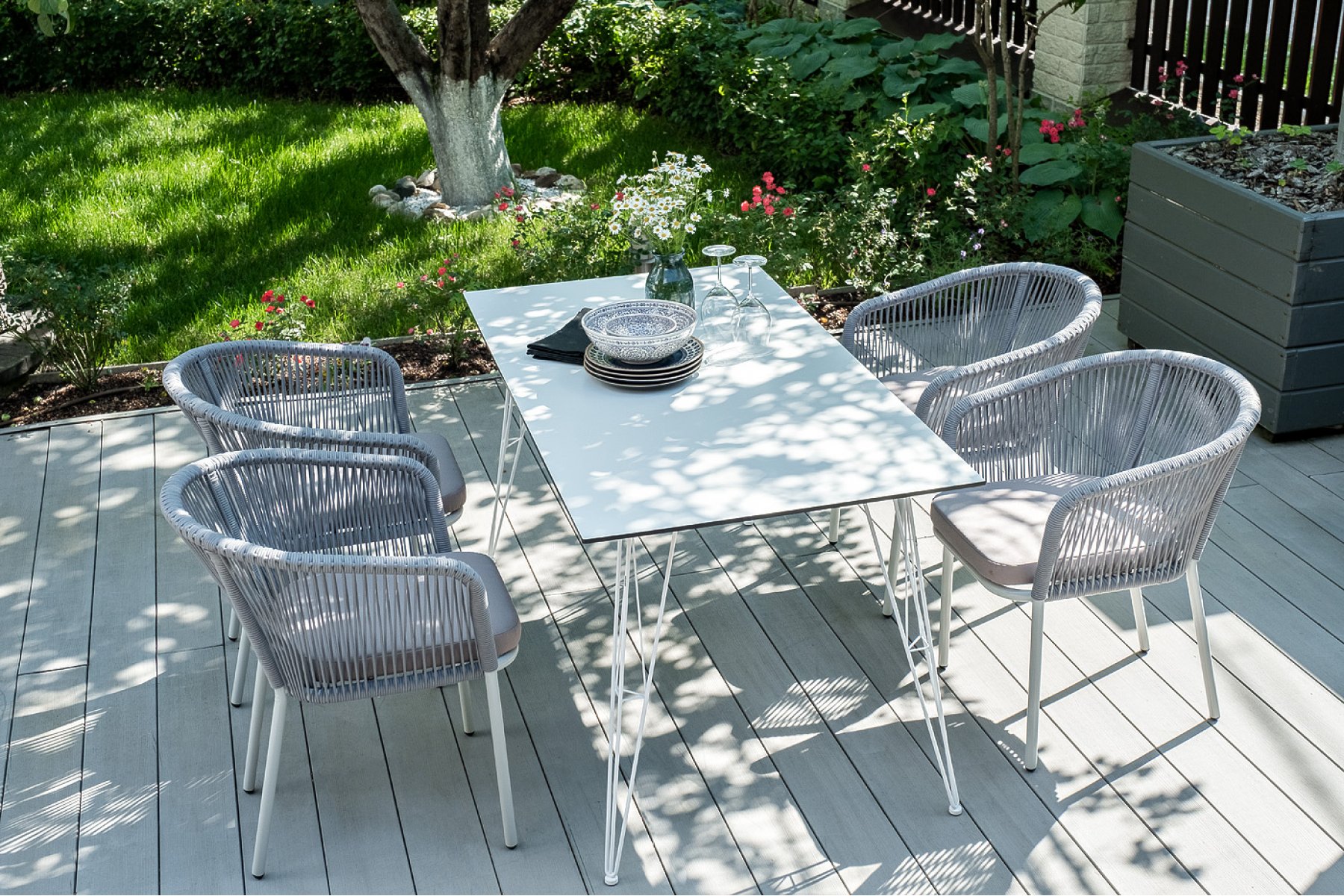 Для обустройства обеденной зоны стол можно дополнить креслами или стульями из нашего ассортимента.