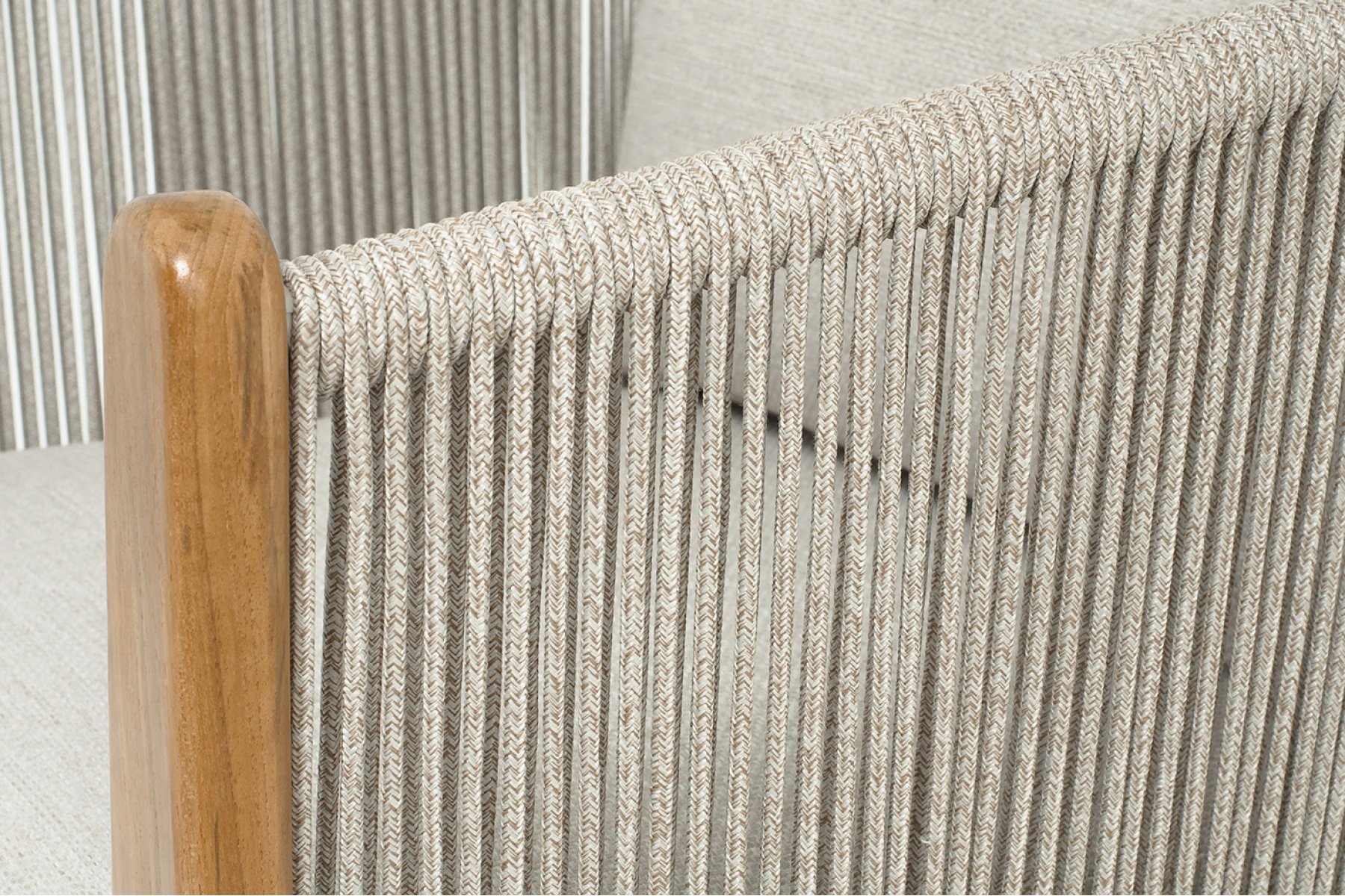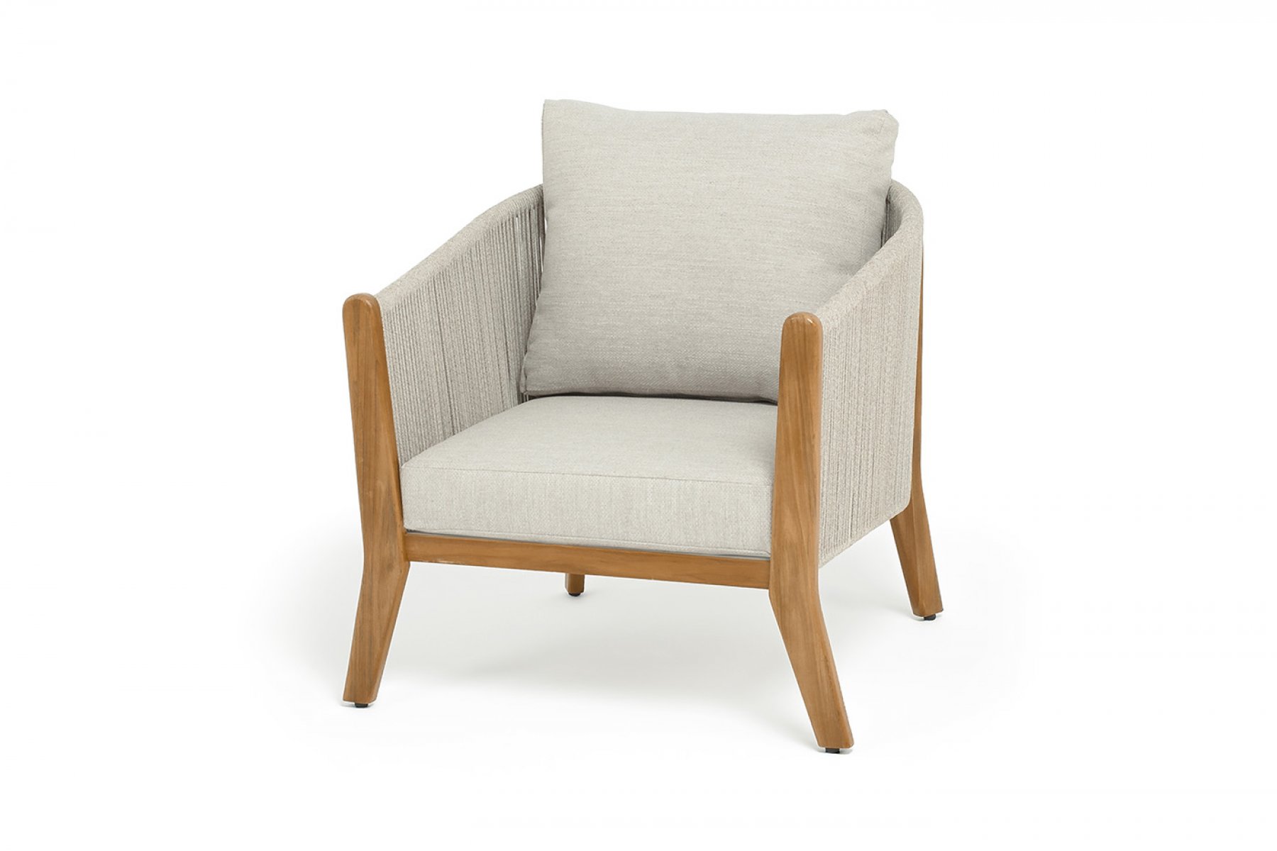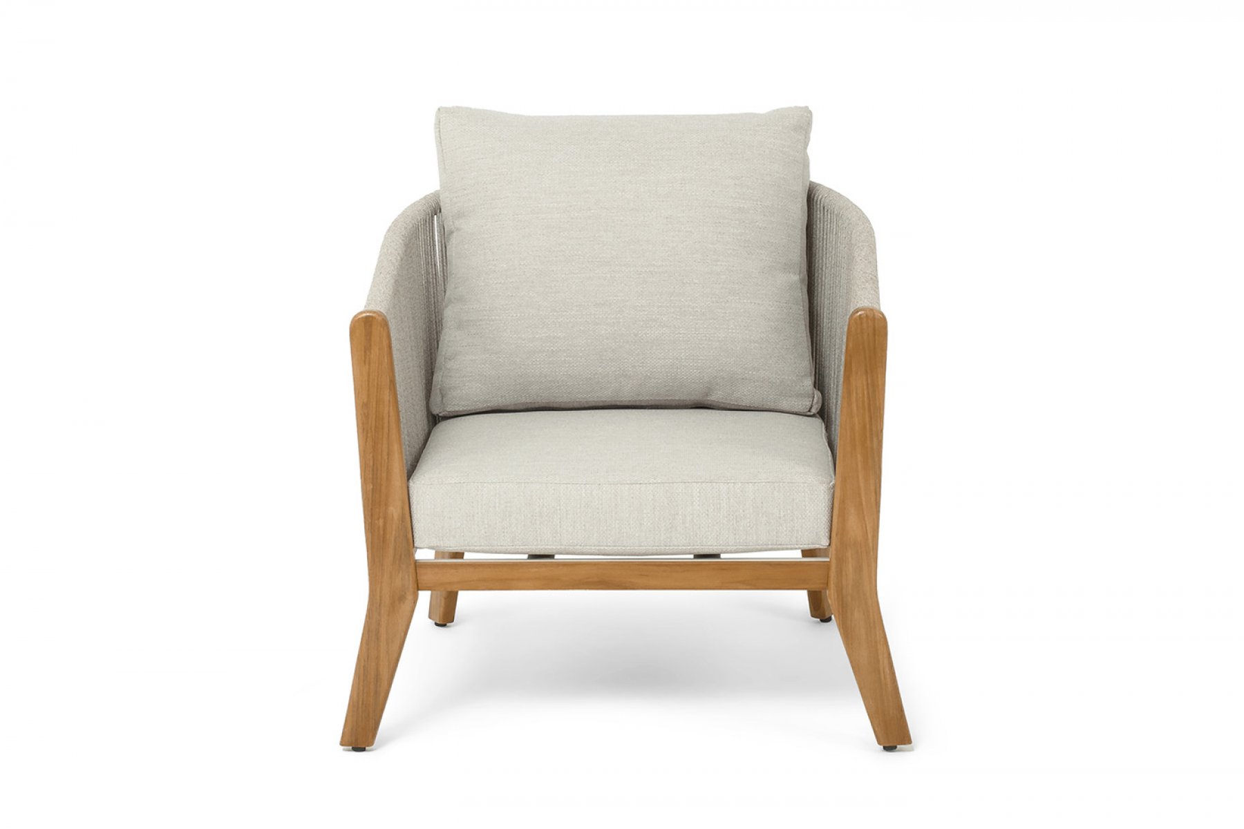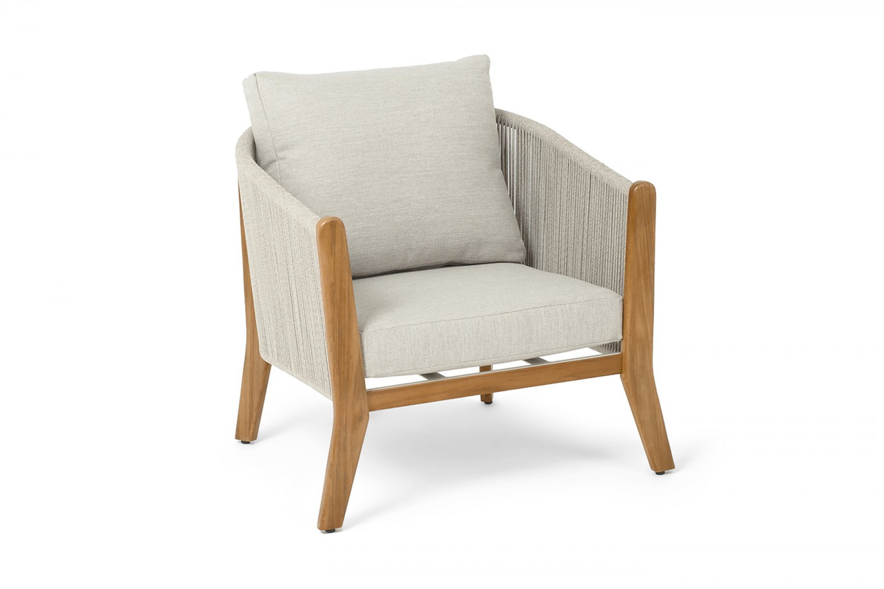 "Сидней" кресло плетеное из роупа, основание тик, каркас алюминий бежевый, роуп бежевый, ткань бежевая