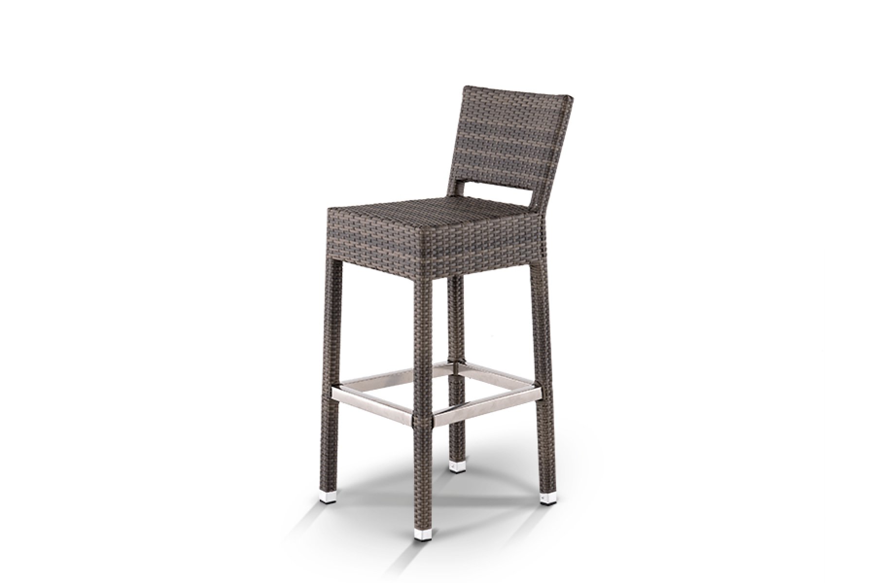 Барный стул стреза из плоского искусственного ротанга серо-коричневого оттенка. Алюминиевый каркас.