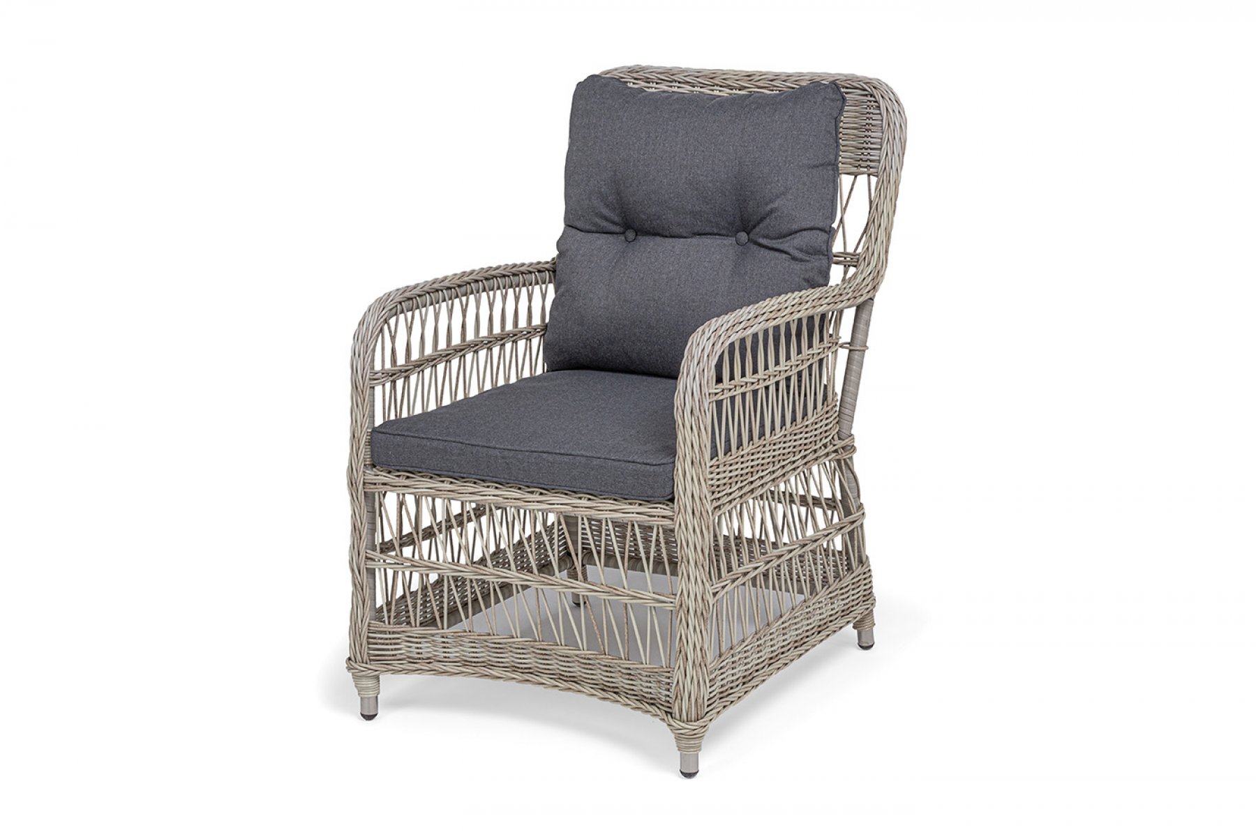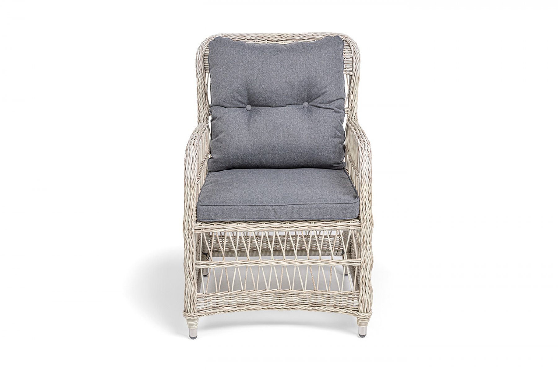Садовое кресло располагает двумя мягкими подушками, которые идут в комплекте. Они выполнены в сером цвете. Полиэстер высокого качества используется при пошиве тканевых изделий. Его плотность 300г