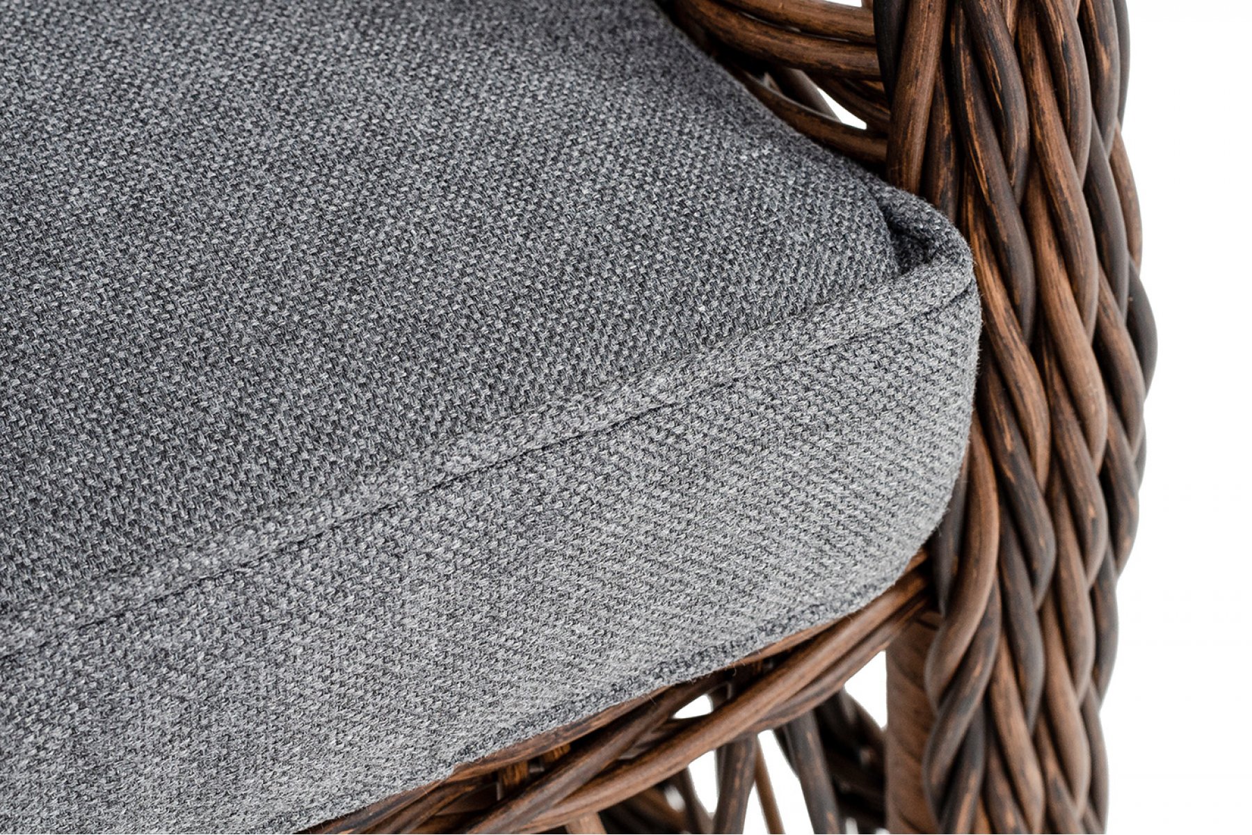 Алюминиевый каркас находится в основе мебели. Он характеризуется устойчивостью и высокой прочностью. Задекорирован ручной круглой оплеткой, которая сделана из искусственного ротанга. Представлена в коричневом оттенке.