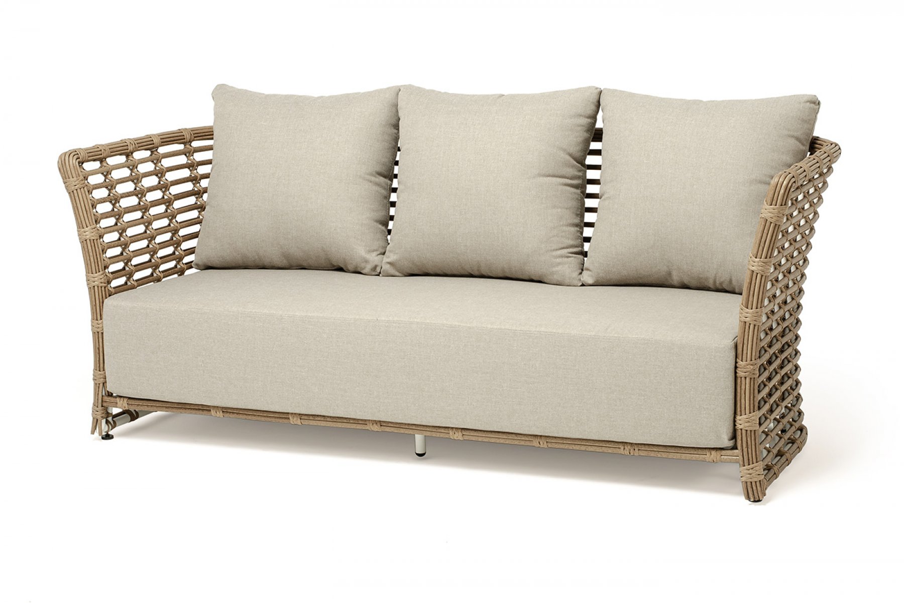 Диван «Валенсия» подходит для размещения сразу трех персон. Его основа из прочного алюминиевого каркаса.