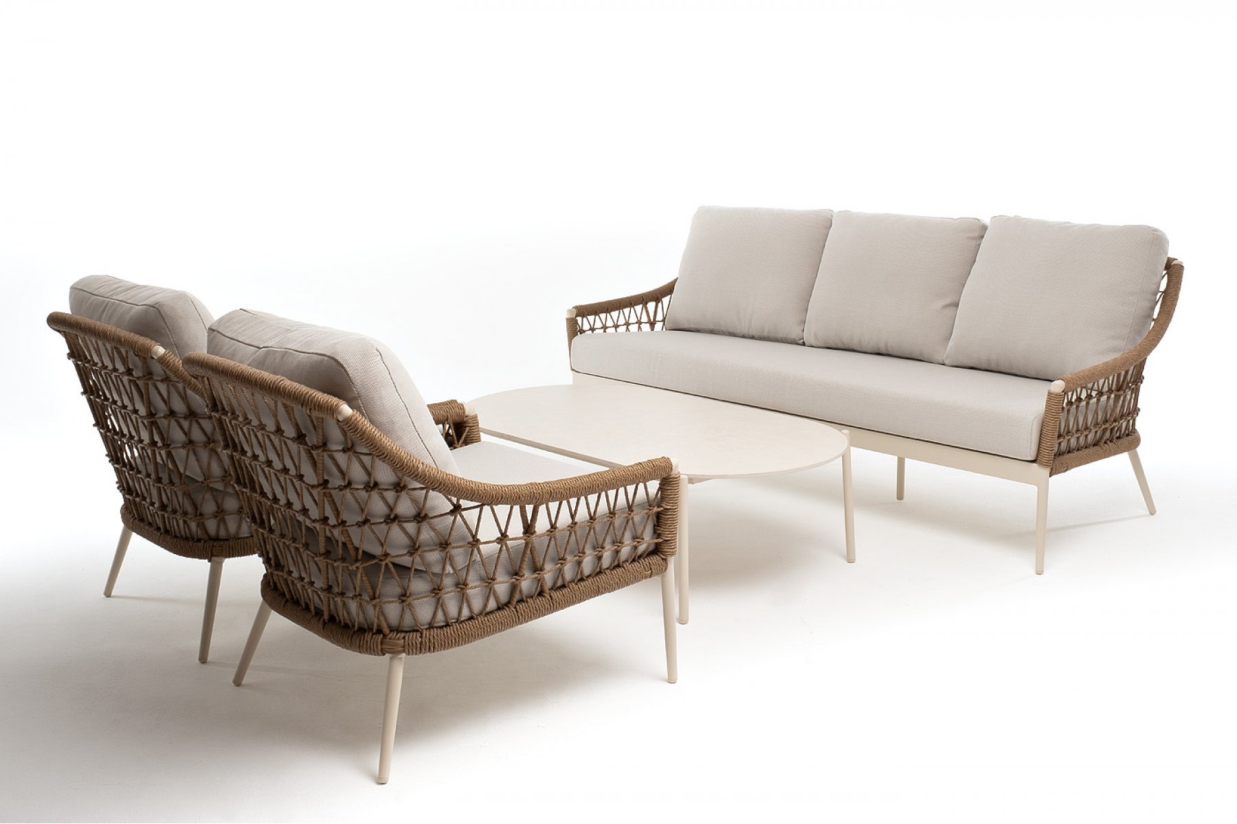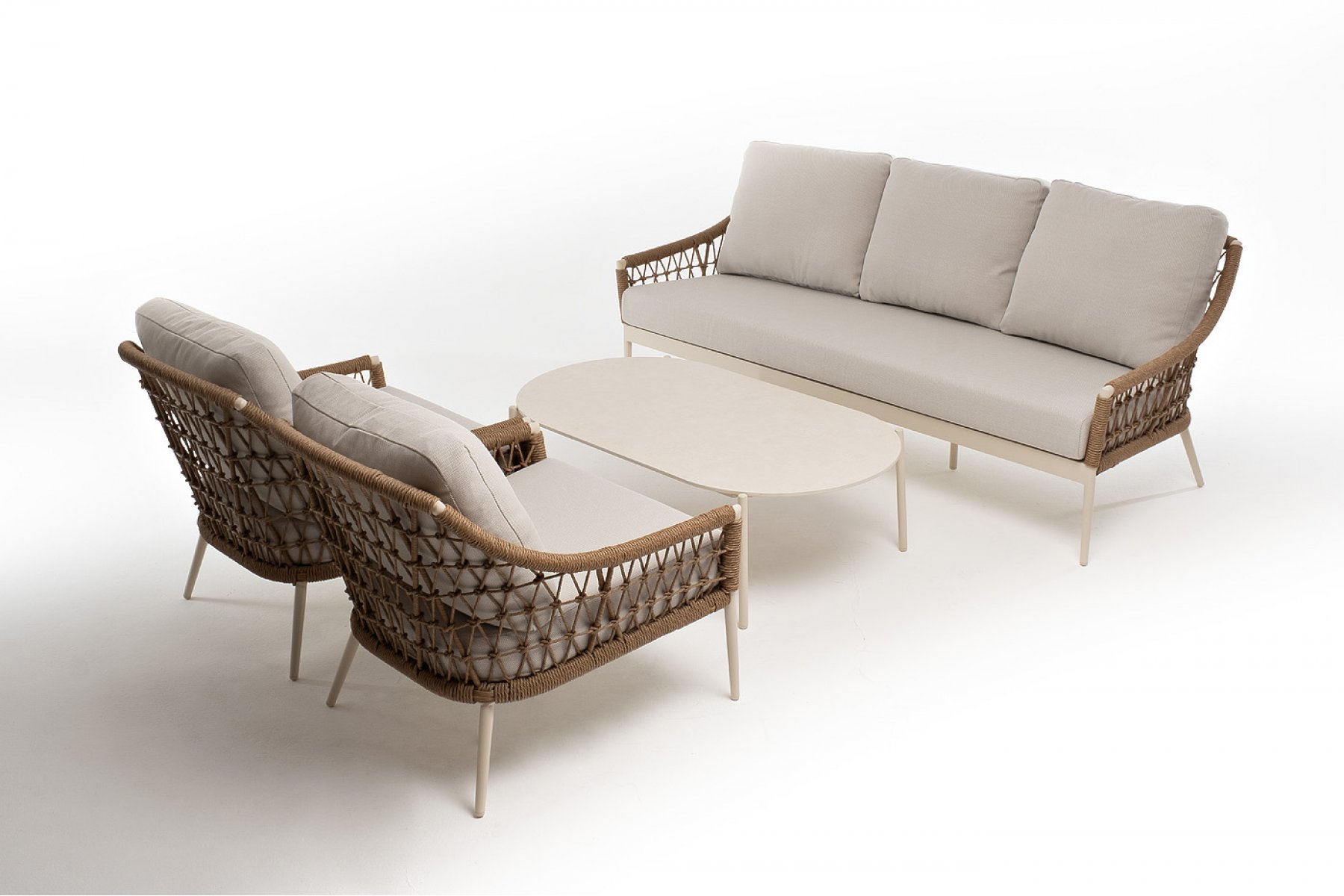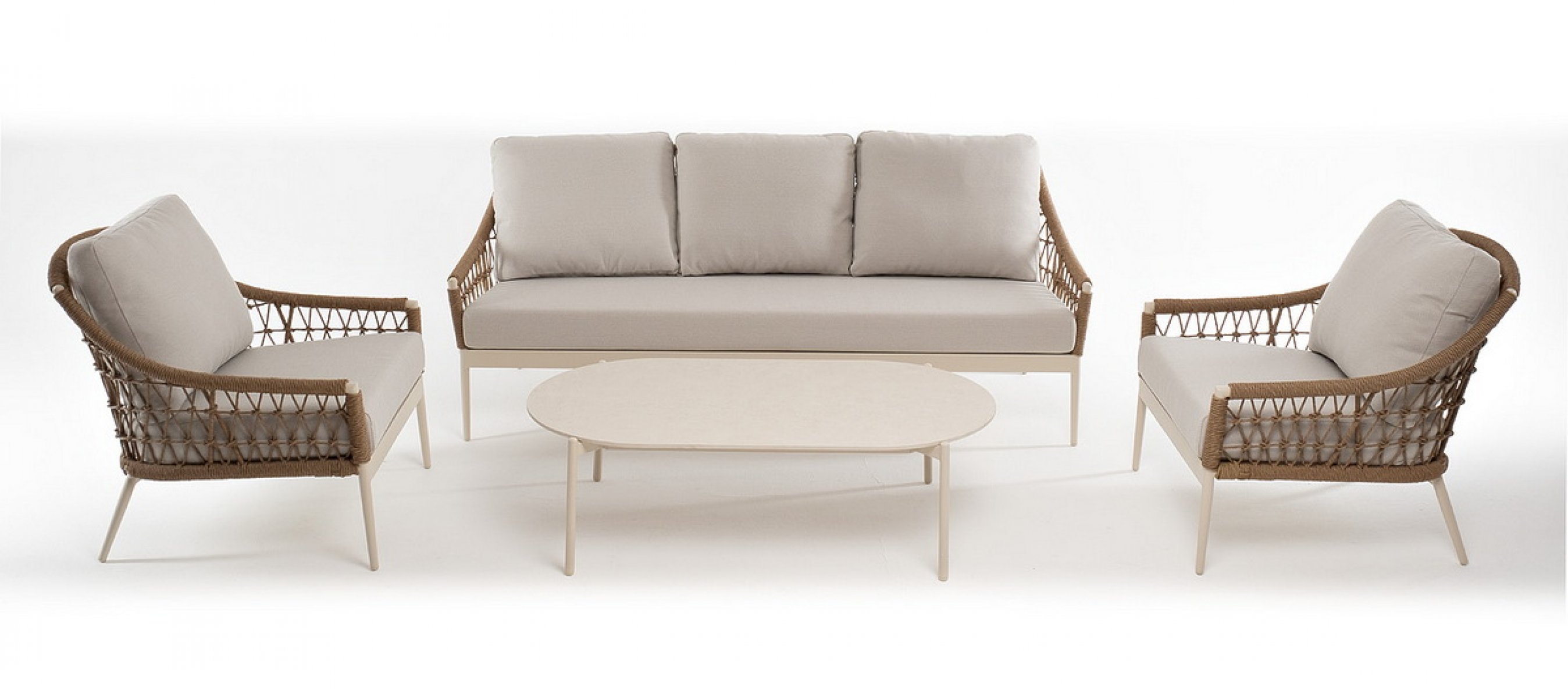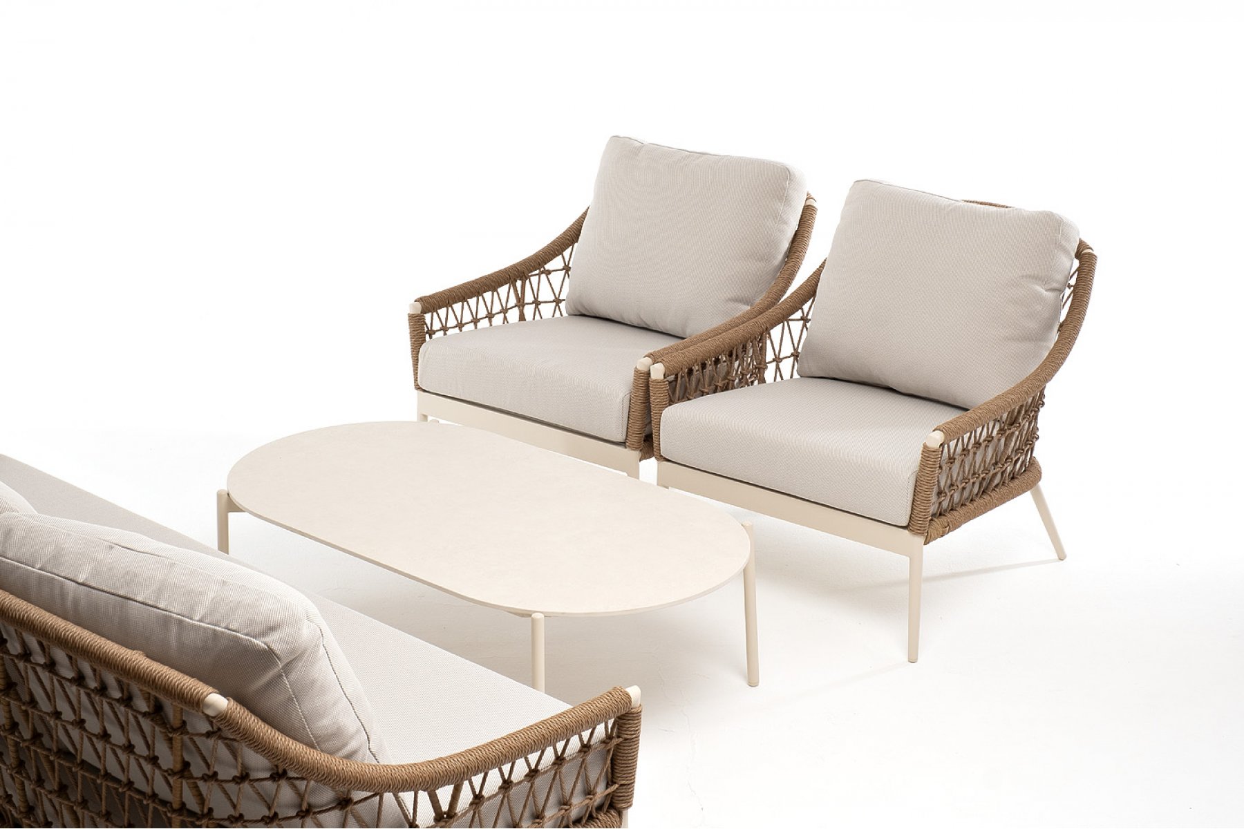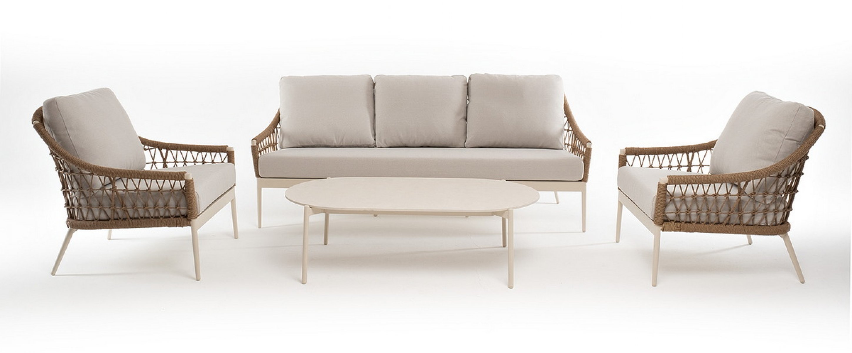 "Венеция" диван из искусственного ротанга трехместный, цвет соломенный 1шт. 2 040Х815Х830, "Венеция" кресло из искусственного ротанга, цвет соломенный 2шт. 800Х800Х855, "Венеция" журнальный стол из искусственного камня овальный, 130х70см, Н38, цвет белый 1шт. 1 300Х700Х380,