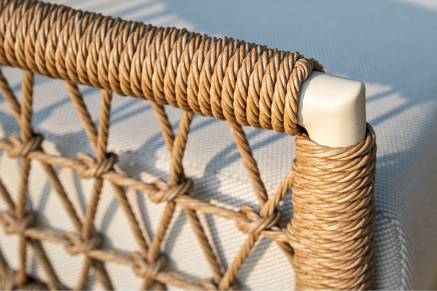 Модели имеют алюминиевый каркас, который оплетен вручную искусственным ротангом натурального соломенного цвета.