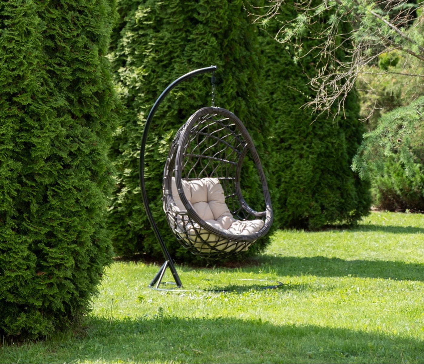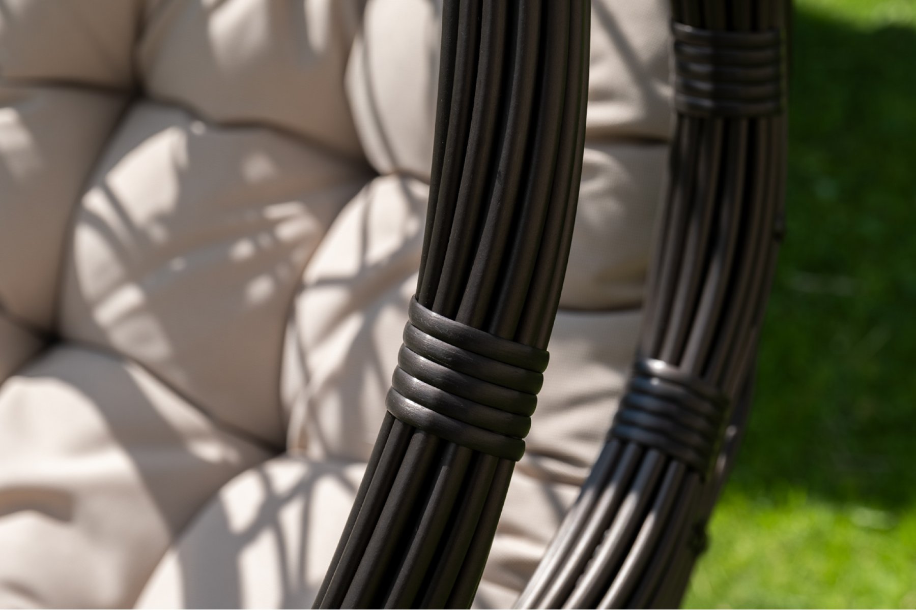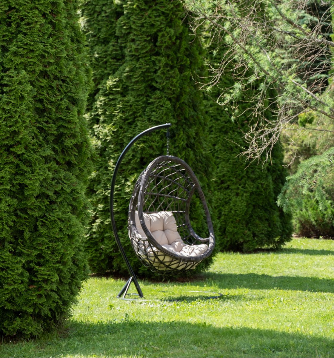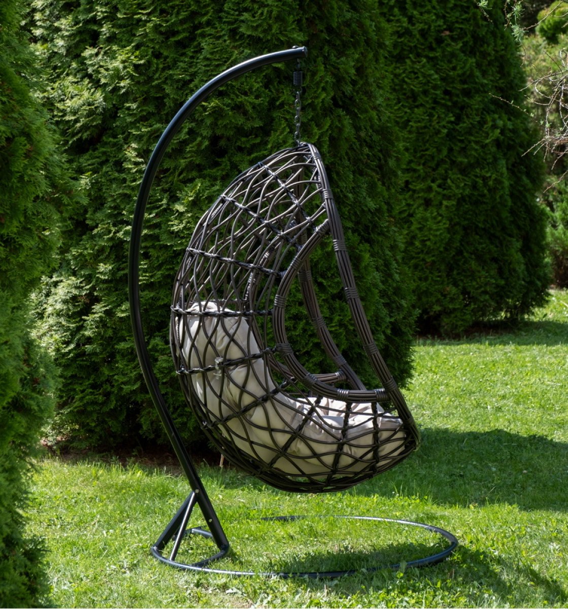 Уютное садовое кресло-кокон «Венеция» для организации лаунж-зоны. Основание изготовлено из стали окрашенного порошковой износостойкой краской черного оттенка, вручную оплетенного круглый искусственным ротангом бронзового цвета. Этот материал не боится перепадов температуры, прямых солнечных лучей, дождя и ветра.