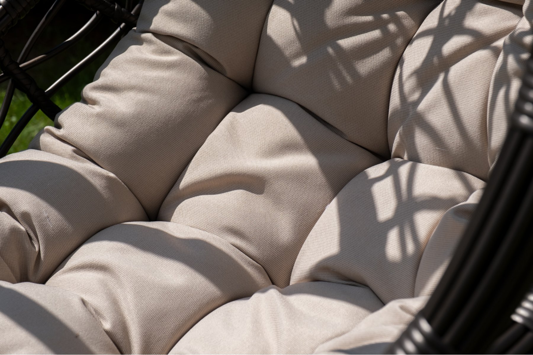 Для удобства сидения на кресле предусмотрена удлиненная подушка бежевого цвета из полиэстера с влагоотталкивающей пропиткой. Чехол – съемный, допускается стирать в стиральной машине с
