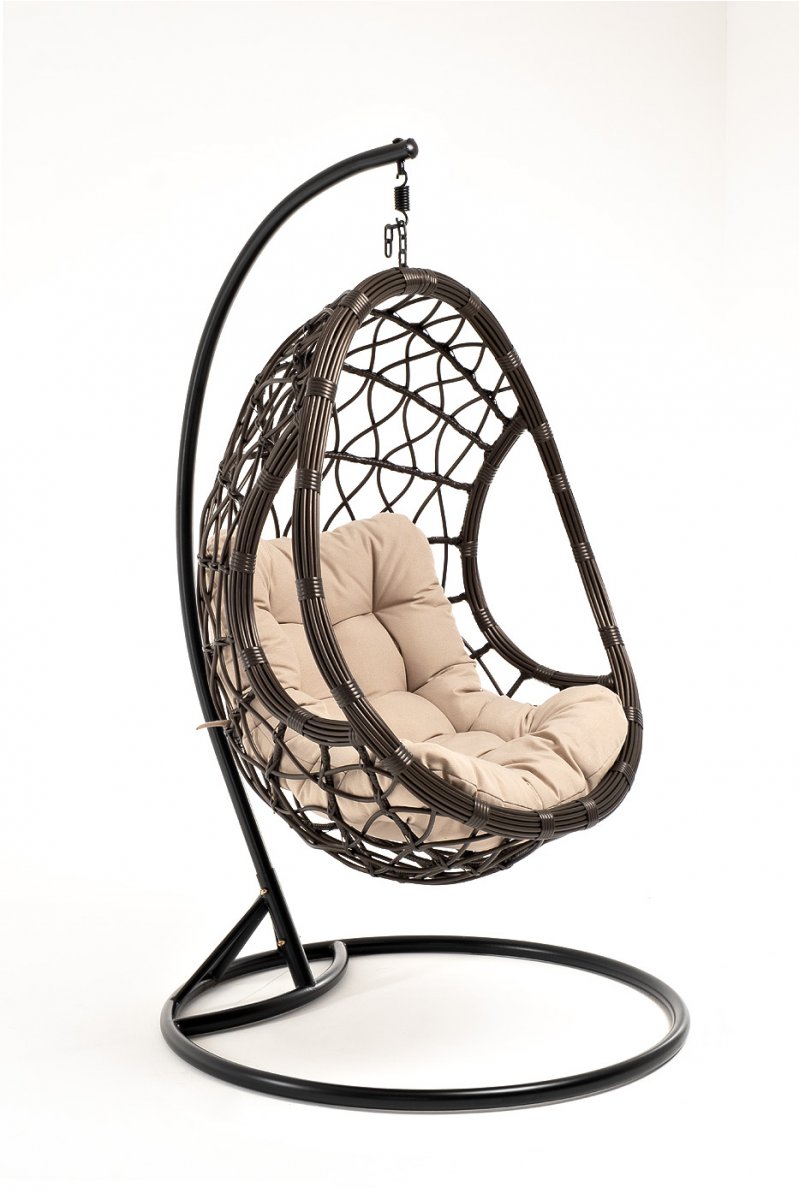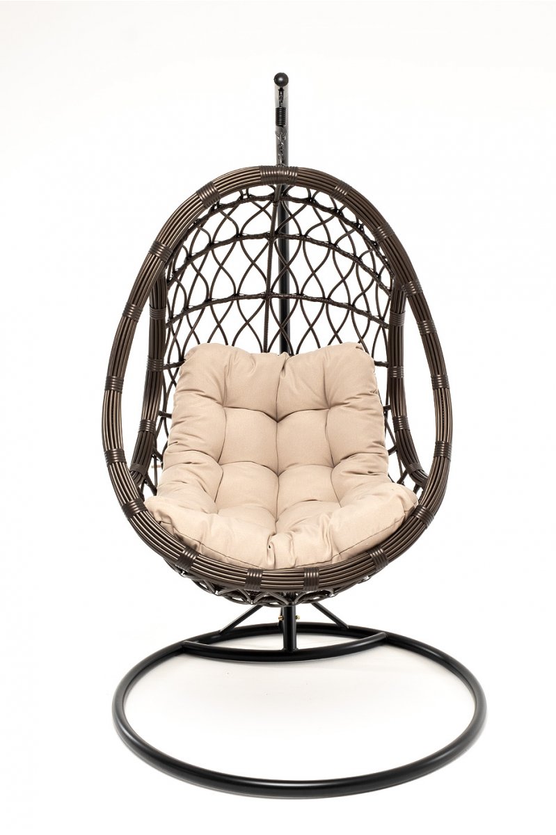 "Венеция" подвесное кресло-кокон из искусственного ротанга, цвет бронзовый с бежевой подушкой