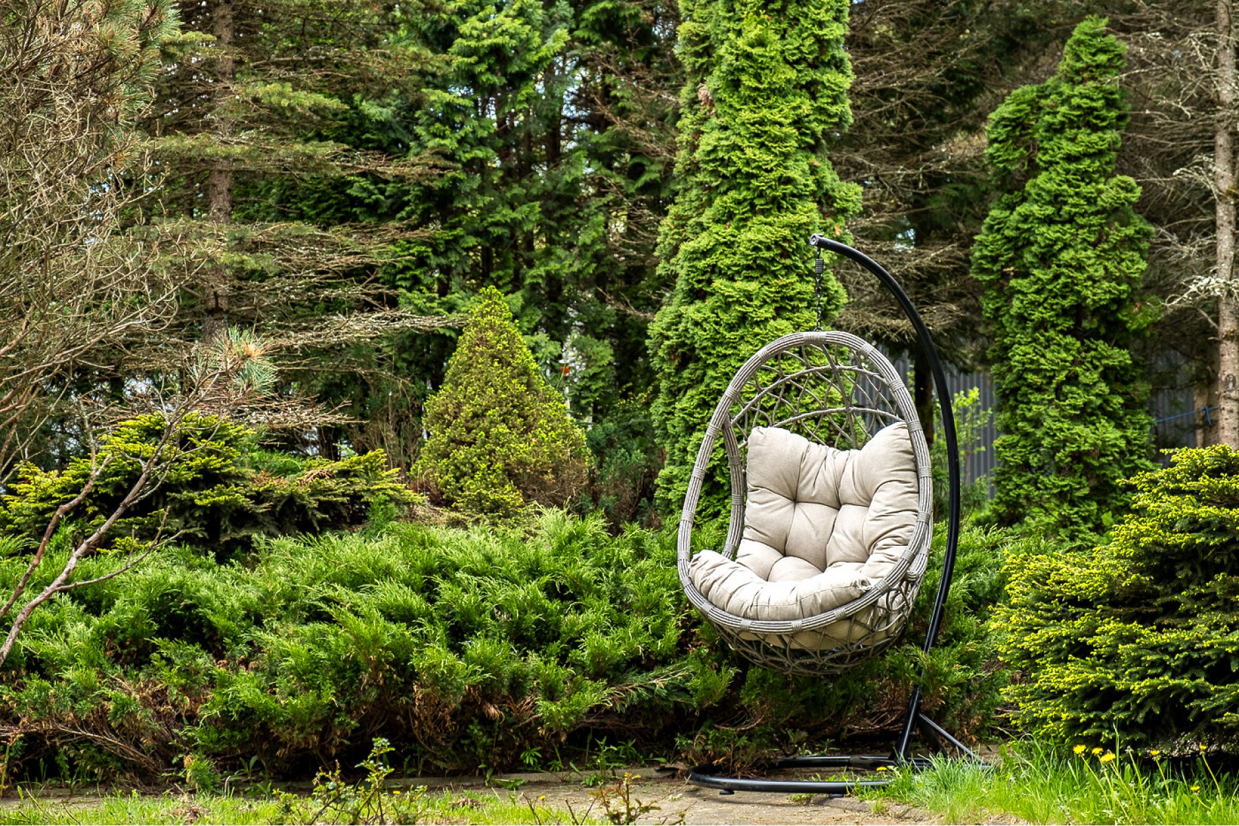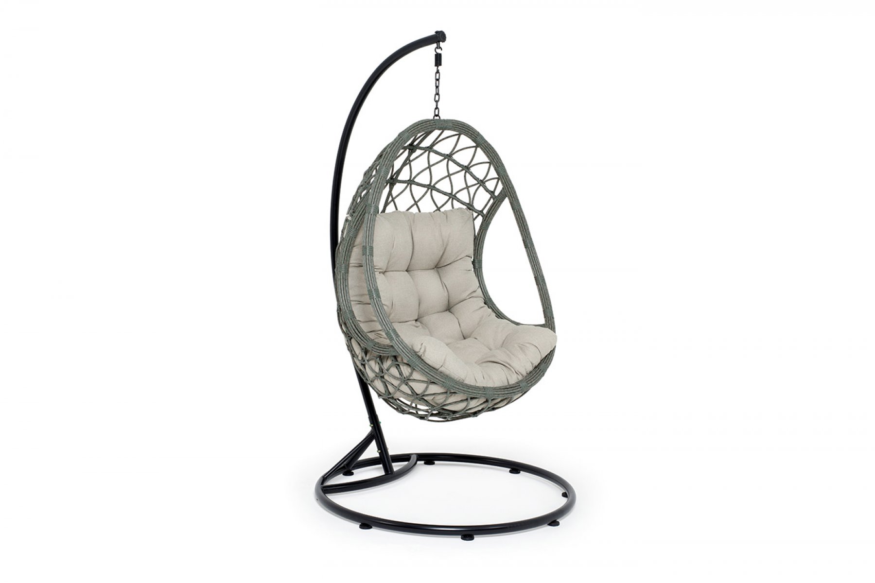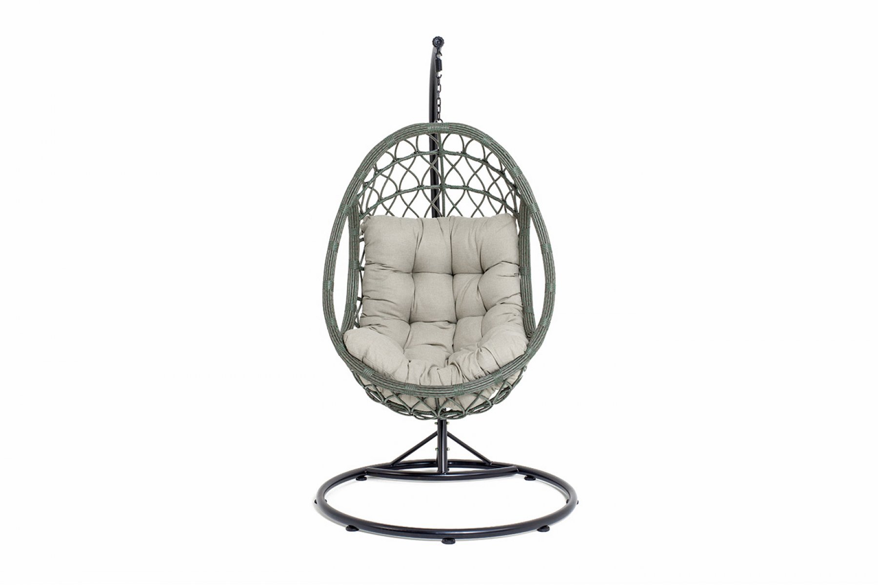 "Венеция" подвесное кресло-кокон из искусственного ротанга, цвет серый с бежевой подушкой
