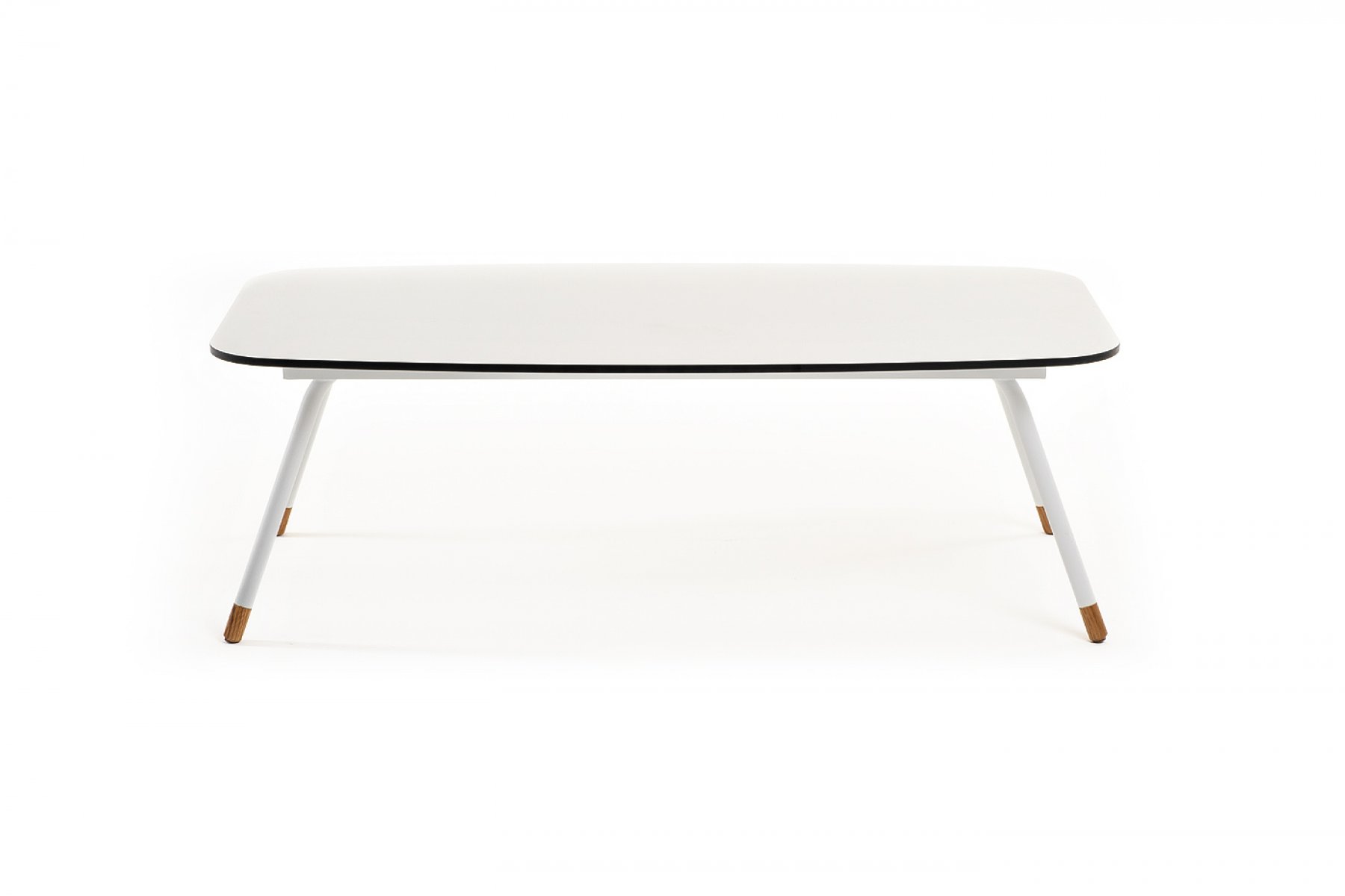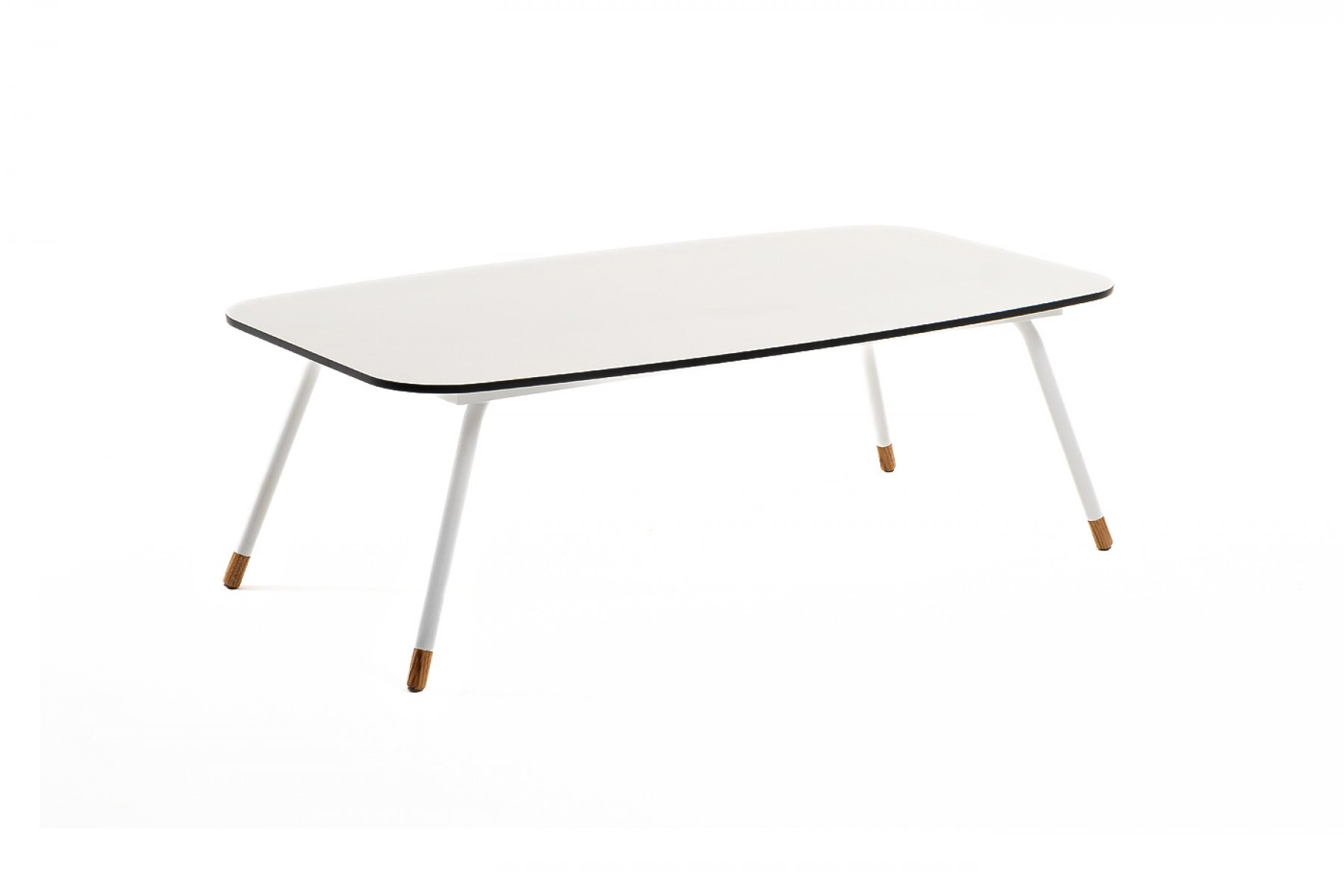 Каркас столика изготовлен из алюминия, окрашенного в белый цвет. Алюминий является легким и прочным материалом, что обеспечивает долговечность и надежность изделия. На ножках столика идут дубовые наконечники (заглушки).