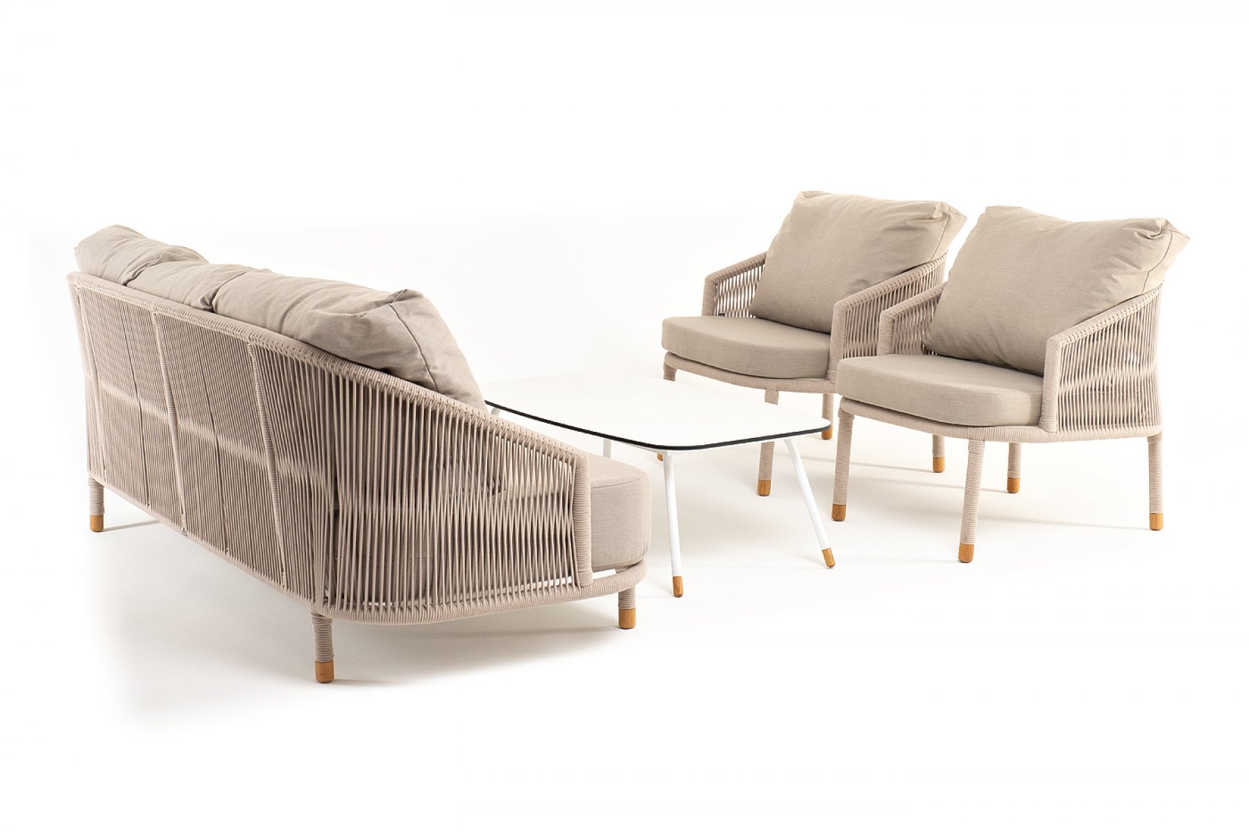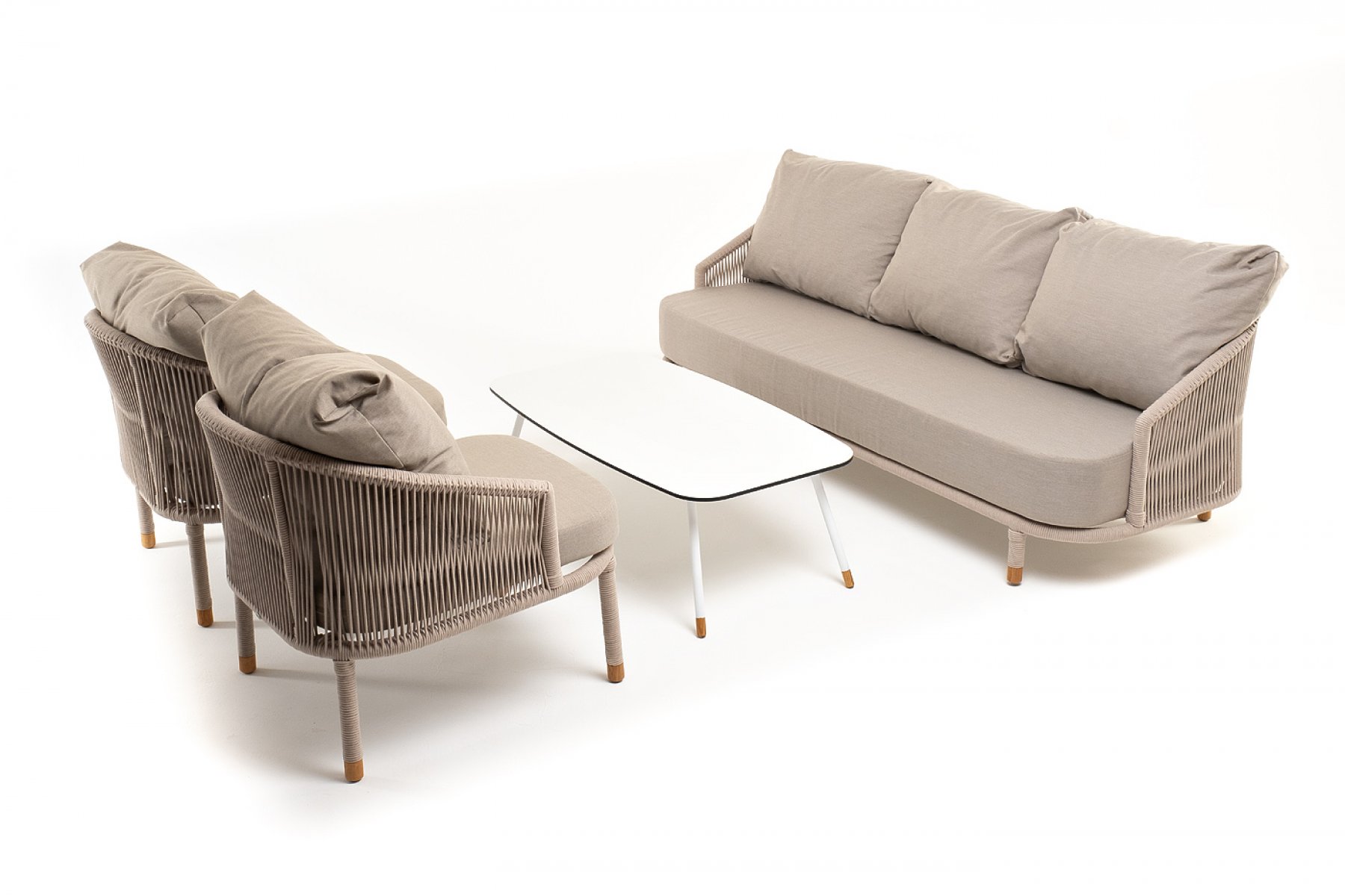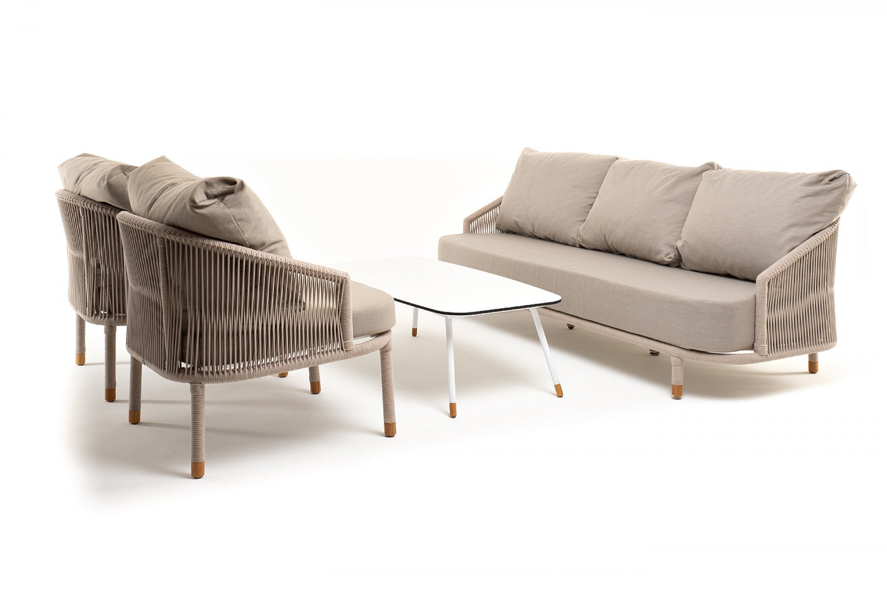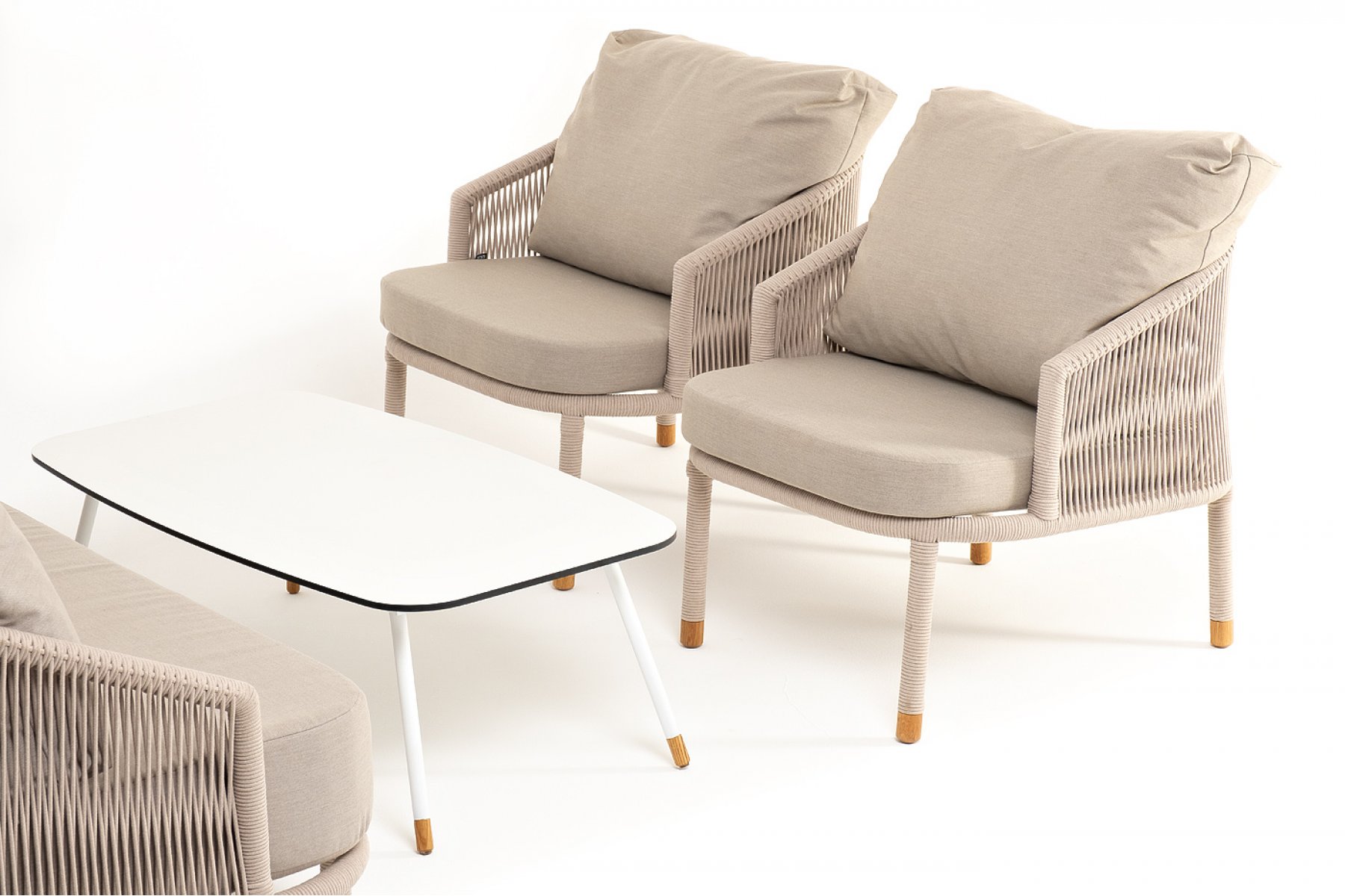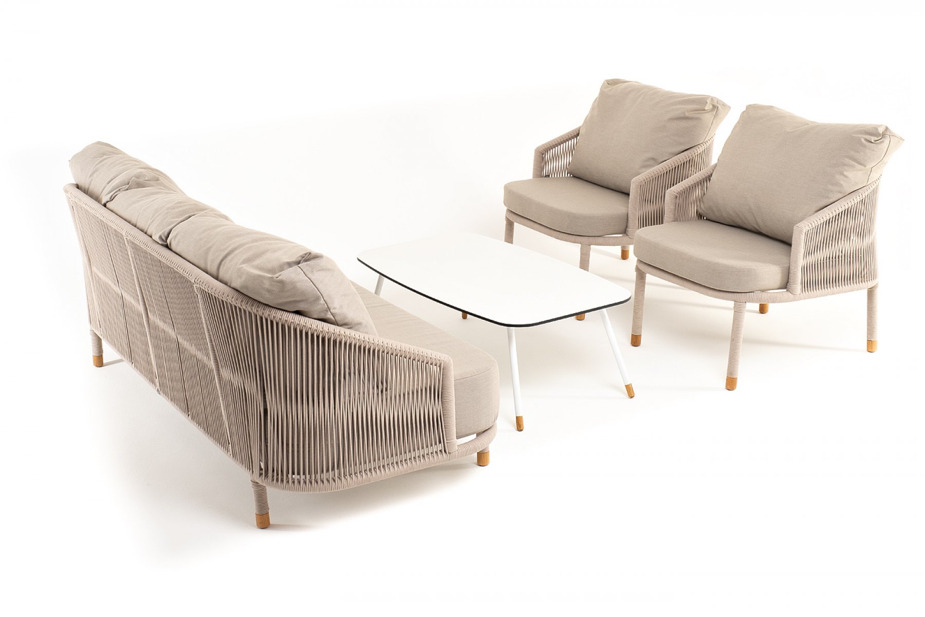"Верона" лаунж-зона 5-местная плетеная из роупа (веревки), каркас алюминиевый белый, роуп бежевый
