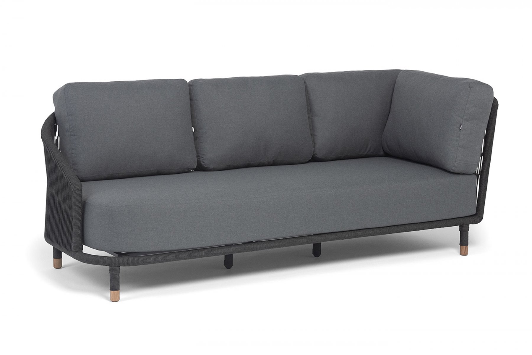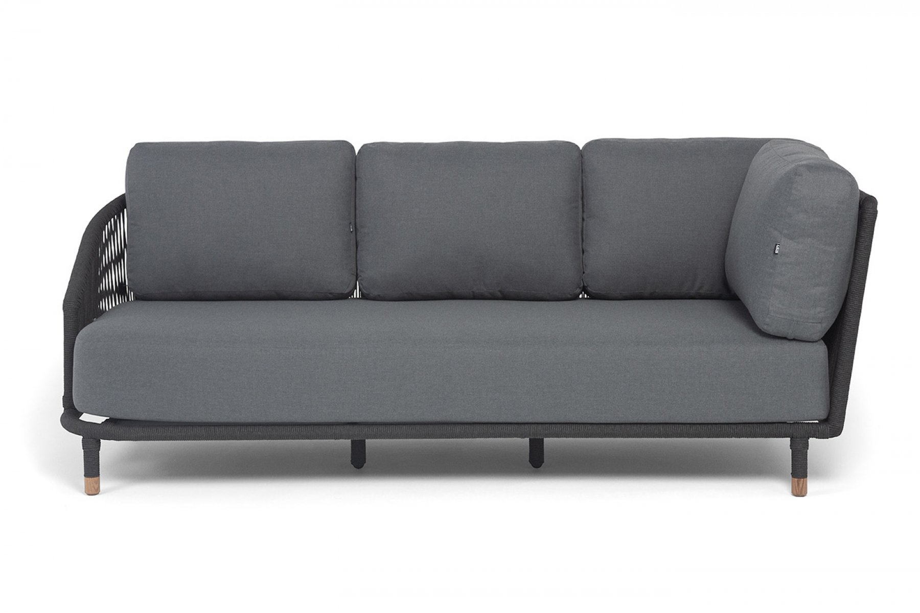 "Верона" правый-угол модуль плетеный из роупа, каркас алюминий темно-серый (RAL7024) муар, роуп темно-серый круглый, ткань темно-серая 027, L220