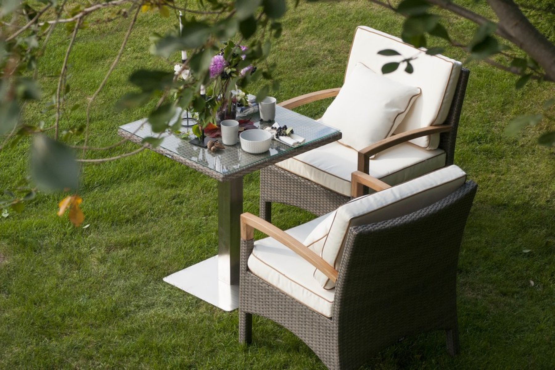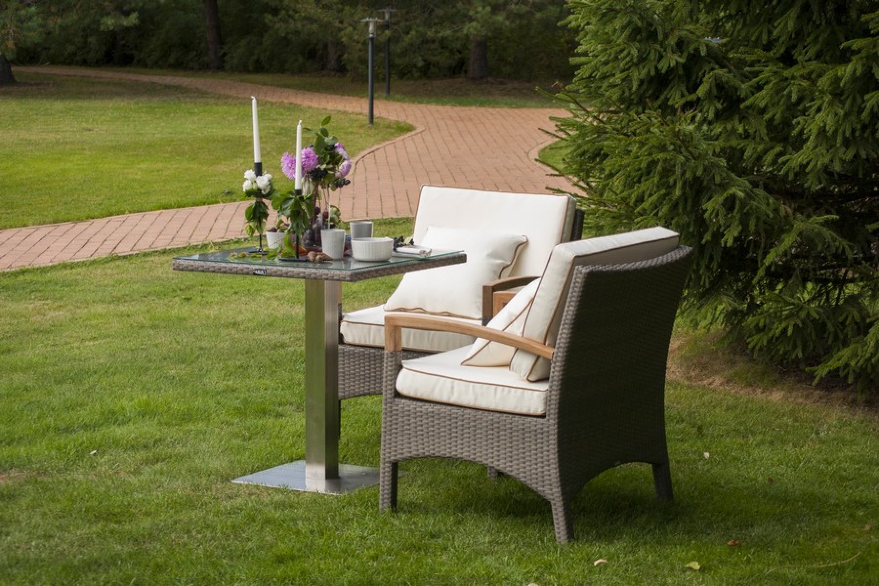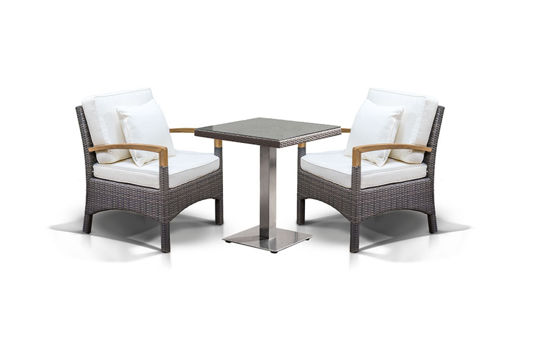 В комплект обеденной группы входит один обеденный стол, два стула