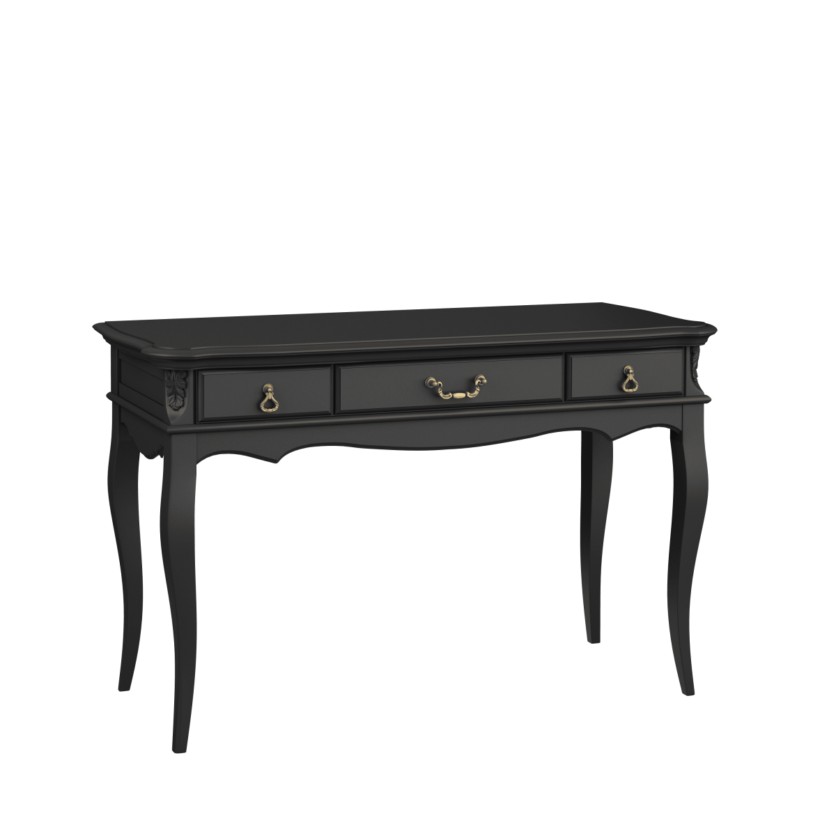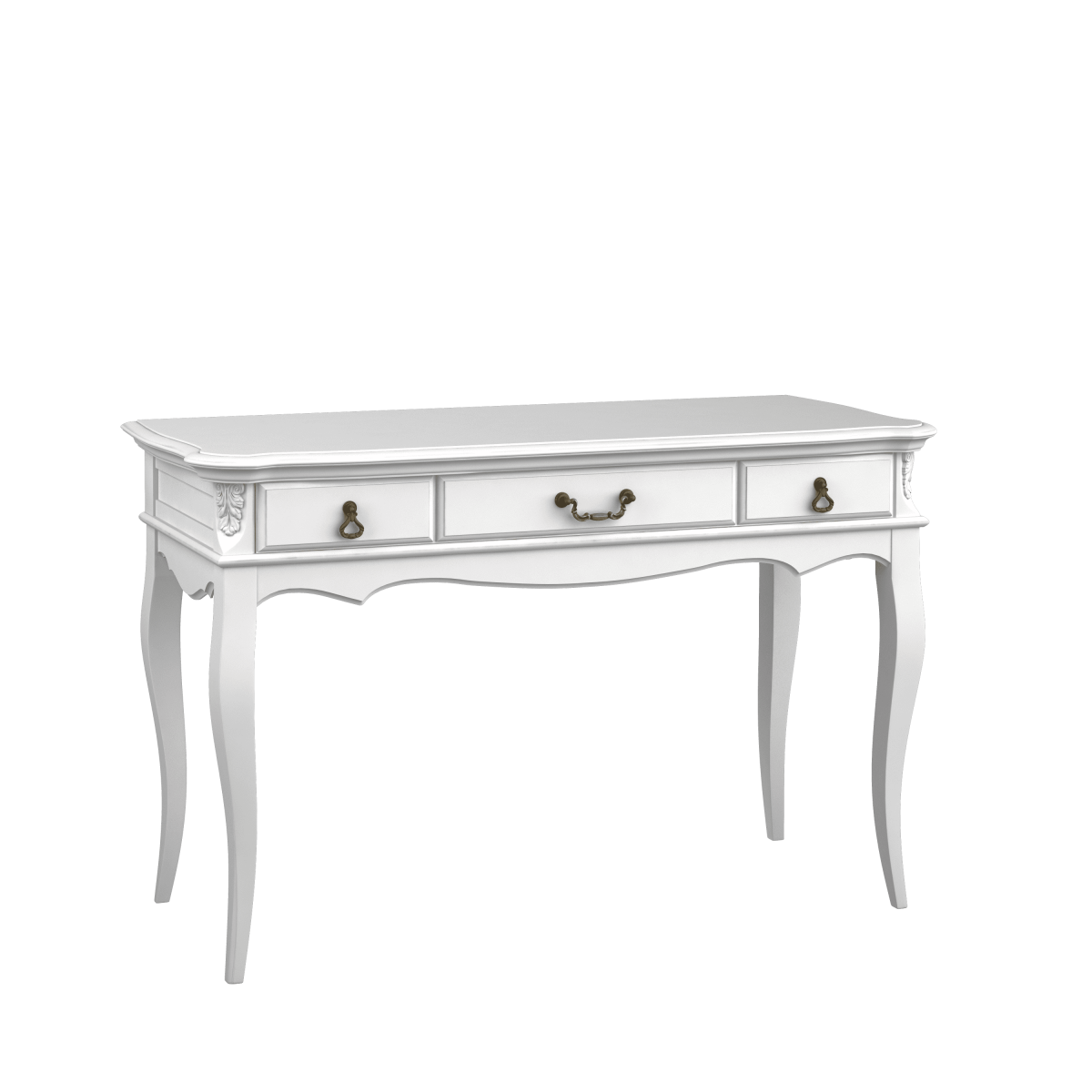 Стол-консоль с тремя ящиками. Красота и эргономичность этой модели поражает своей функциональностью. Он может использоваться как туалетный стол, письменный стол или стол для компьютера. Благодаря наличию трех выдвижных ящиков любимые мелочи всегда будут под рукой.Мебель выполнена в стиле прованс.