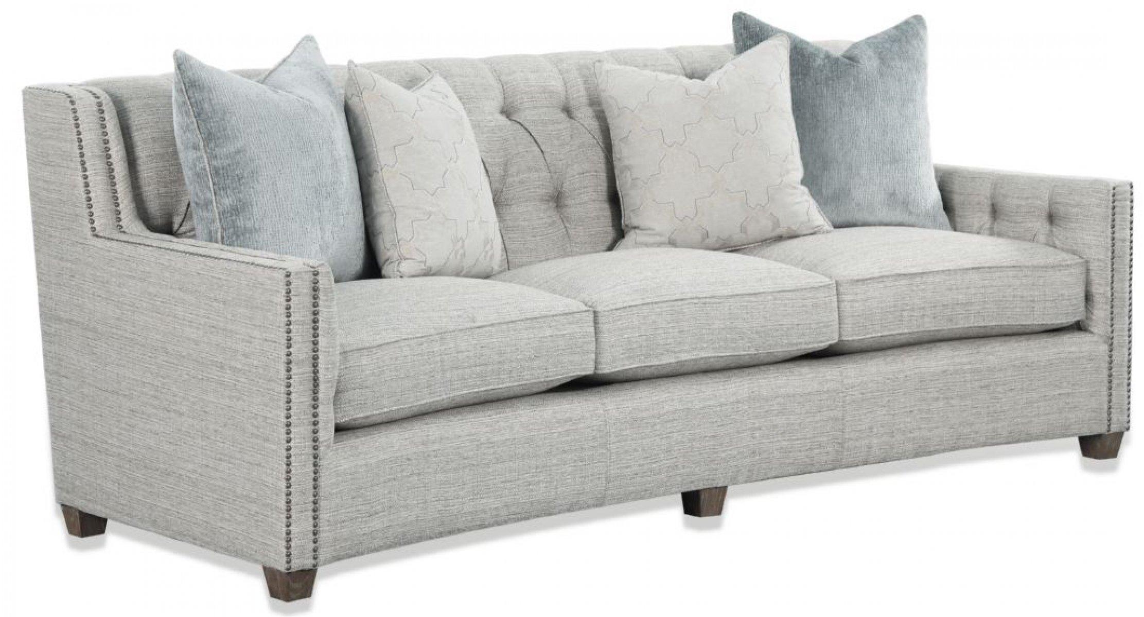 Интересный вариант дивана в традиционном стиле. Каркас дивана, как и его ножки с основанием изготовлены из дерева. Для обивки используется ткань нейтрального цвета. Спинка и подлокотники дивана перетянуты декоративной стяжкой с пуговицами в местах пересечений. Диван выглядит очень элегантно и стильно и несомненно сумеет не только гармонично вписаться в интерьер вашего дома, но и вполне заслуженно стать его украшением.Исполнение как на фотографии.