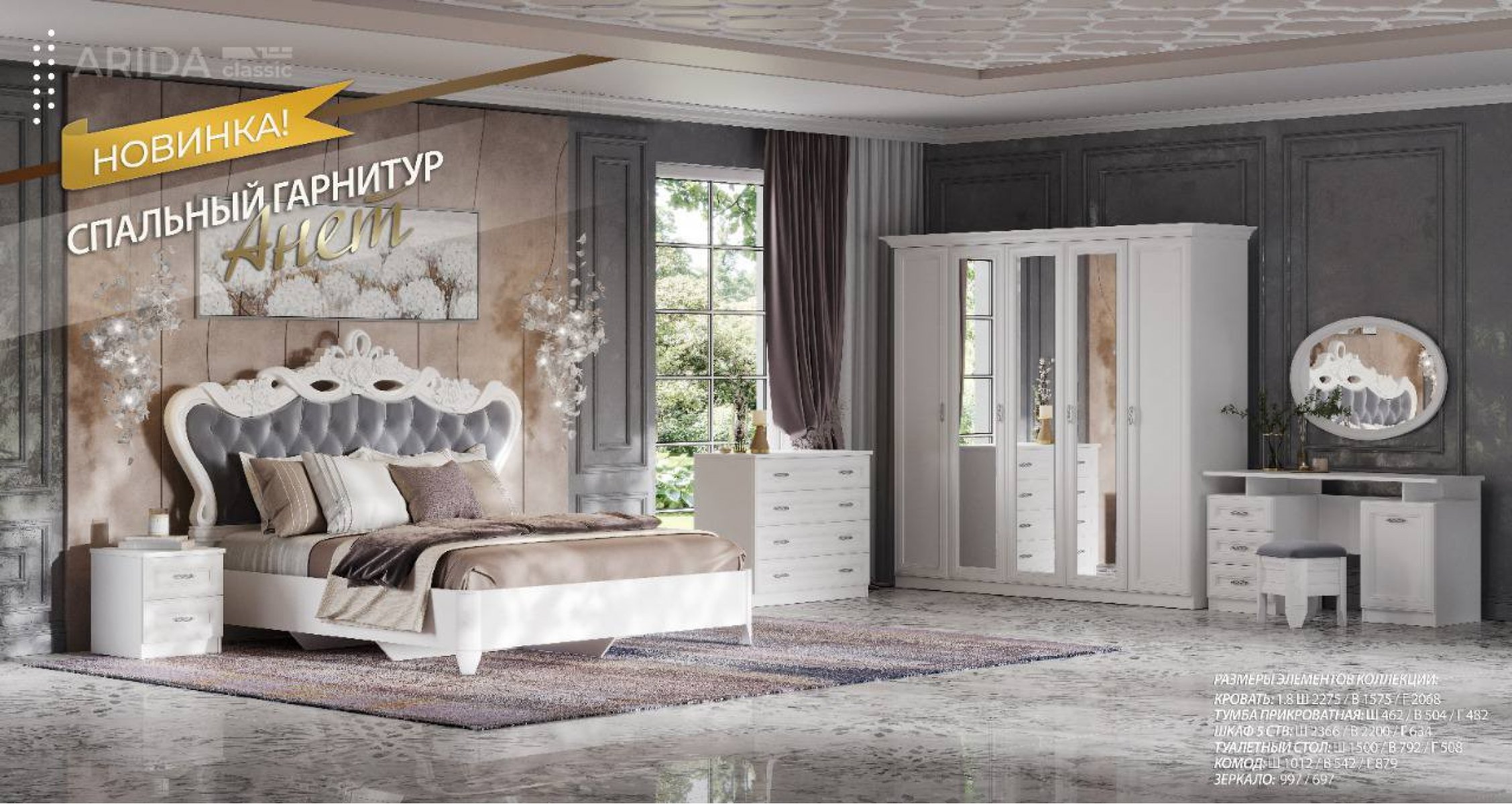 Шкаф Анет фабрики Арида выполнен в стиле неоклассика