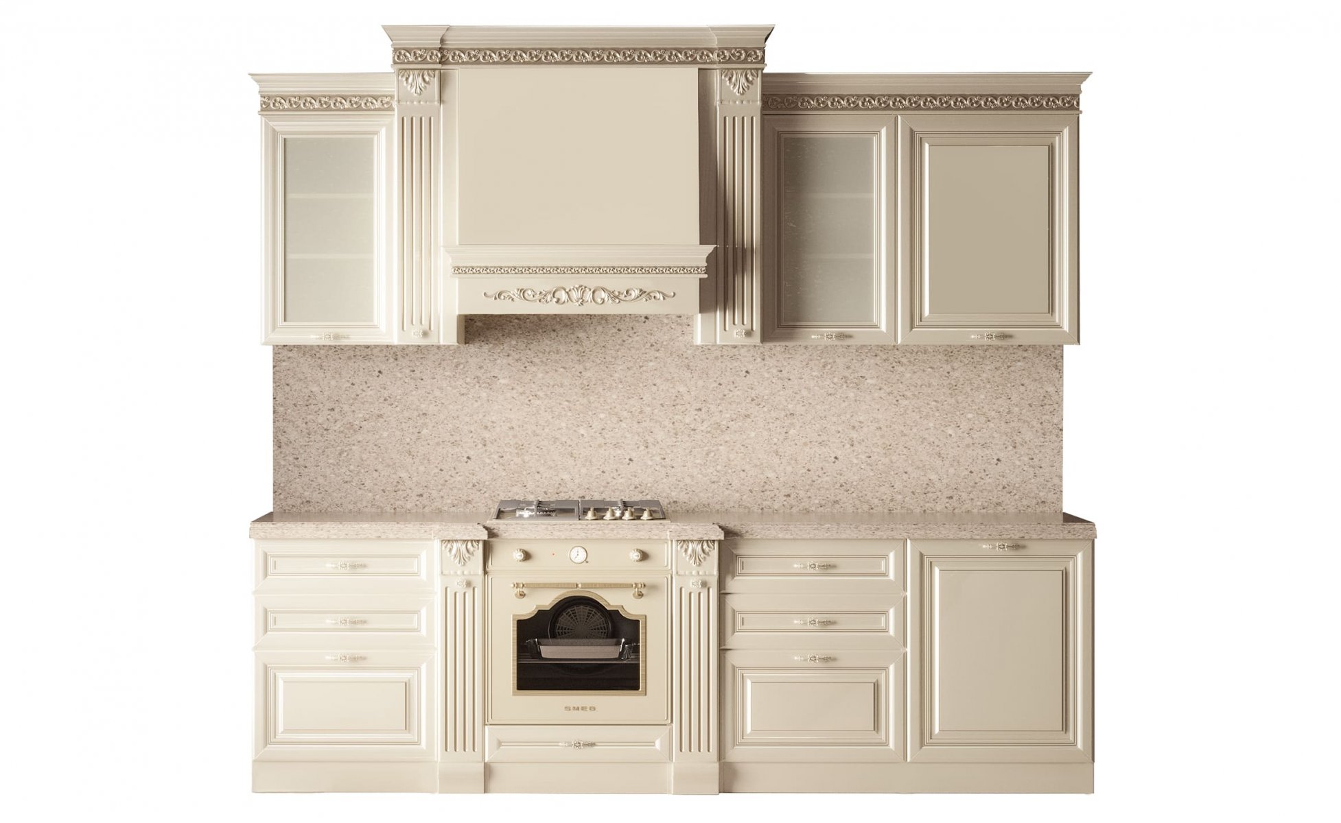 Карниз/Молдинг Полистирол - высокопрочный термопластичный полимер с особой плотностью, влагостойкий и износостойкий. Запил карниза для пеналов и портала под вытяжку производится на фабрике. Вкладывается запас для самостоятельной сборки остальных участков