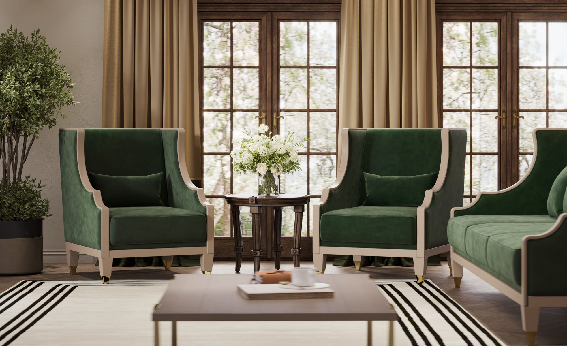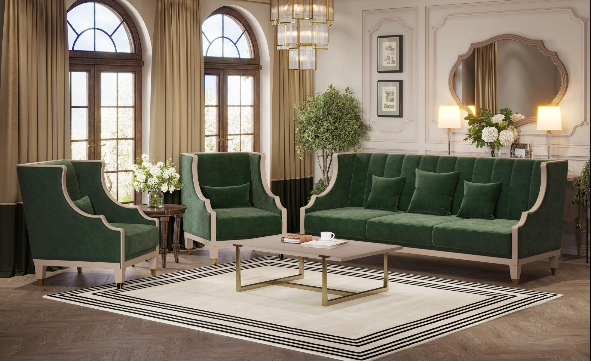 Цвет: зеленый, бежевый велюр
