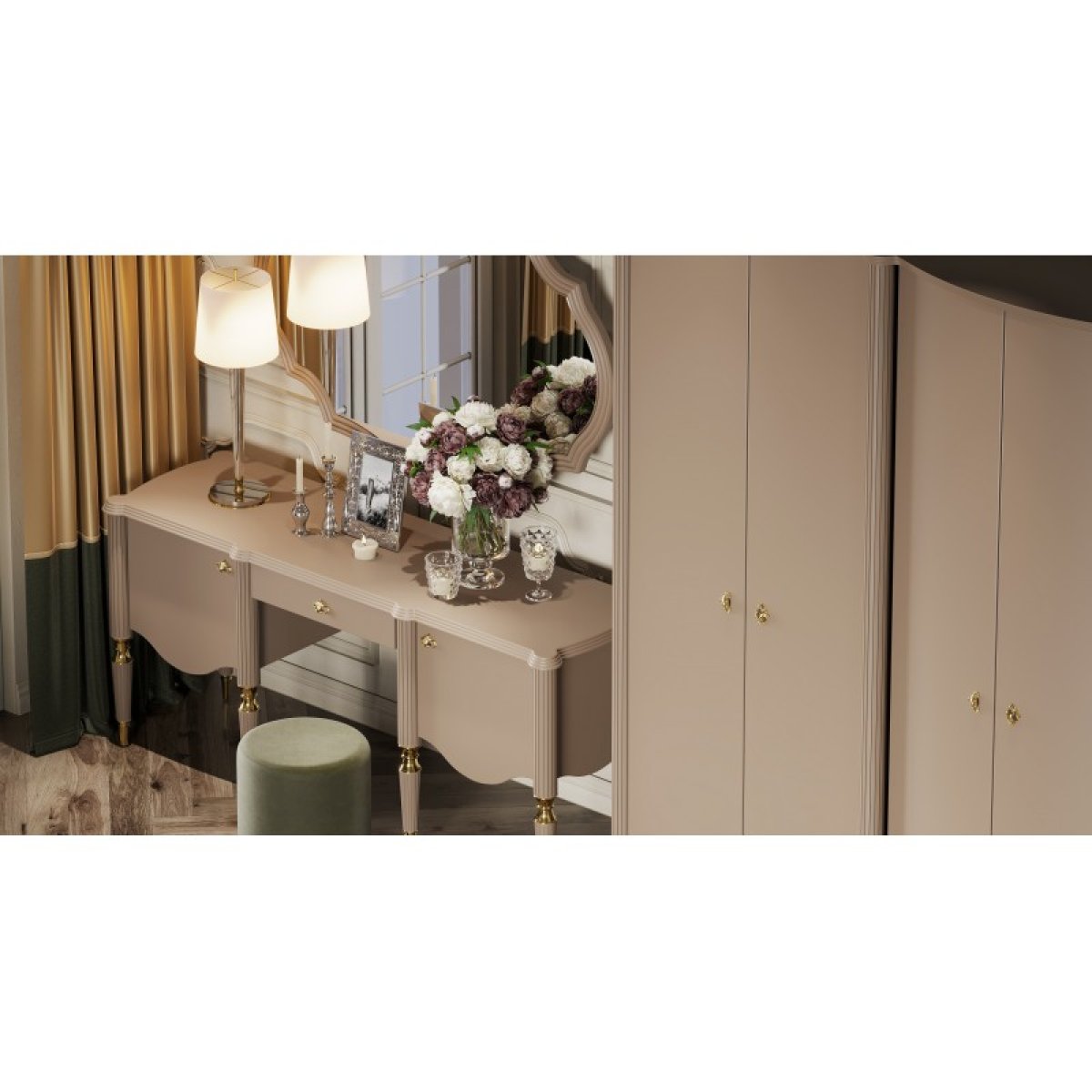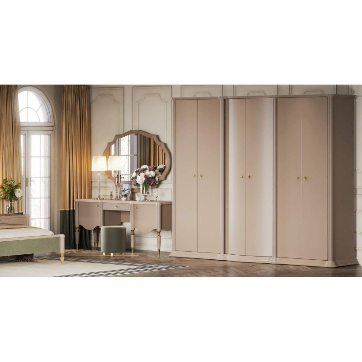 Деликатные закругления, повторяющиеся во всех элементах коллекции, создают единый запоминающийся ансамбль. Изящные ножки с оригинальными металлизированными вставками делают спальню необыкновенно лёгкой, а тёплый кофейный оттенок создаст ощущение тепла и уюта в вашей спальне. Коллекция прекрасно смотрится как к в современном, так и классическом интерьере.
