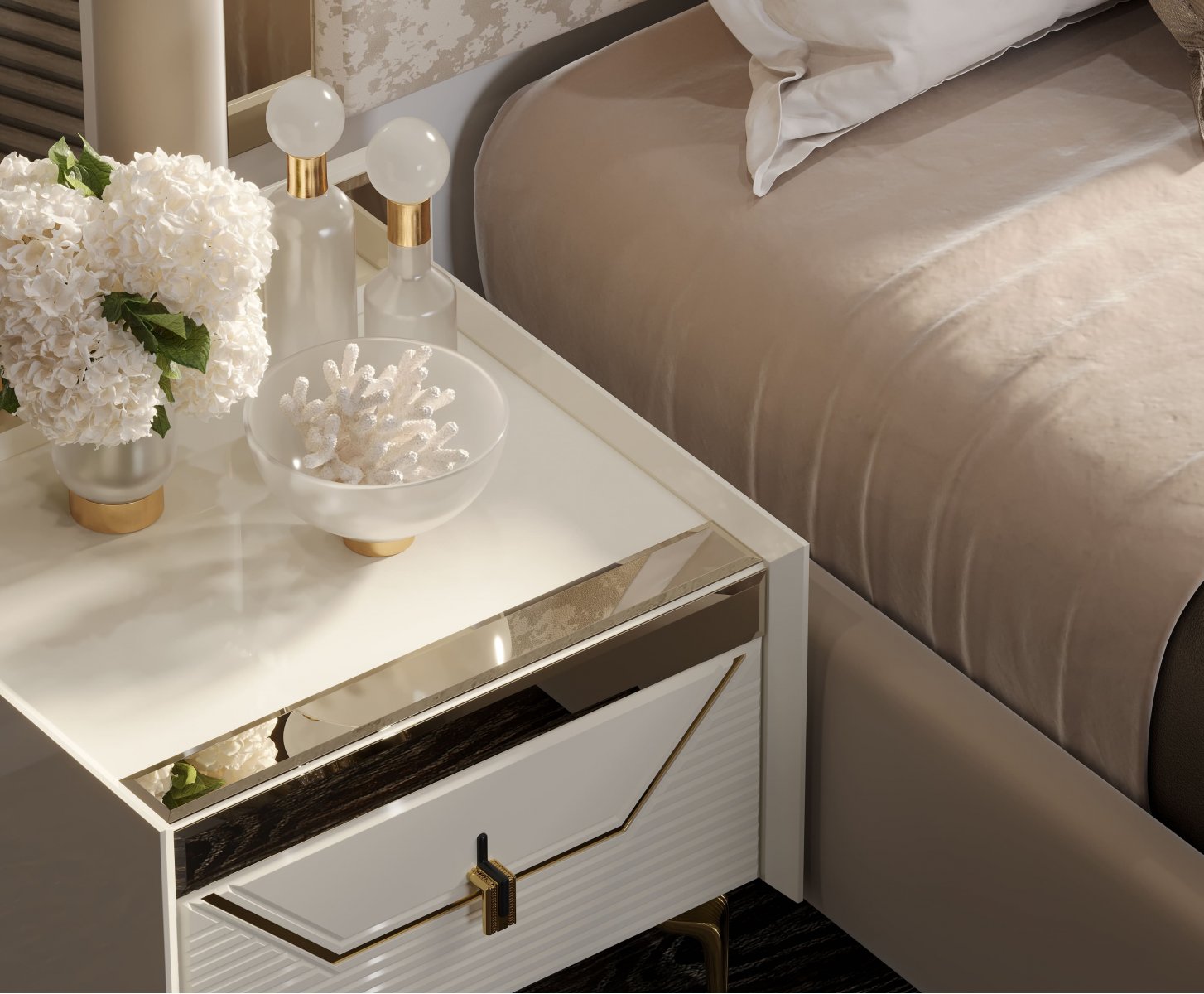 Спальный гарнитур «Стефани» - настоящий бриллиант коллекции ар-деко от «Арида». Строгие линии подчёркнутые многогранными переливами тонированных зеркал, создают удивительную игру света. Туалетный стол - эталонный образец сочетания функциональности и впечатляющего дизайна. Стильный и роскошный дизайн, приковывает внимание и станет поистине уникальным произведением искусства в вашей спальне.