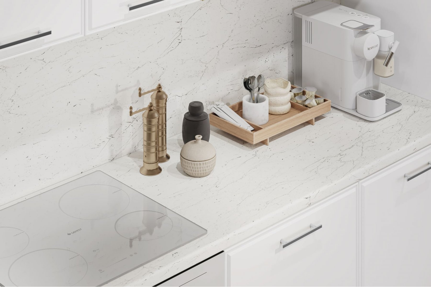 Фурнитура лицевая: Ручки из металла с межосевым расстоянием 128 мм (серебро или золото)