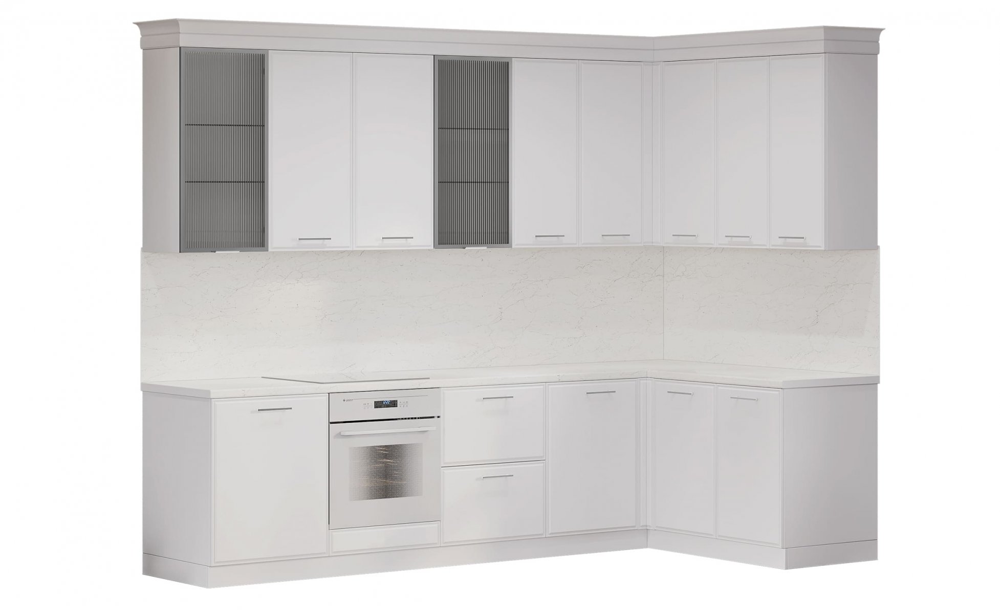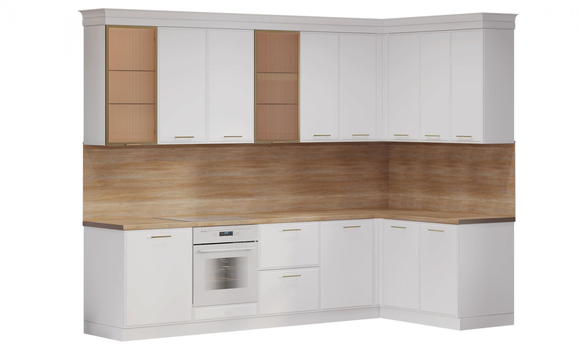 Карниз/Молдинг:  Полистирол - высокопрочный термопластичный полимер с особой плотностью, влагостойкий и износостойкий. Запил карниза для пеналов и портала под вытяжку производится на фабрике. Вкладывается запас для самостоятельной сборки остальных участков