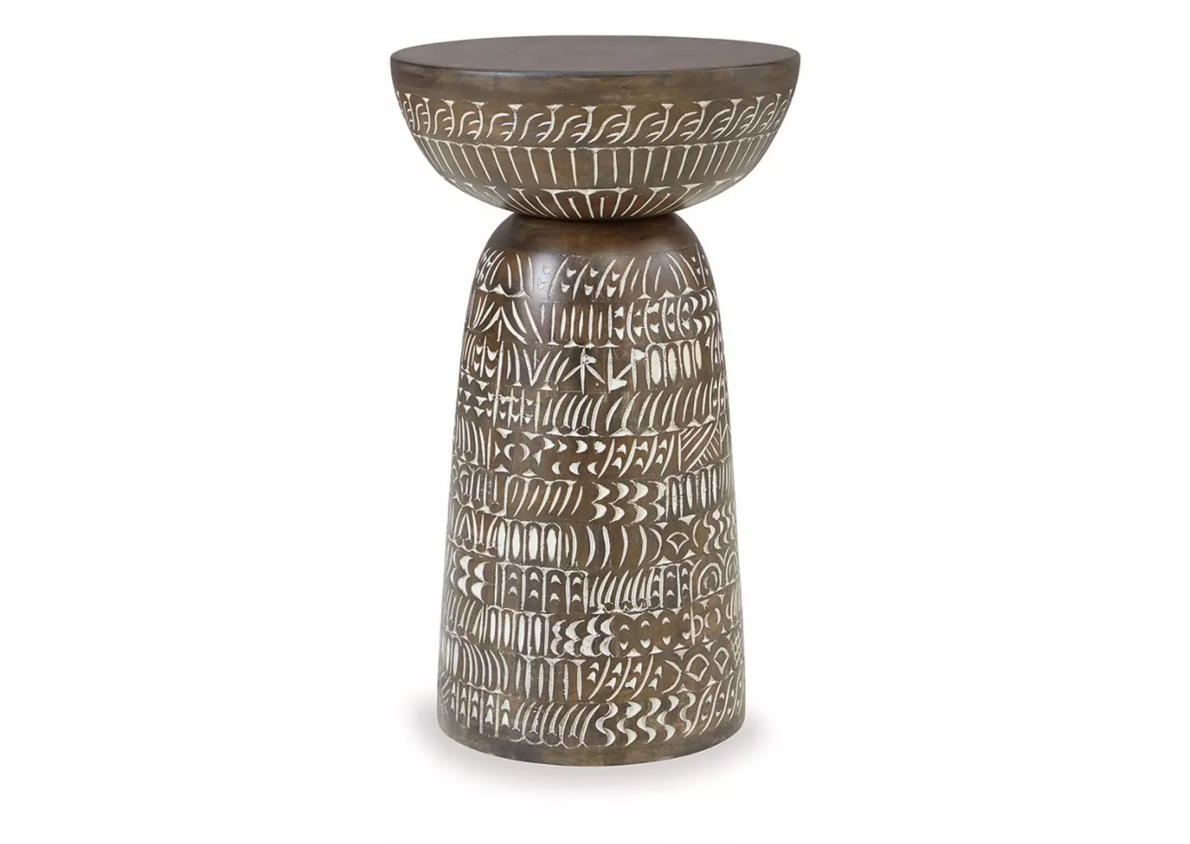 столик — настоящее арт-воплощение: резной цветочный орнамент превращает