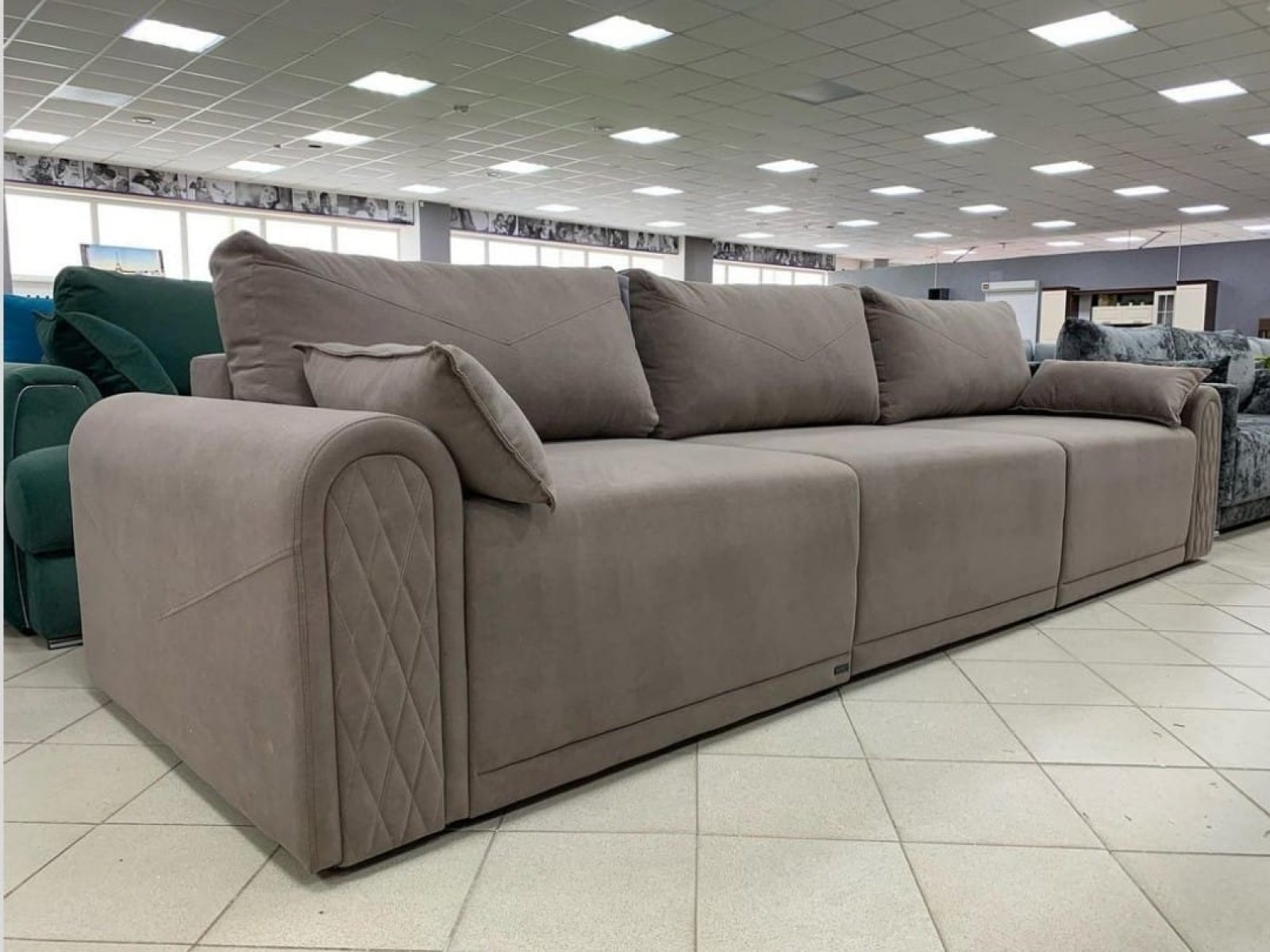 Комбинация прострочек на подлокотниках и подушках делают стиль элементов единым. Мягкий, практичный и удобный в эксплуатации диван Флоренс ждёт ваших заявок.