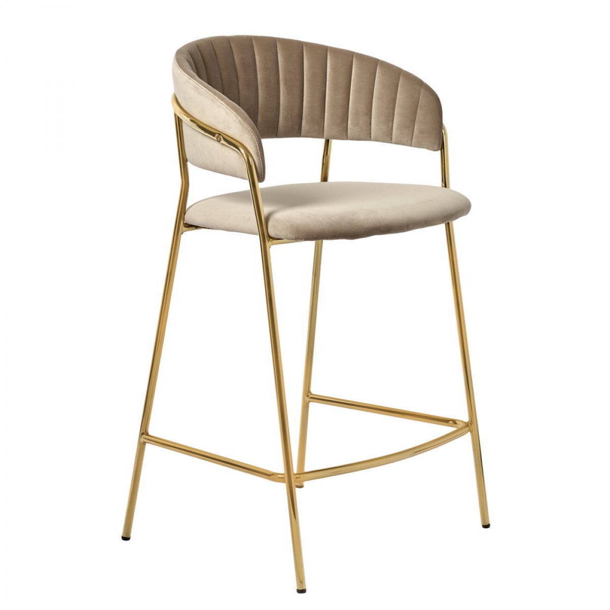 Комплект из двух полубарных стульев Turin в роскошном исполнении. Модель латте с золотыми ножками станет ярким акцентом в интерьере кухни или гостиной.