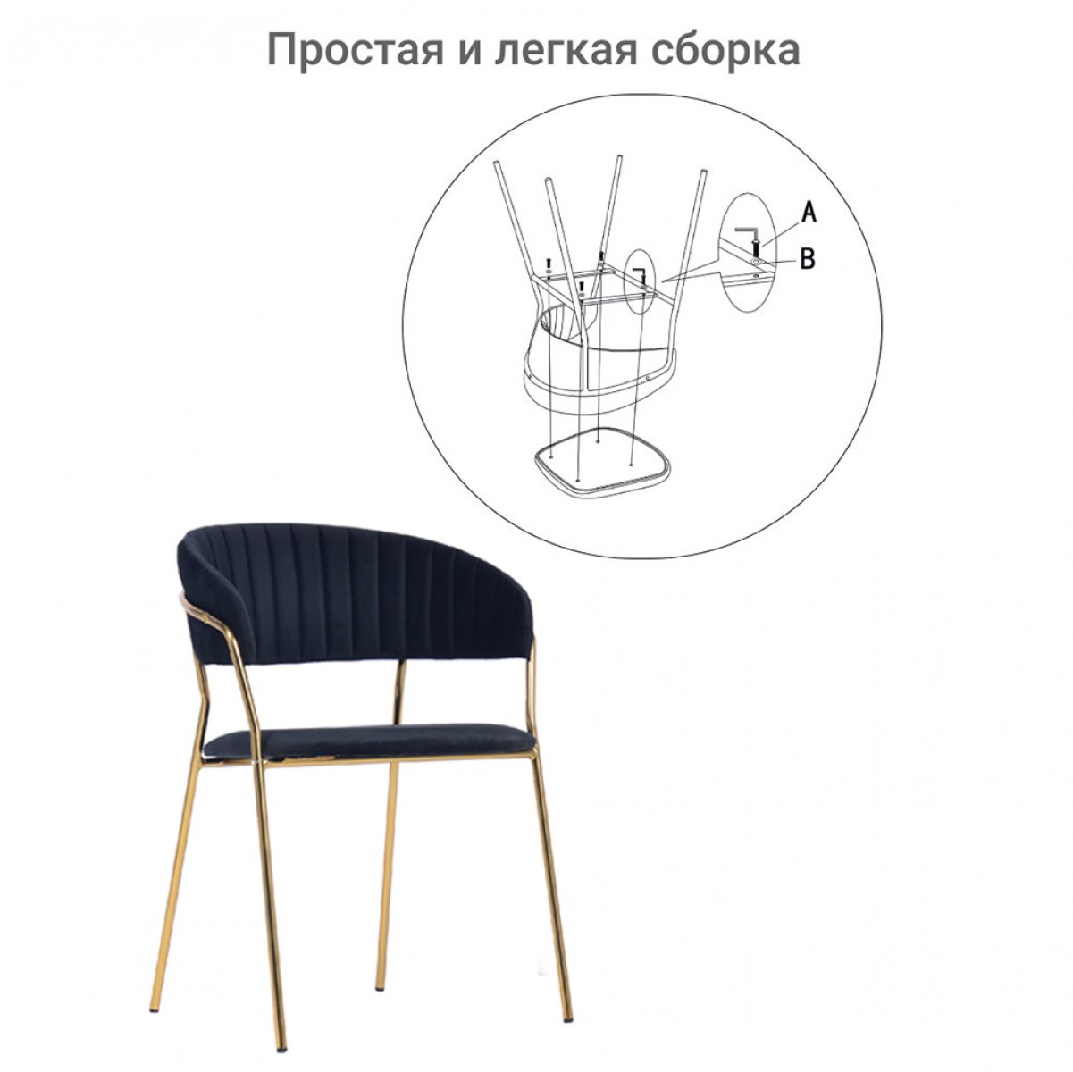 Прочные металлические ножки в золотом оттенке обеспечивают устойчивость и добавляют композиции воздушности. Сочетание глубокого черного и насыщенного золота создает гармоничный контраст.