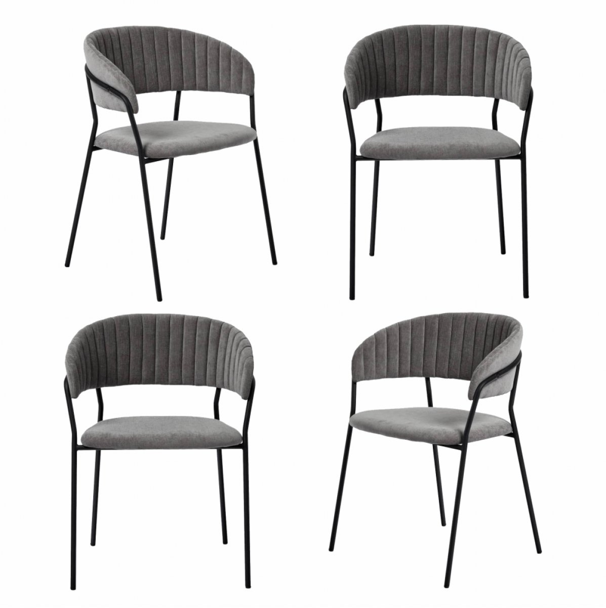 Комплект из 4-х стульев Turin серый вельвет с чёрными ножками