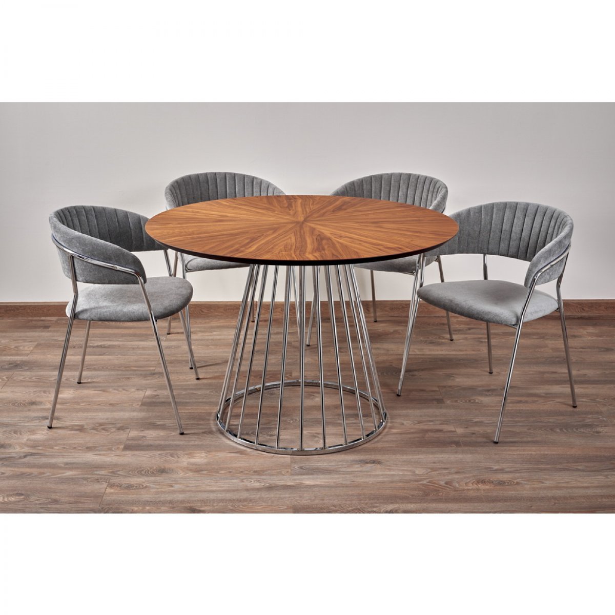 Комплект из четырех стульев Turin в сером вельвете — это сочетание уюта и современной эстетики. Модель станет гармоничным дополнением обеденной зоны в гостиной или кухне.