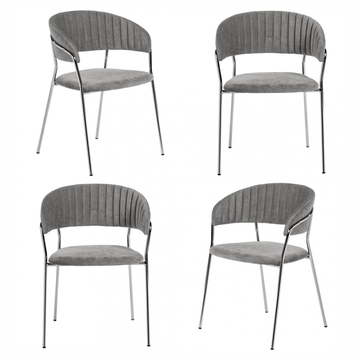 Комплект из 4-х стульев Turin серый вельвет с хромированными ножками