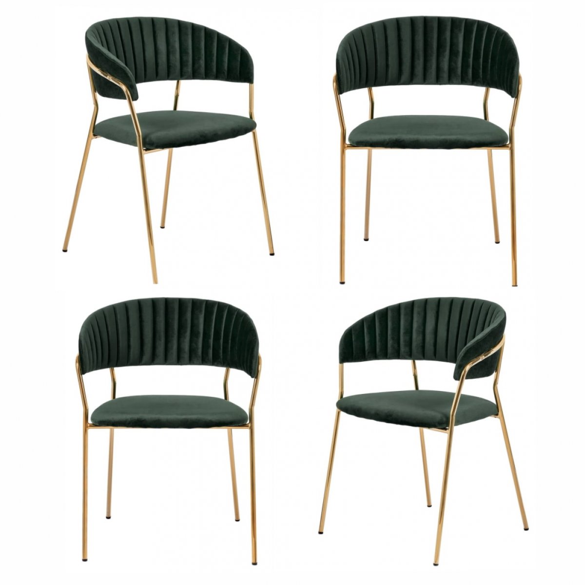 Комплект из четырех стульев Turin в зеленом велюре станет ярким акцентом вашей столовой или гостиной. Сочетание глубокого изумрудного оттенка и роскошных золотых ножек создает атмосферу утонченной элегантности.