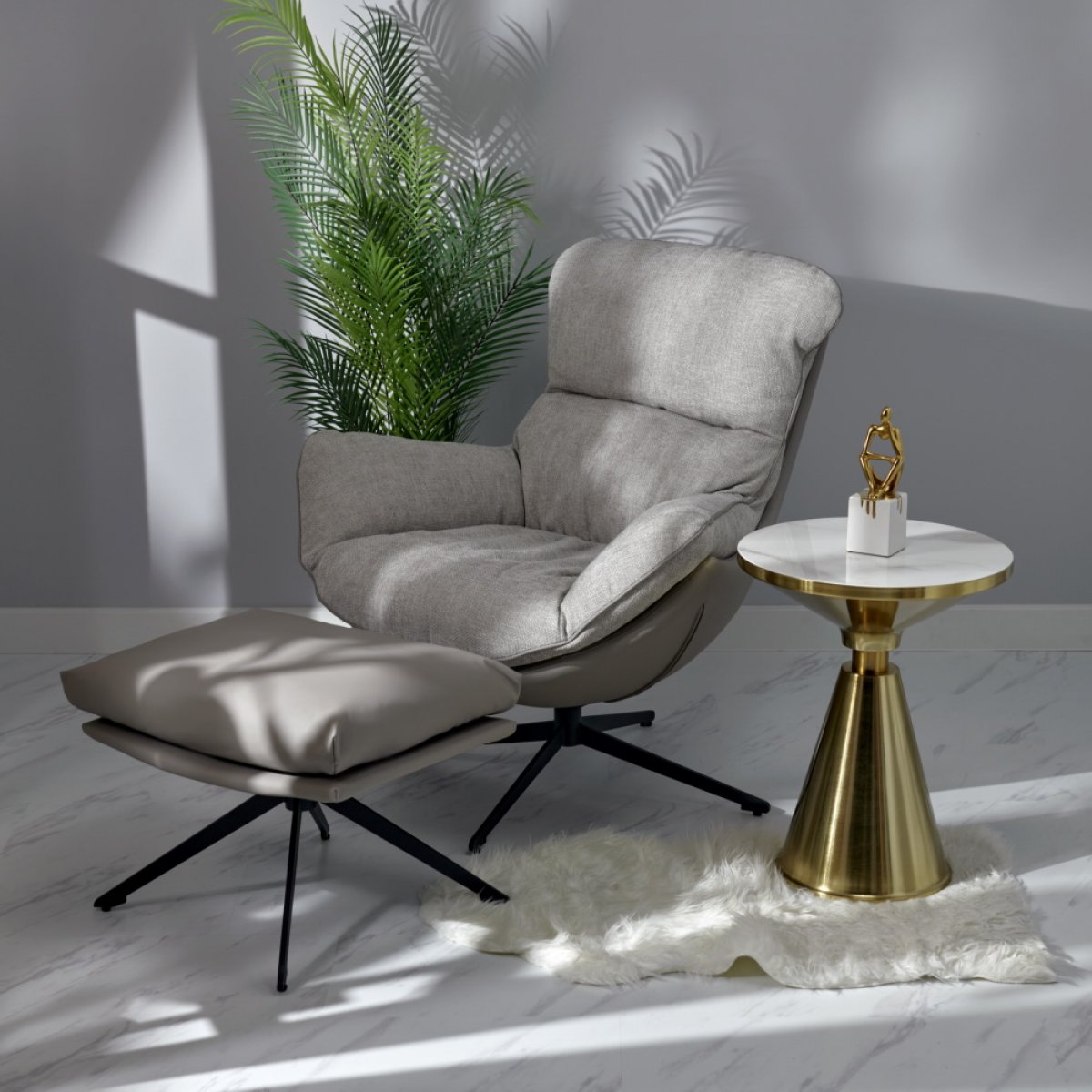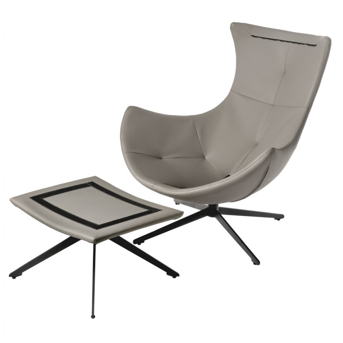 Комплект кресло HUG светло-серый, экокожа, шенилл с оттоманкой светло-серый, экокожа