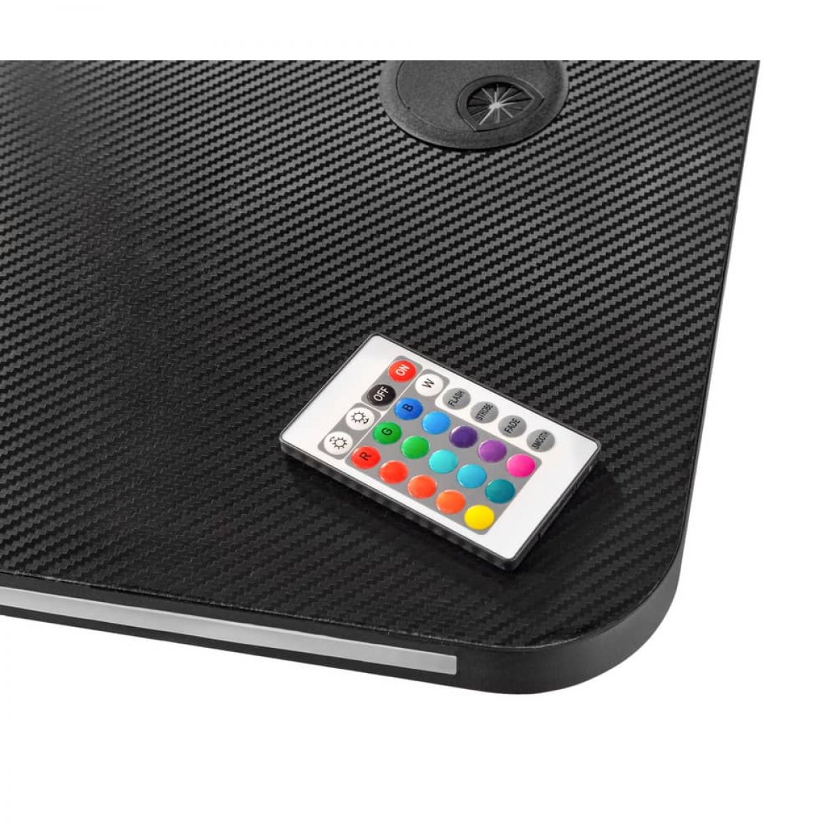 современный дизайн: немаркое и стойкое покрытие под карбон , черный цвет ножек и столешницы смотрятся стильно и лаконично. Яркая LED подсветка создает динамичную атмосферу, легко управляется с помощью пульта дистанционного управления;