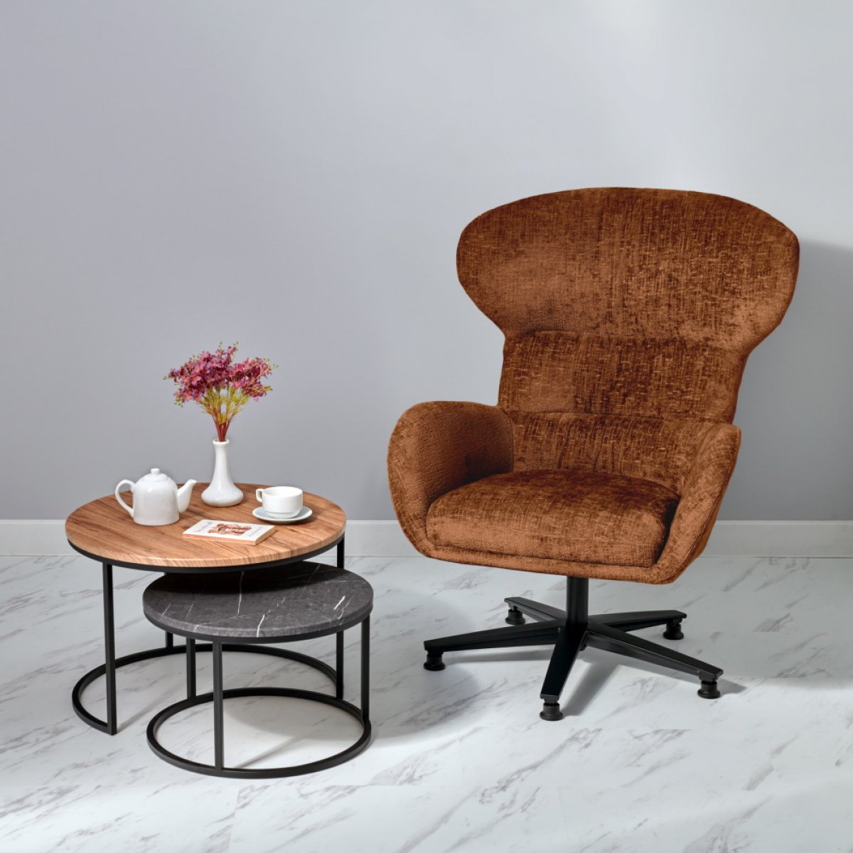 Благодаря прочной и нежной обивочной ткани шенилл, это кресло станет эпицентром вашего комфорта и настоящим украшением гостиной или столовой. Поворотный механизм на 360 позволяет легко менять положение, обеспечивая максимальный комфорт.