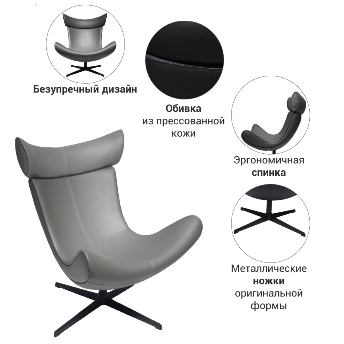 Чаша кресла обита прессованной кожей и установлена на устойчивой «четырехпалой ножке»