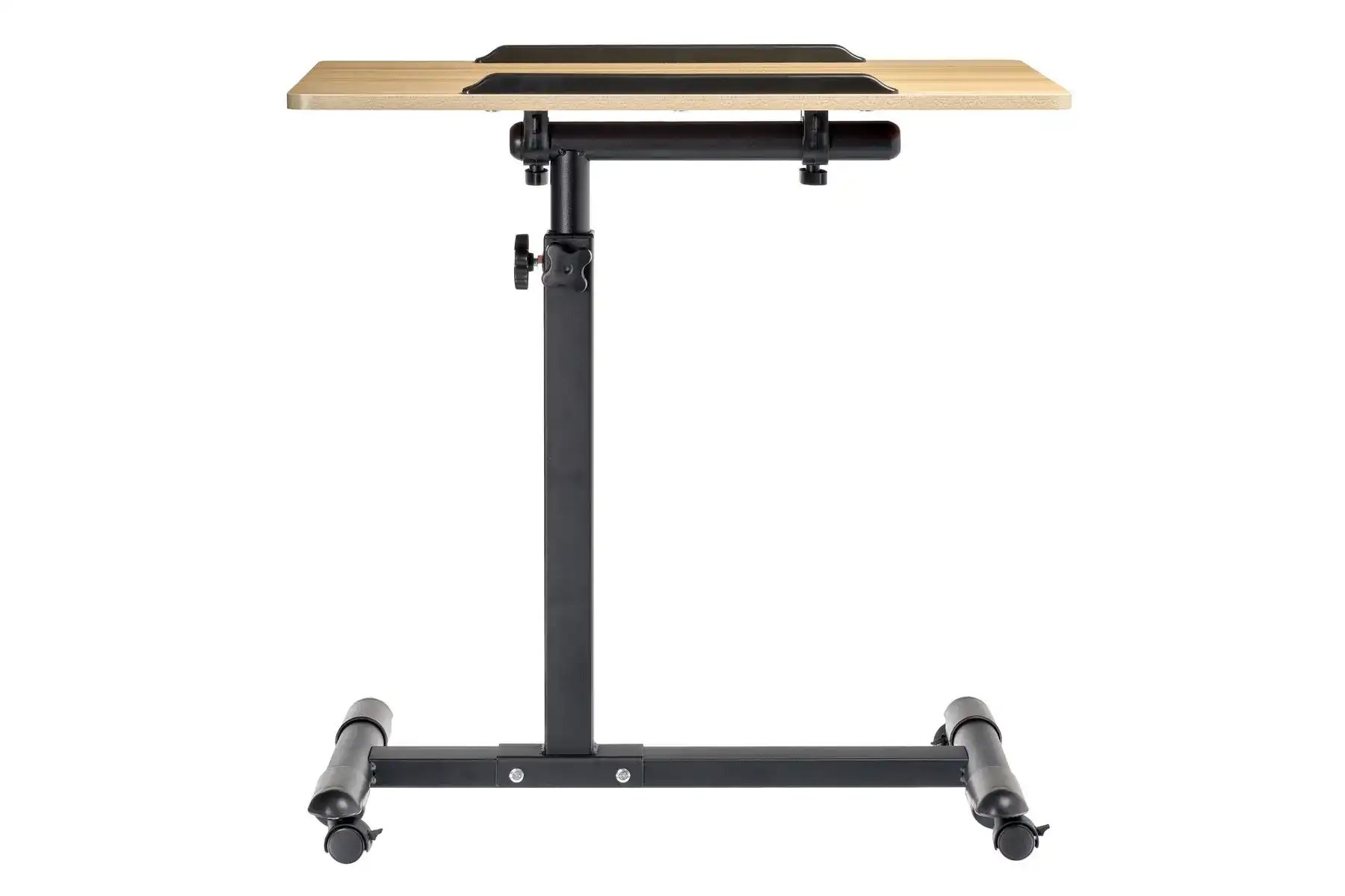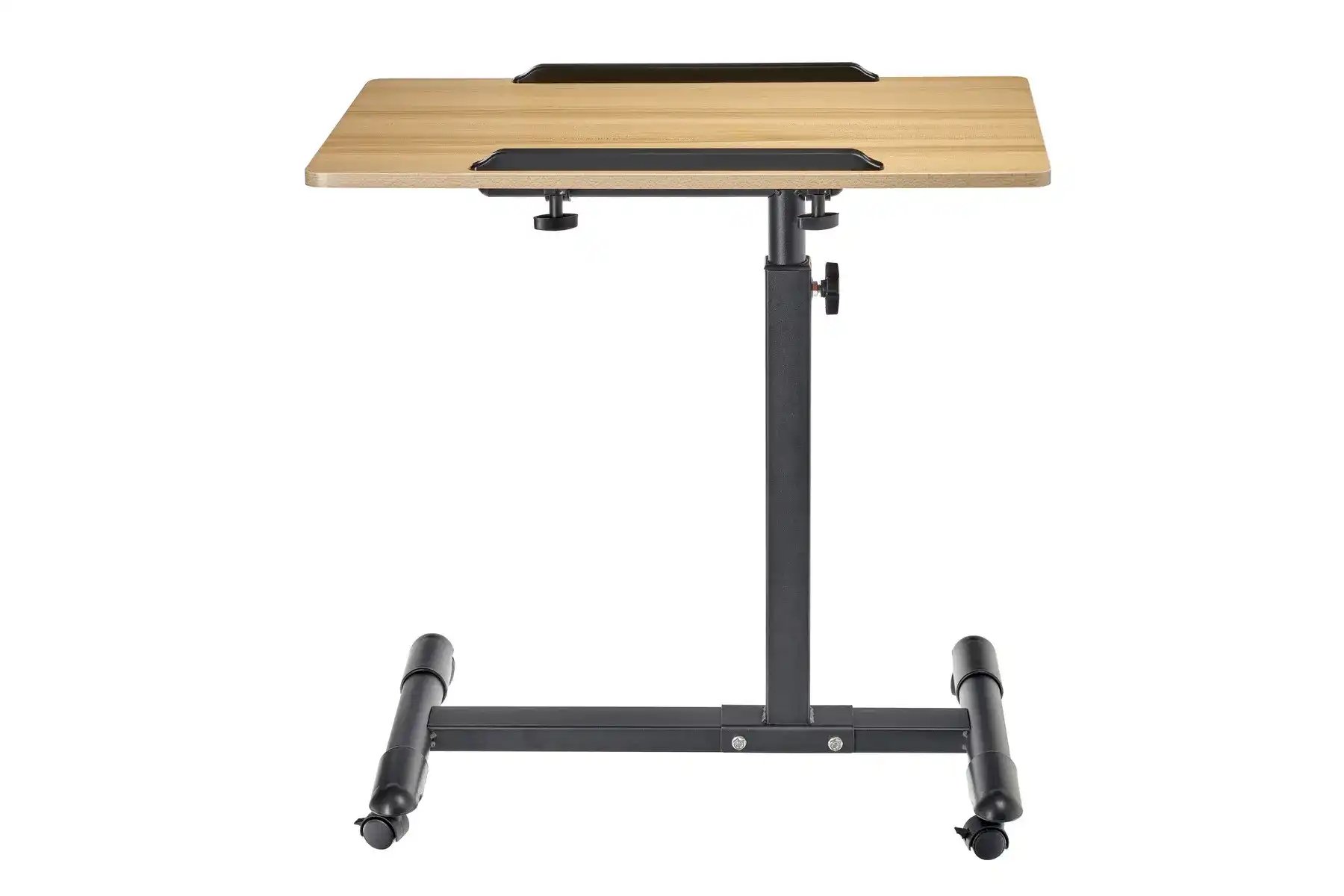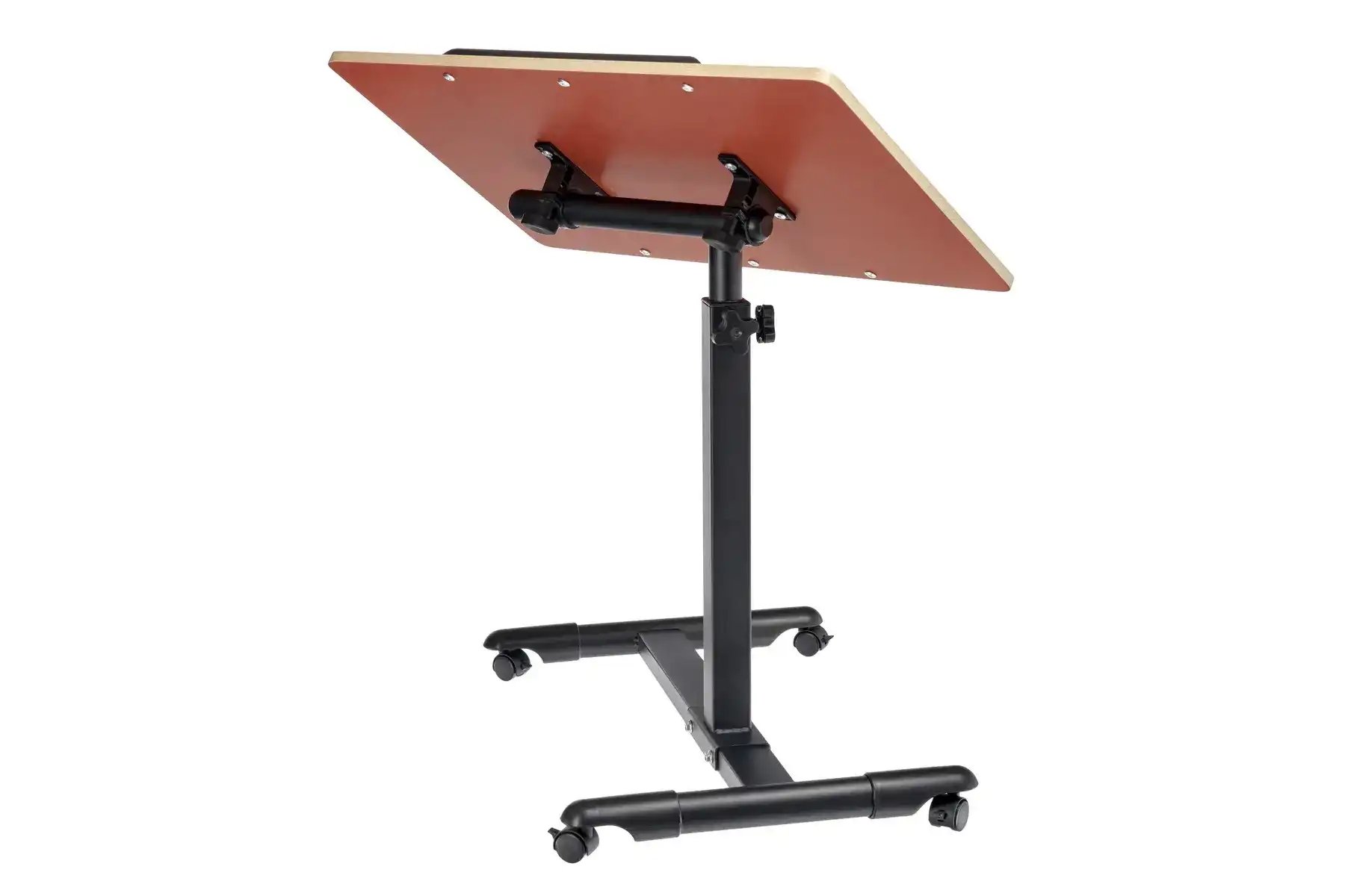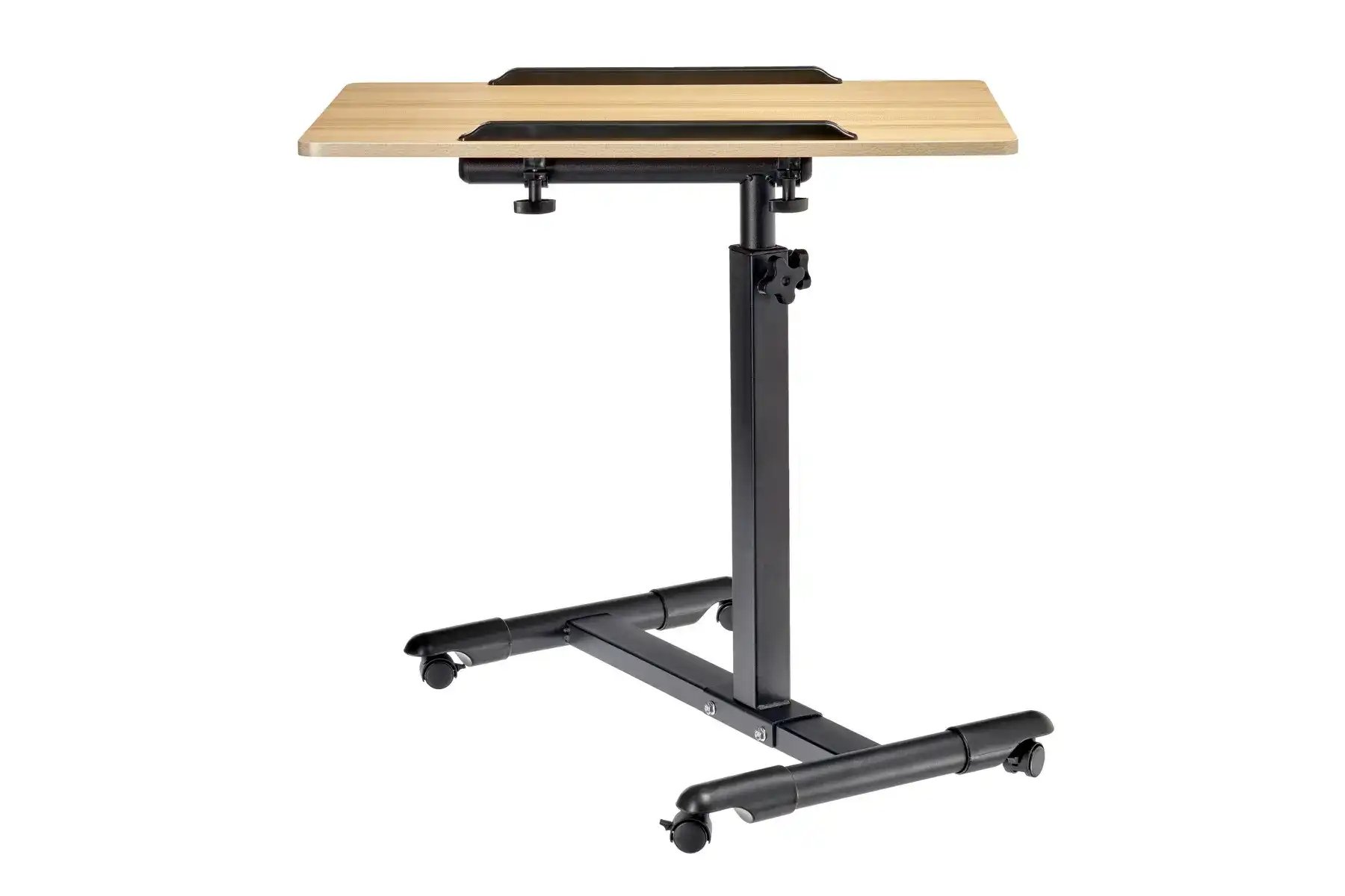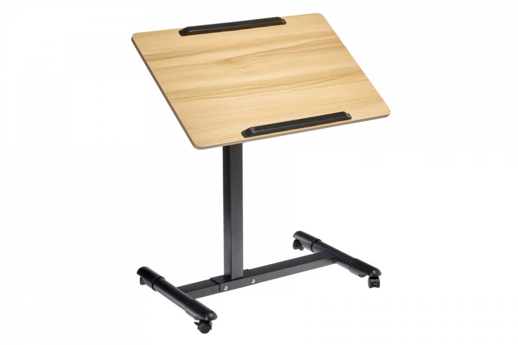 | Спецификация: | Материал: МДФ, металл, пластик. Цвет: столешница - светлое дерево, ножка - черный, ограничители - черный. Размер столешницы: 60 х 40 см. Регулировка по высоте: от 65 до 97 см. Размер основания с колесами: 58 х 44,3 см. Толщина металла: 0,7 мм. |