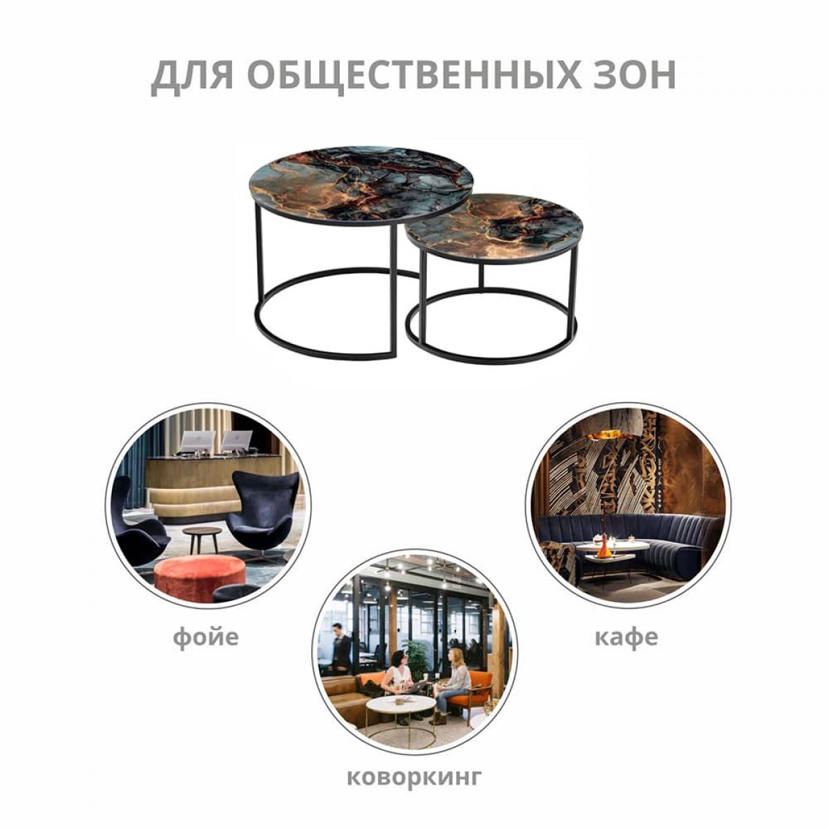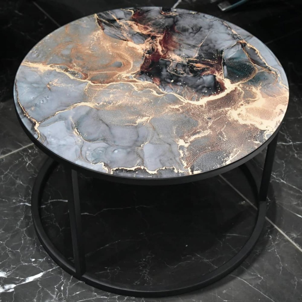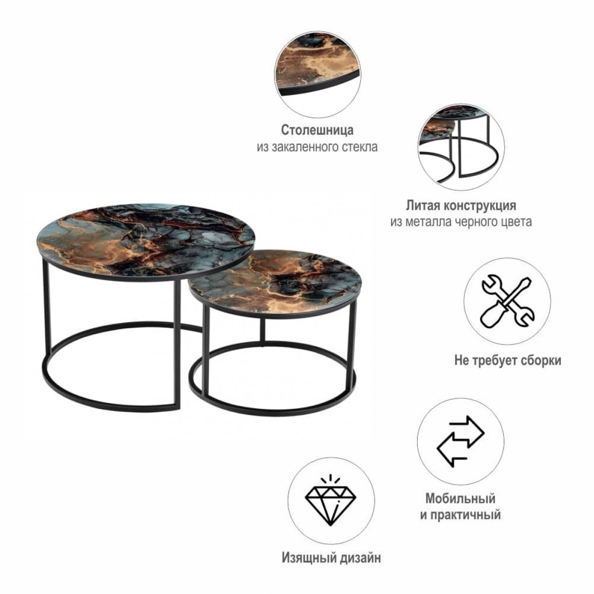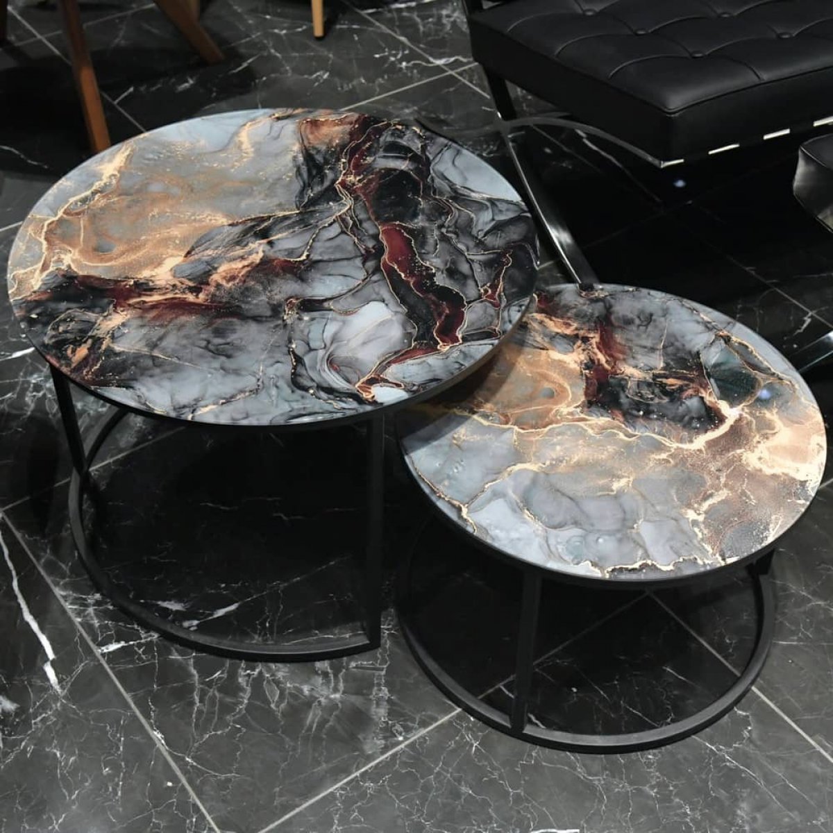 Набор кофейных столиков Tango космический с чёрными ножками, 2шт
