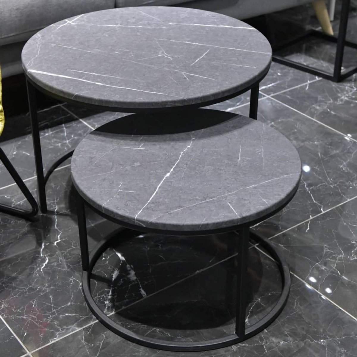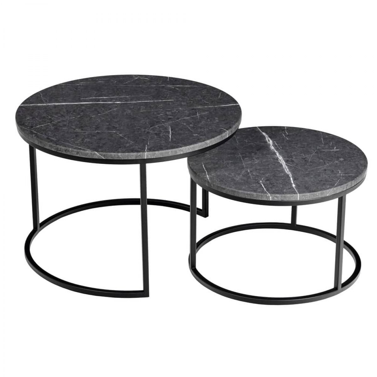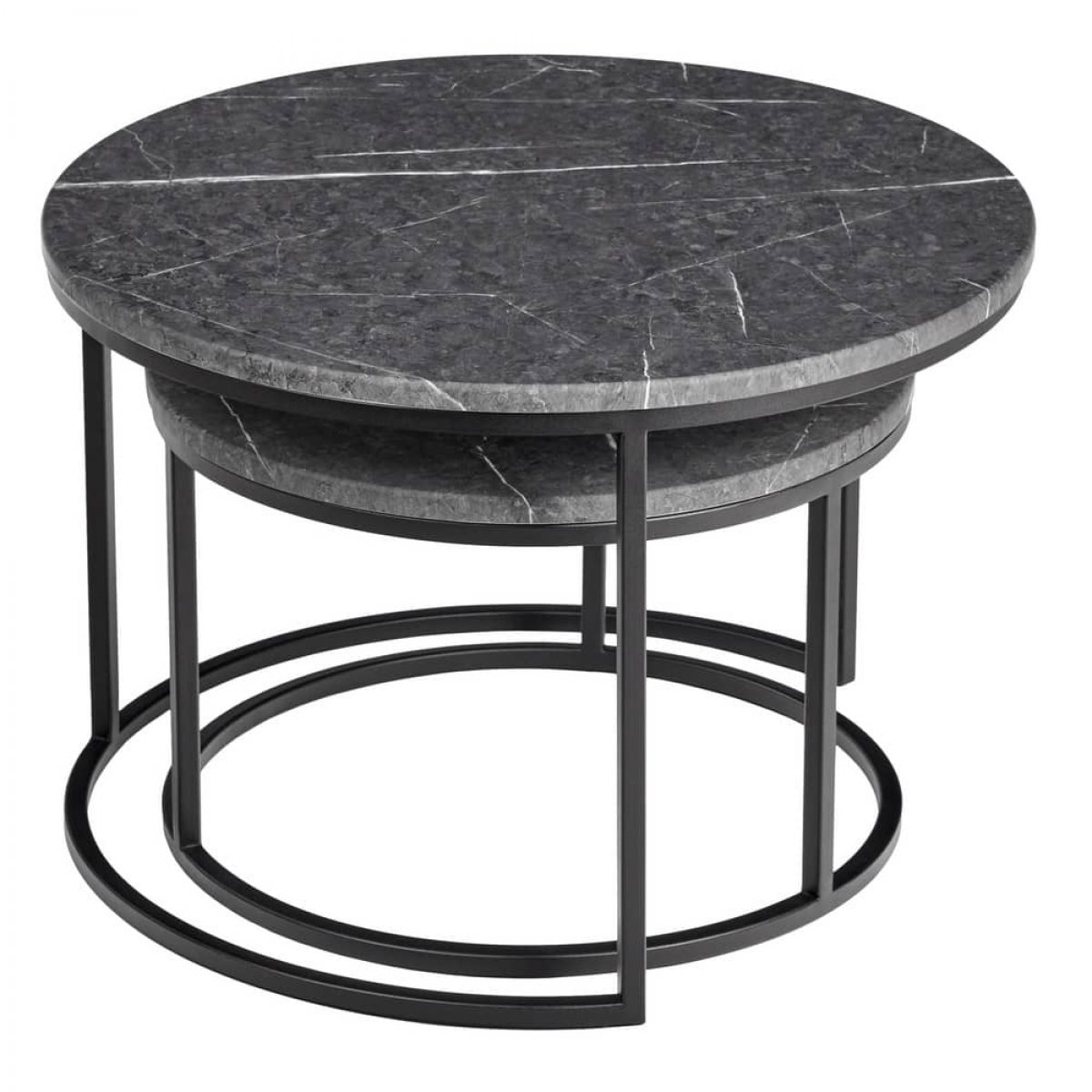 Набор кофейных столиков Tango серый мрамор с чёрными ножками, 2шт