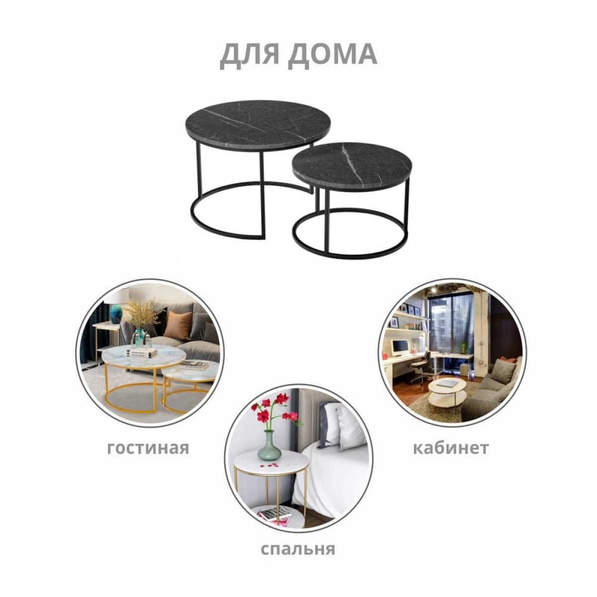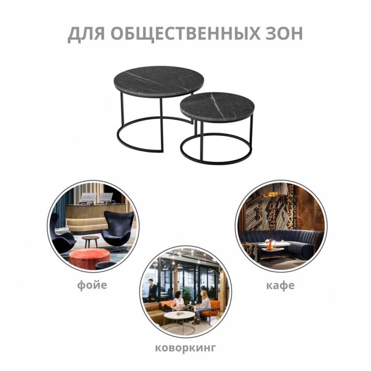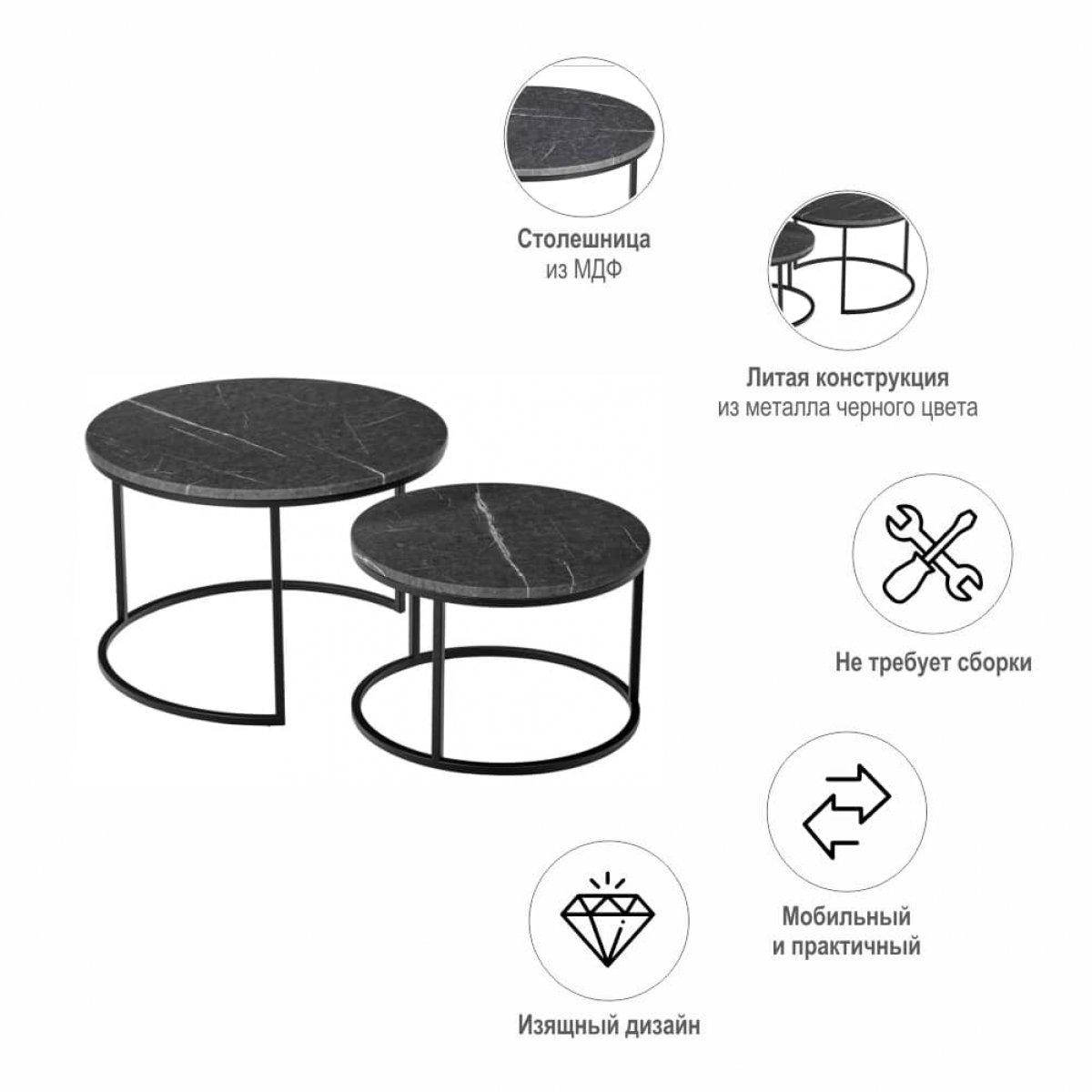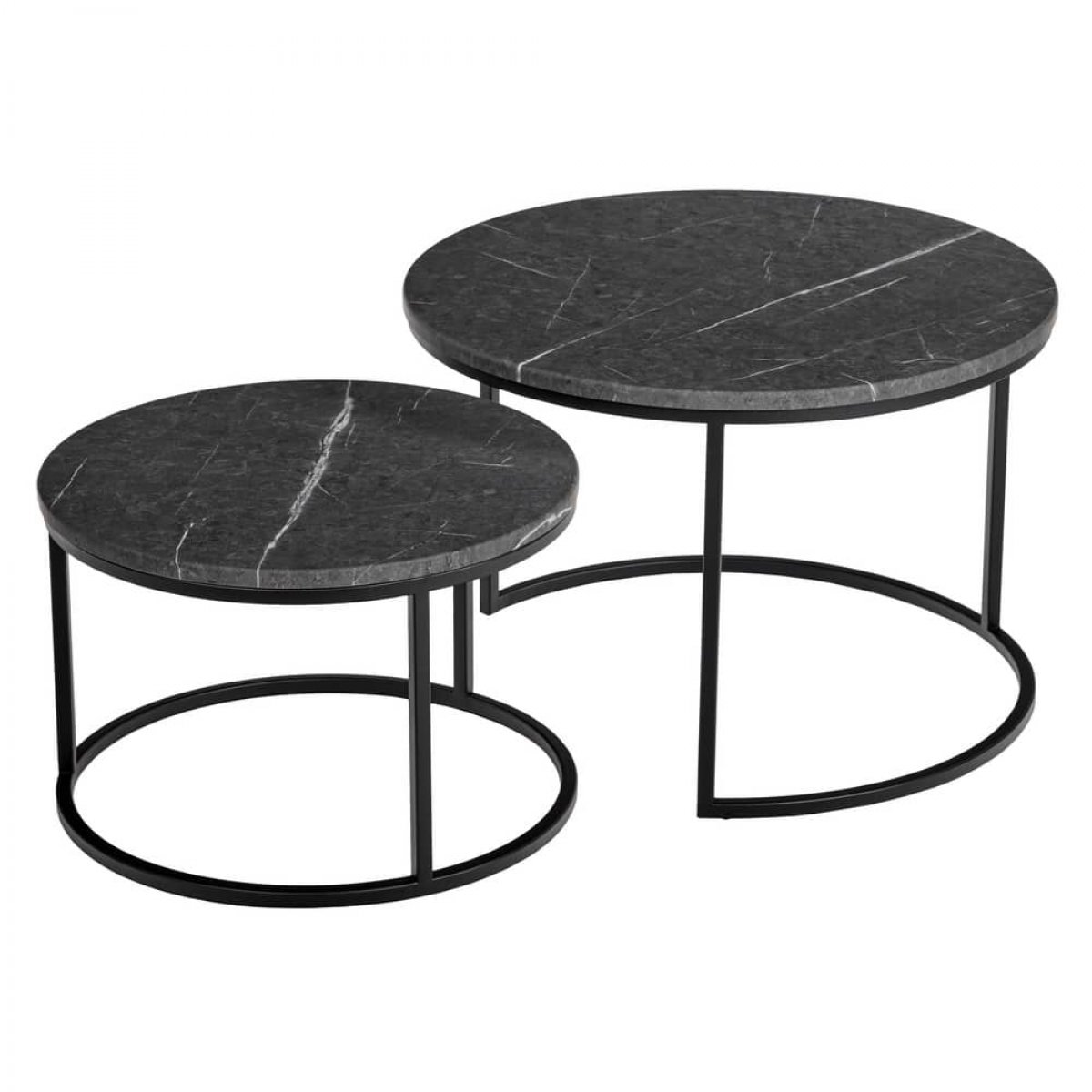 Набор кофейных столиков Tango серый мрамор с чёрными ножками, 2шт