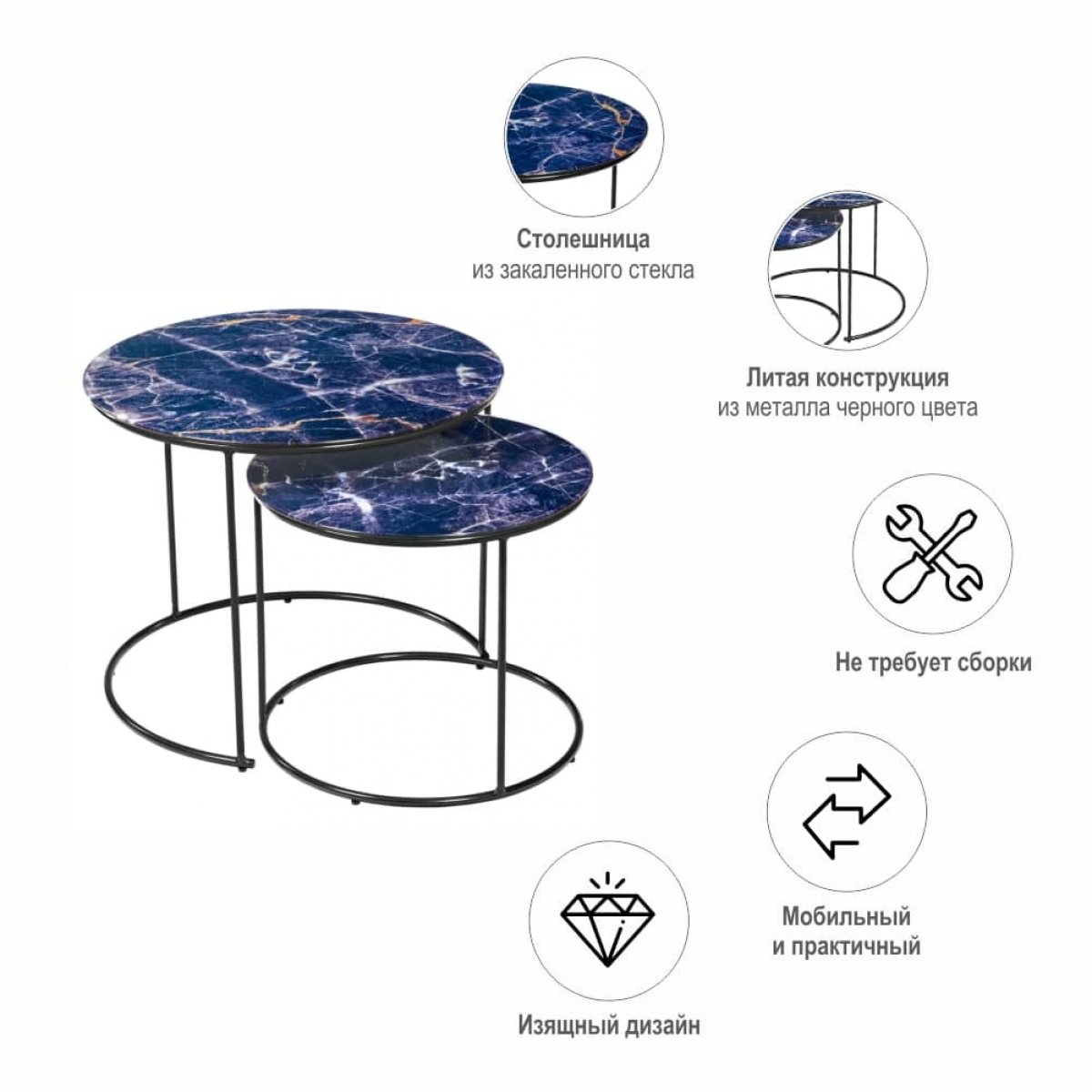 Набор кофейных столиков Tango темно-синий с чёрными ножками, 2шт