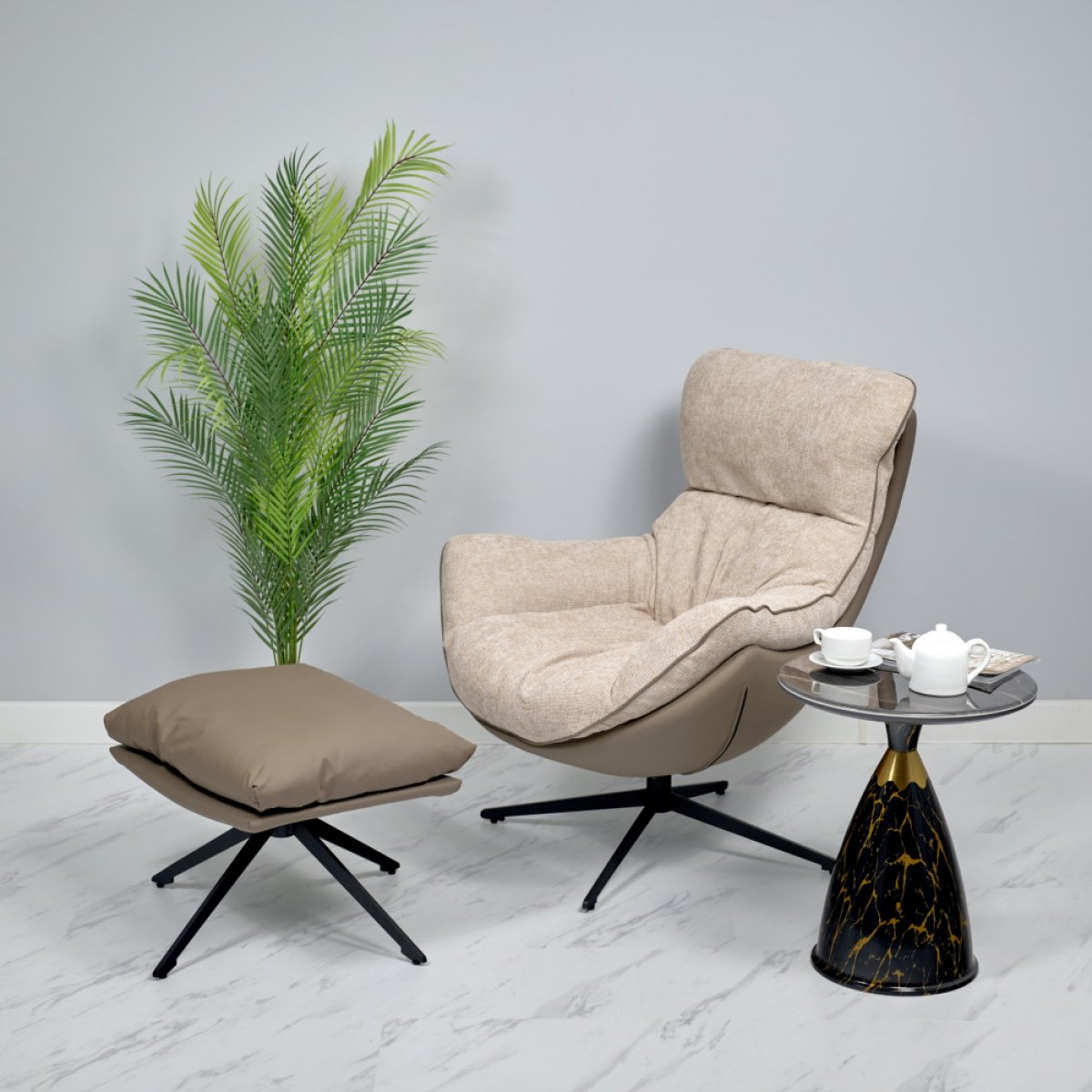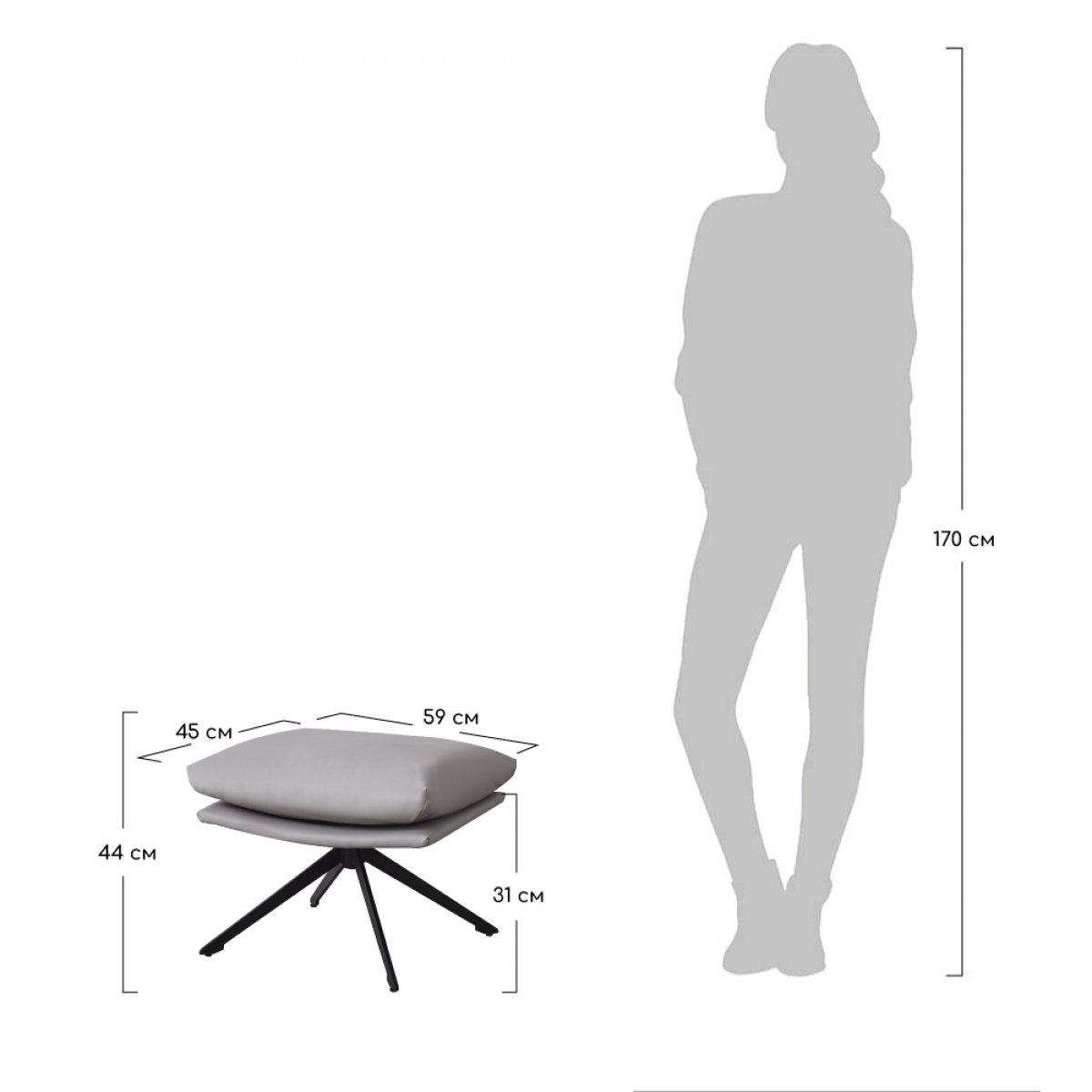 Ножки оттоманки изготовлены из прочного металла, что обеспечивает ее устойчивость и долговечность. Обивка оттоманки выполнена из мягкой и приятной на ощупь экокожи, которая выглядит стильно и современно.