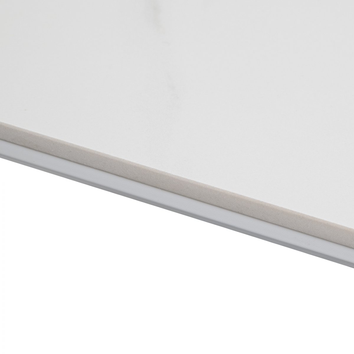 Высококачественная керамическая столешница: стол Festa обладает матовой премиальной столешницей из керамогранита White Stone, имитирующей белый мрамор. Поверхность размером 1600х900 мм со скошенной кромкой не царапается, не впитывает жидкость и легко моется, что обеспечивает долгий срок службы и минимальный уход.
