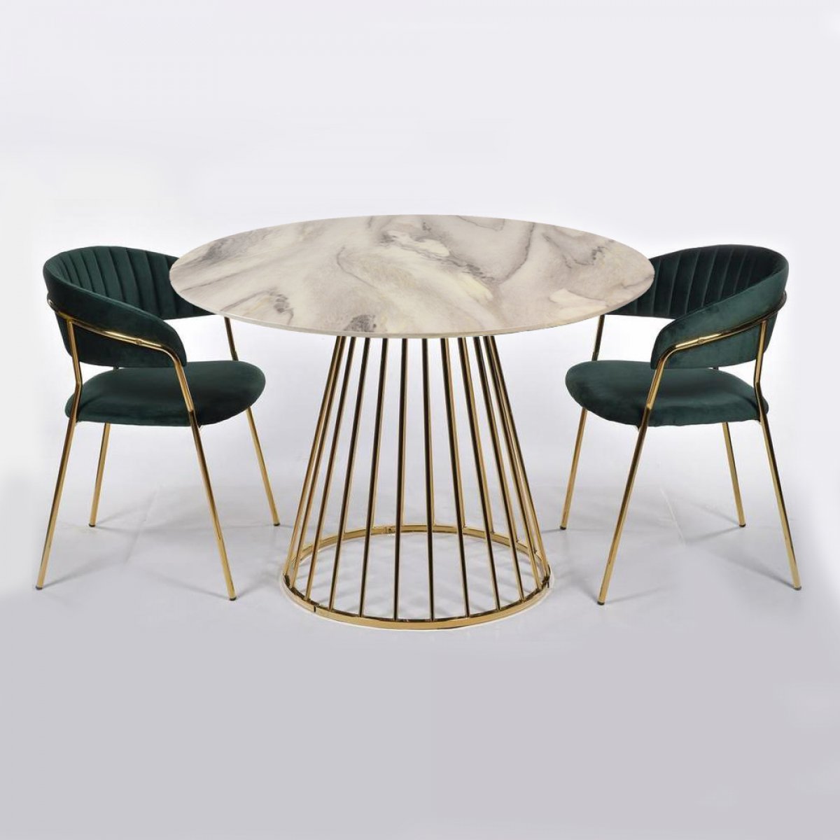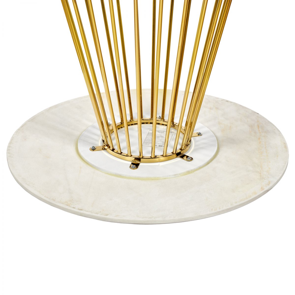 Стол Liverpool диам.100см, керамогранит белый мрамор с золотистыми ножками