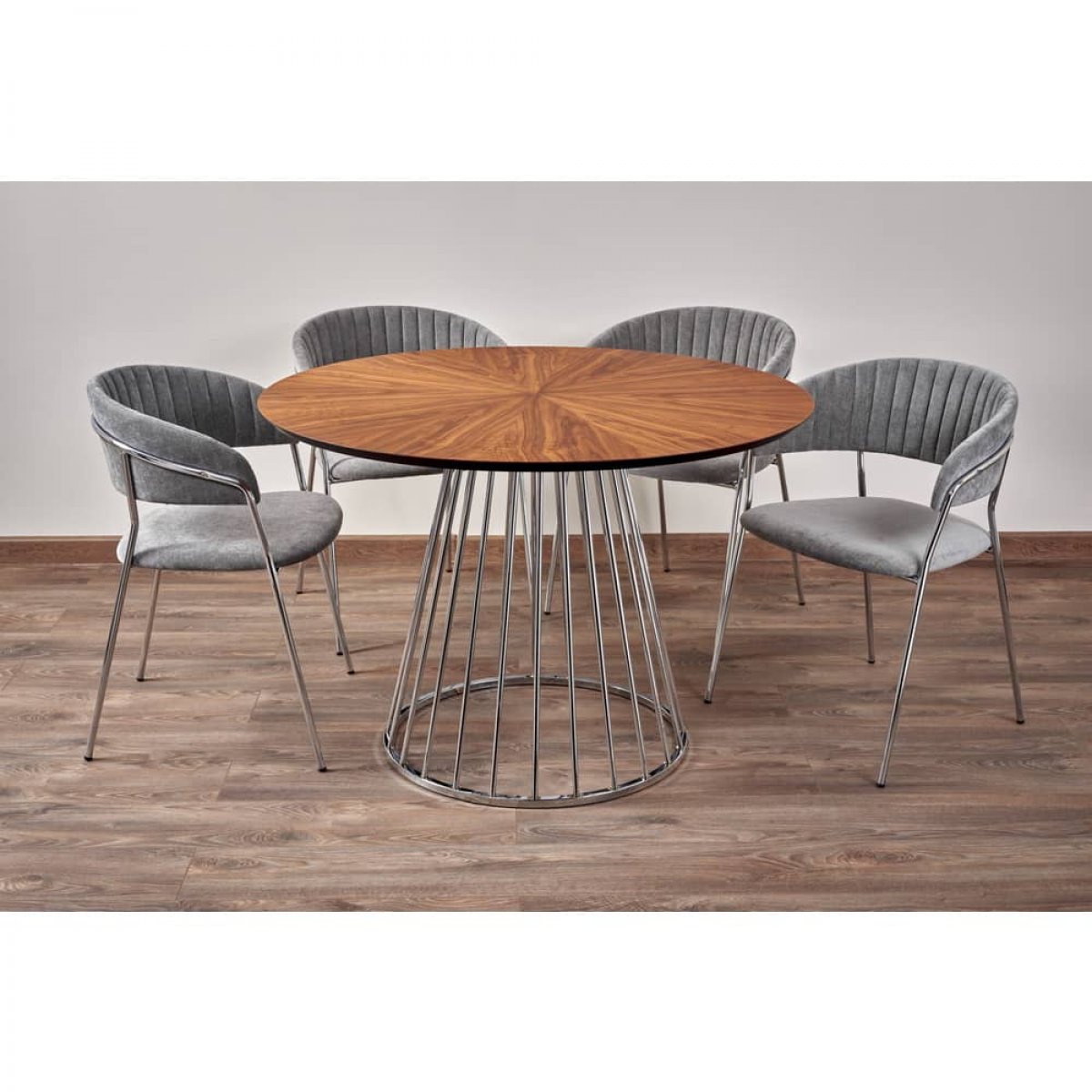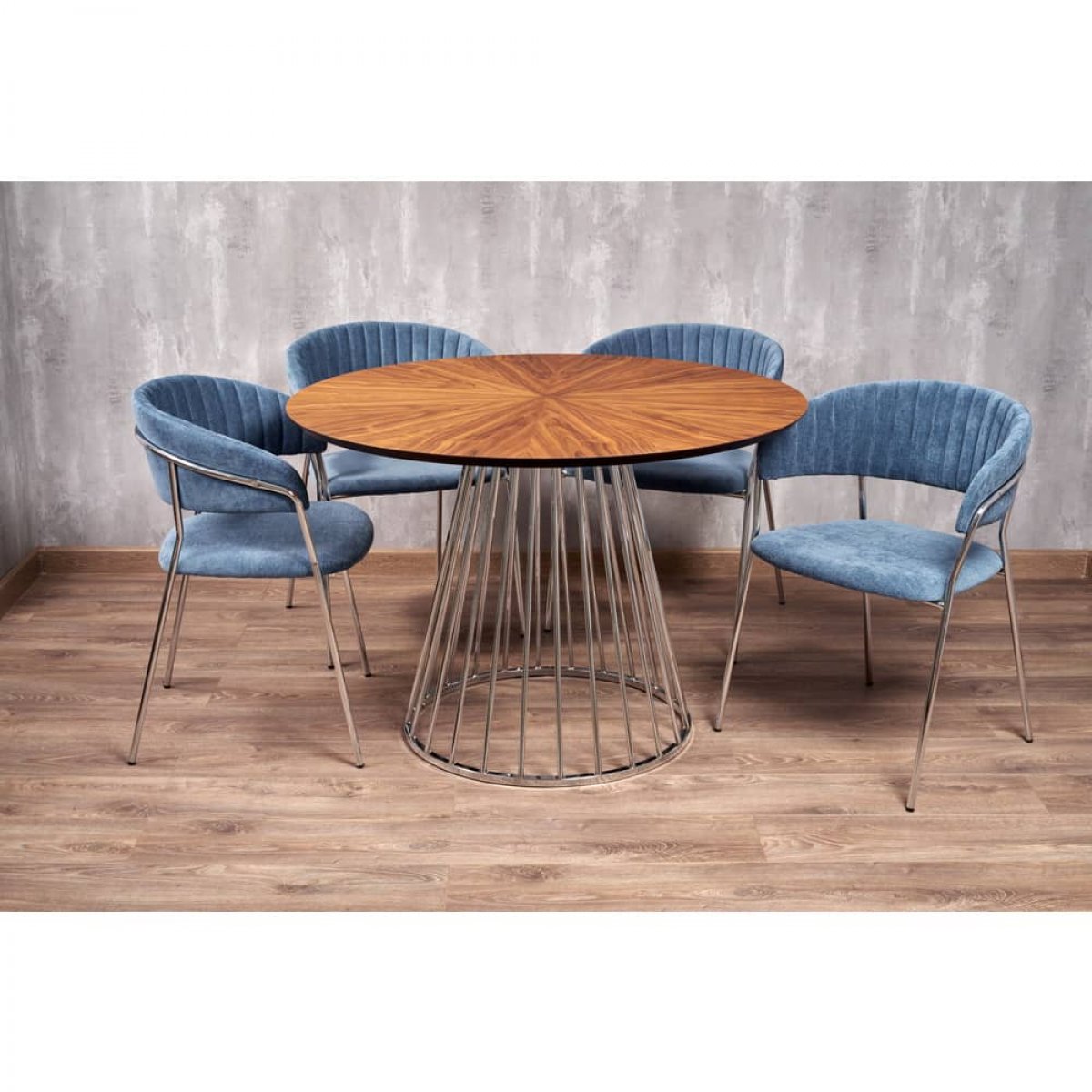 Стол Liverpool диам.110см, шпон орех лучевой набор, с хромированными ножками