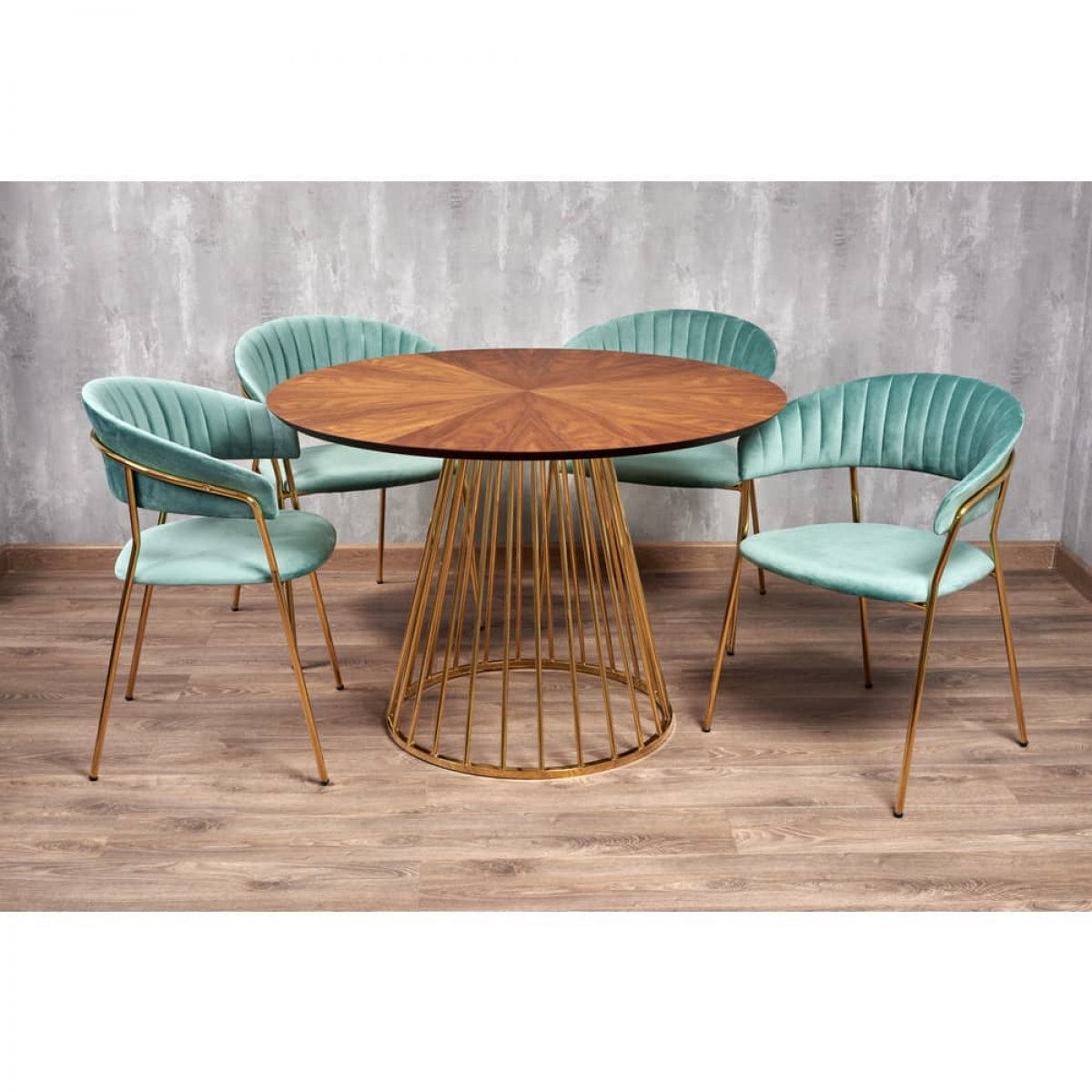 Стол Liverpool диам.110см, шпон орех лучевой набор, с золотистыми ножками